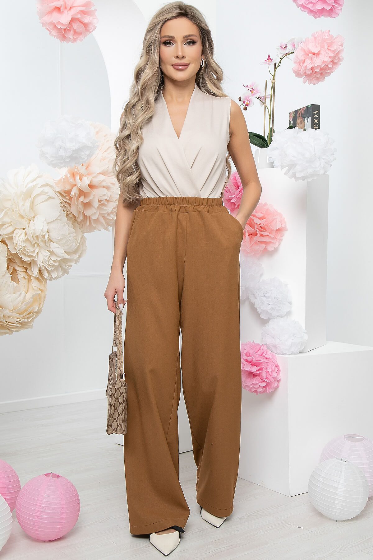 Широкие и прямые брюки отлично скрывают недостатки фигуры - лишний вес, несовершенные формы. Они идеально подходят девушкам любой комплекции и любого возраста. По талии брюки на широкой резинке. В боковых швах есть карманы.