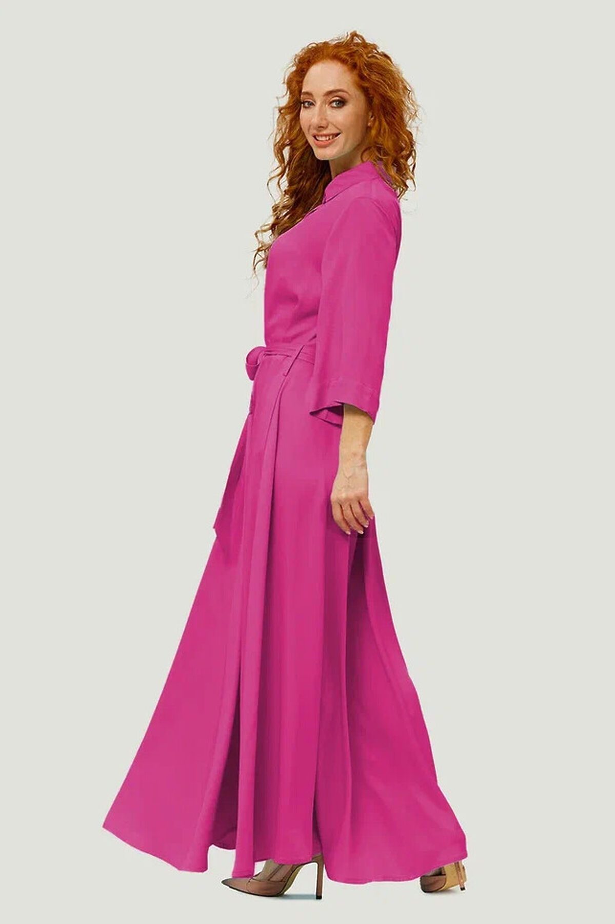 Яркое, базовое платье, сочетающее в себе практичность и элегантность - важная и необходимая вещь в гардеробе каждой современной модницы. Создавая для Вас неповторимый и запоминающийся образ мы тщательно продумываем формы, крой и цветовое решение, подбирая для Вас лучшие качественные материалы и фурнитуру. Дизайн нашей одежды создается модельерами и конструкторами на нашем собственном производстве в г. Москва. Ищете современное модное платье для летнего яркого настроения? Предлагаем Вашему вниманию покупку инвестицию - Платье от D`imma , в котором Вы будете неотразимы в любой ситуации и на любом мероприятии! Современное, модное, нарядное платье с хорошей посадкой полуприталенного А-образного силуэта от российского производителя D’imma Fashion Studio из натуральной ткани – основа женского «умного» гардероба и олицетворение привлекательности, элегантности и уверенности. Универсальное платье выполнено из мягкой ткани из 100% вискозы, что придает силуэту легкость, воздушность, подчеркивая женственность и романтичность. Простота линий кроя сбалансирована яркостью струящейся ткани Модель с классическим отложным воротником на стойке и застежкой-поло на маленькие, изящные перламутровые пуговицы выглядит максимально расслабленно и стильно. Расстегнув пуговицы, можно оформить V-образный вырез, визуально удлиняющий шею. Втачные карманы в боковых швах и пояс дополняют образ и создают комфорт. Длинное платье приталенного силуэта с расклешенной юбкой будет уместно и днем, и вечером, и на приятном мероприятии. Такое базовое вискозное платье обеспечит свободу движения и мысли, и будет изумительно смотреться не только на моделях из дизайнерских коллекций, но и на девушках с аппетитными формами. Прекрасно будет сочетаться как с модельными туфельками на каблучке, босоножками, так и с кедами или кроссовками, создавая новый свежий современный образ. Есть большие размеры. Пояс в комплекте. Выбрав актуальное базовое платье D’imma, можно быть уверенной в том, что лук соответствует последним тенденциям моды. Изысканный силуэт и ничего лишнего, что может помешать Вам любоваться окружающим миром по дороге на работу, на прогулке в парке или в отпуске на прогулке по вечерней набережной. Не взирая на причуды природы, в такой модели Вы будете выглядеть женственно и неповторимо. Можно дополнять яркими аксессуарами и менять образ под настроение. Разнообразные версии – ключ к созданию линейки модных, индивидуальных луков. Вы убедитесь, что это очень выгодная покупка, которая не будет пылиться в шкафу! Длина изделия: 42 р-р — 137 см; 44 р-р — 137 см; 46 р-р — 137 см; 48 р-р — 137 см; 50 р-р — 137см; 52 р-р — 137 см; 54 р-р — 137 см; 56 р-р — 137 см; 58 р-р — 138 см; 60 р-р — 138 см.