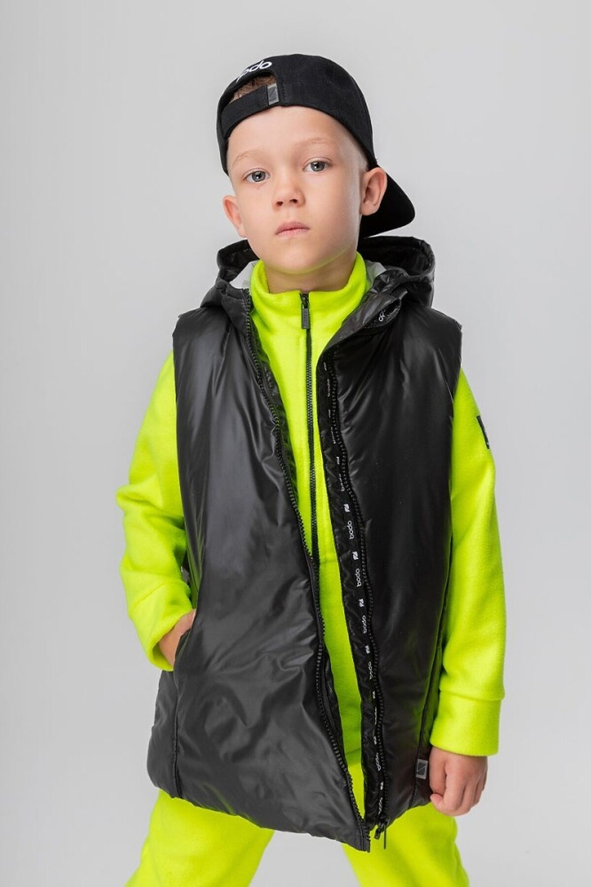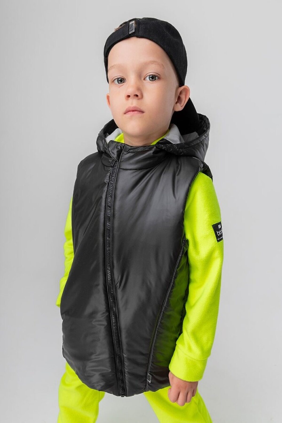 Стильный утепленный жилет на косой молнии, подойдет малышам, мальчикам и девочкам. Материал верха: Фитсистем стайл 100% полиэстер, утеплитель Hetta micro 150 г/кв.м, подкладочный материал кулирная гладь 100% хлопок