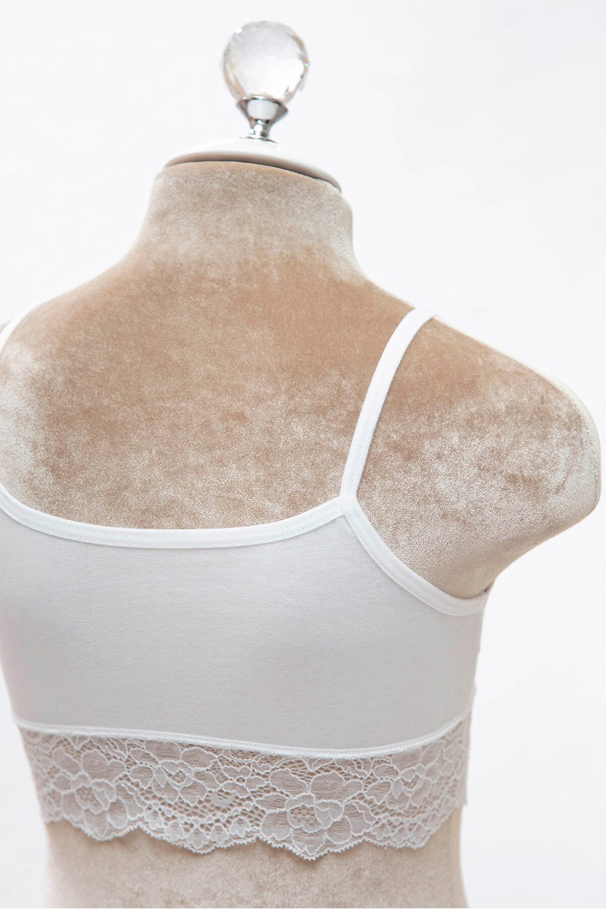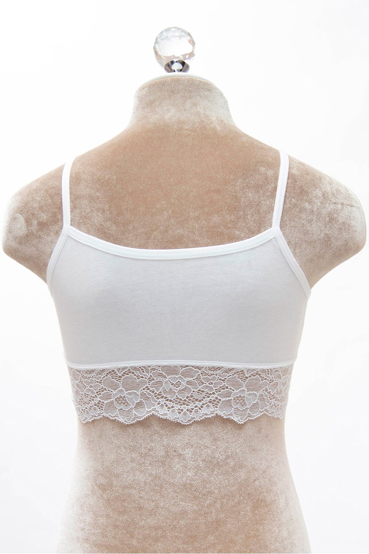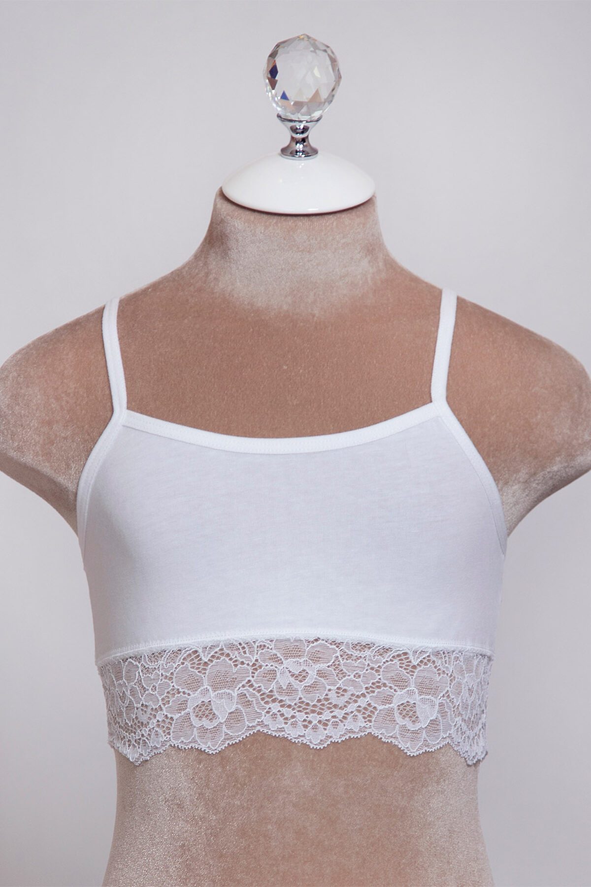 Топ-бюстье для девочки на тонких нерегулируемых бретелях. Дышащий материал с добавление эластичных нитей, создаст комфорт при ношении. Комфортный топ-бюстье из мягкого хлопкового трикотажа, хорошо держит форму благодаря содержанию лайкры. Идеально подойдет на каждый день для подрастающей девочки. Детское нижнее белье является неотъемлемой частью гардероба. Оно должно быть изготовлено из качественного и дышащего материала. Приносить комфорт при активных играх и во время сна.