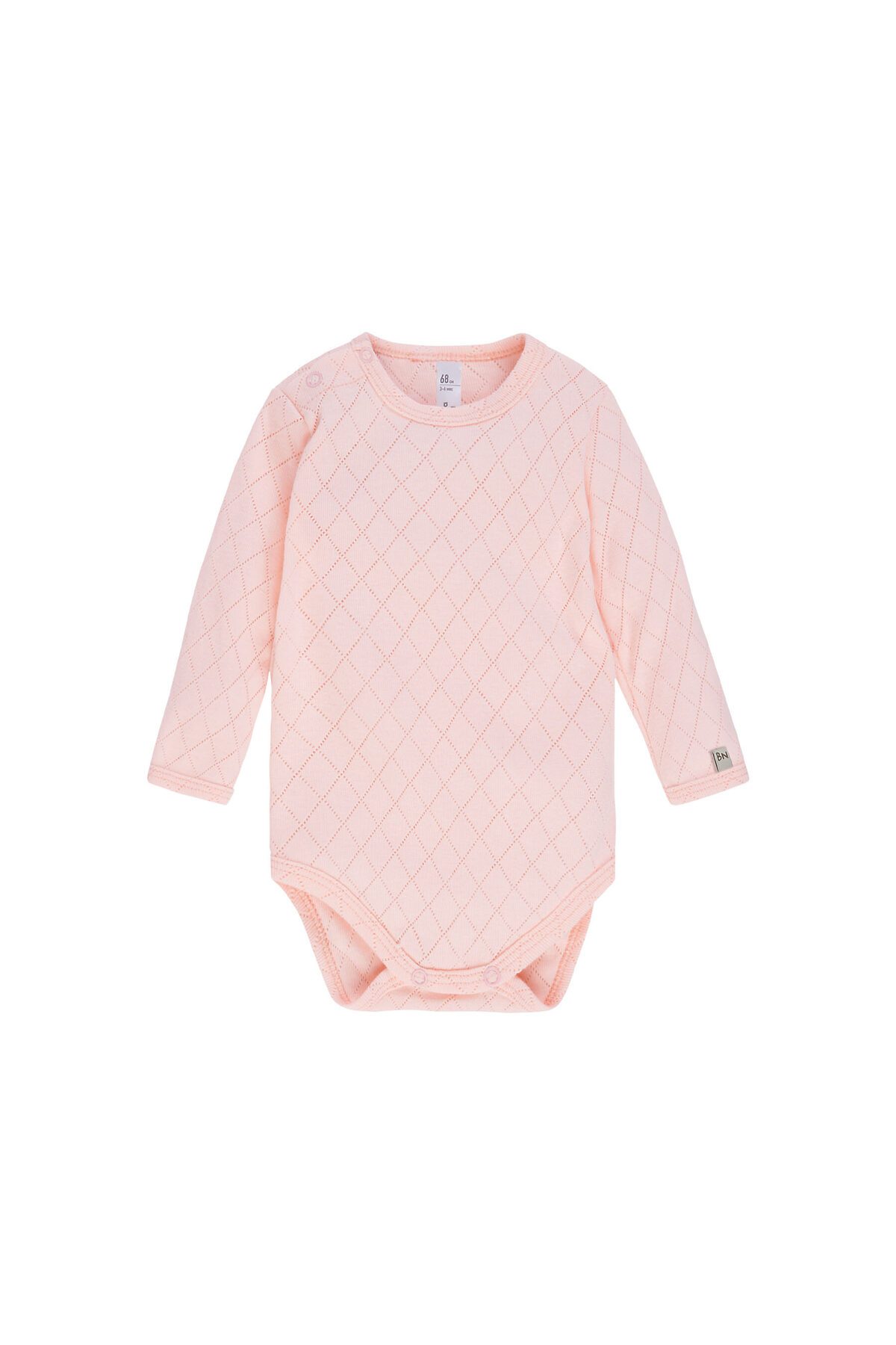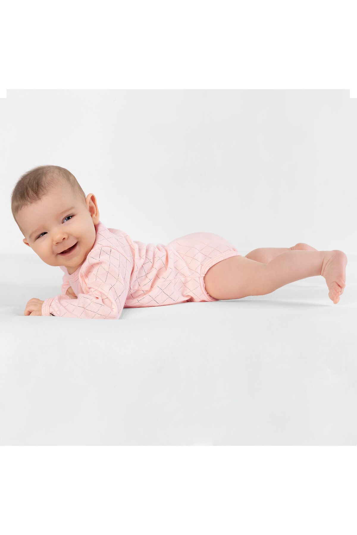 Боди Bossa Nova с длинным рукавом выполнен из ажурной рибаны. Детали: застежка на кнопки на плече и по низу изделия.