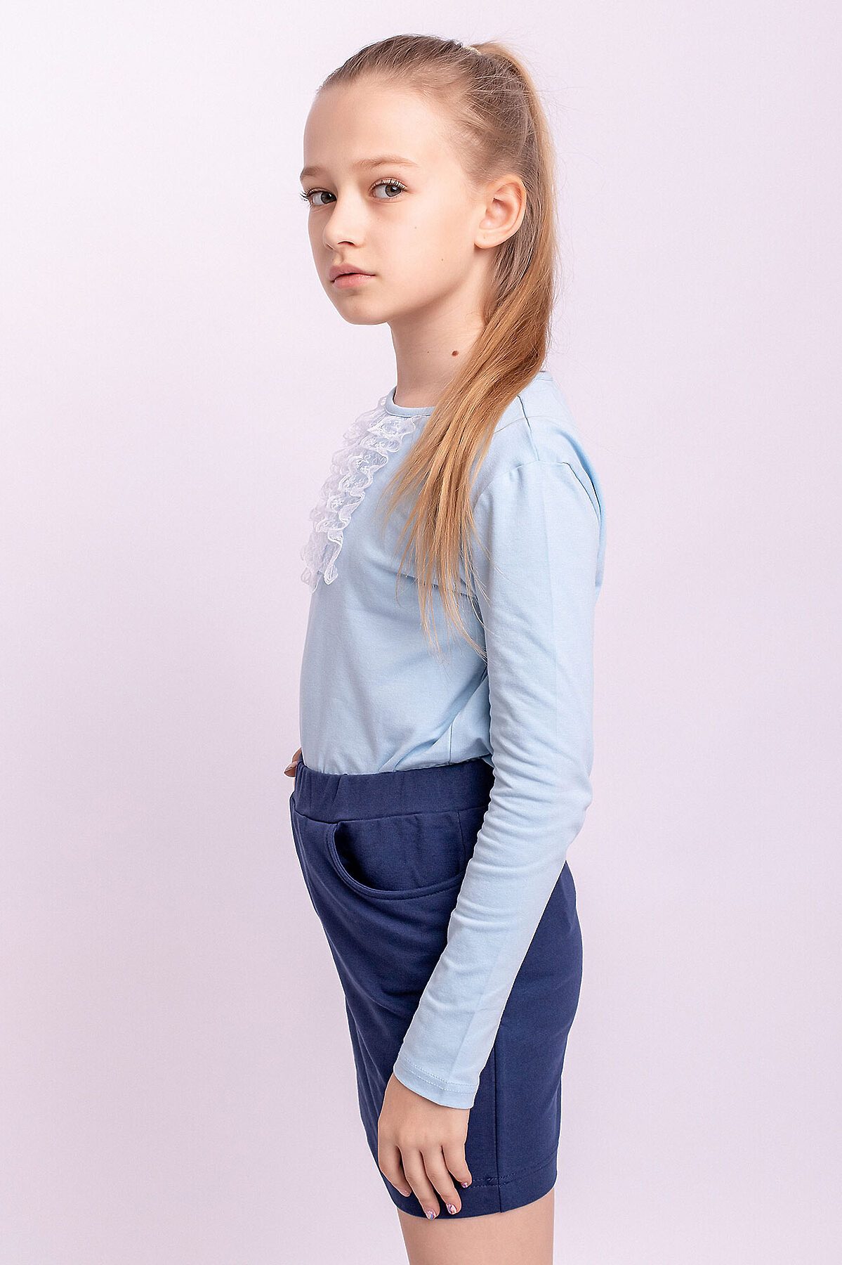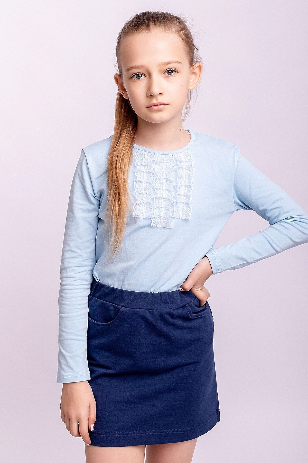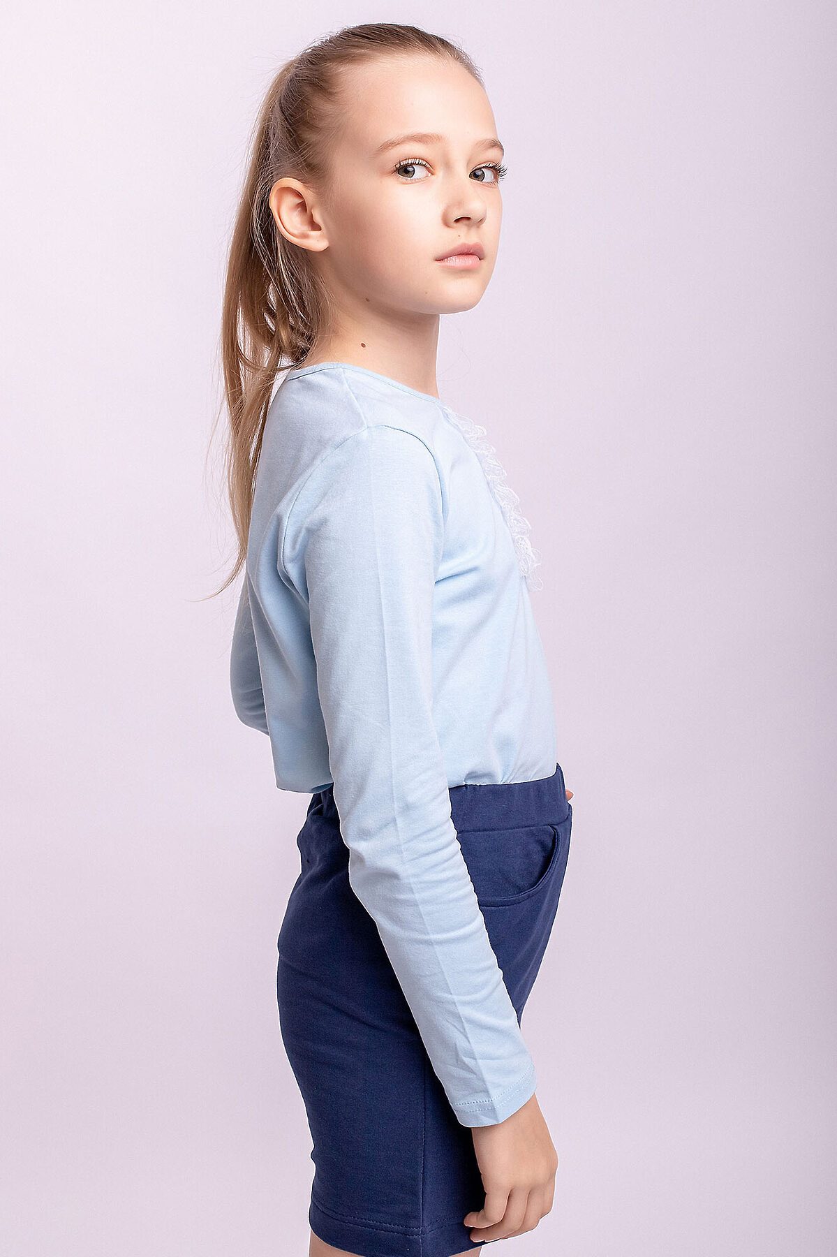 Лонгслив голубой с длинным рукавом для девочки в школу.