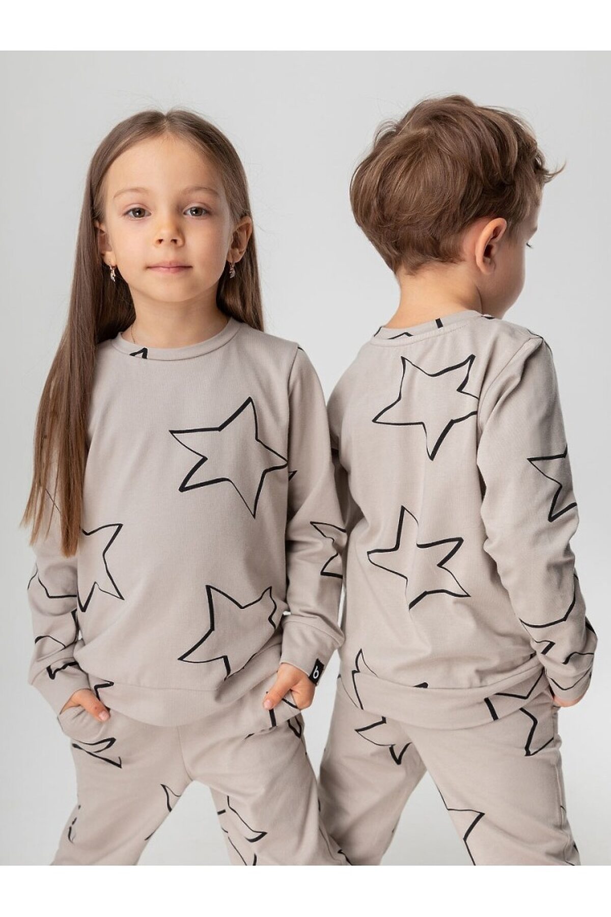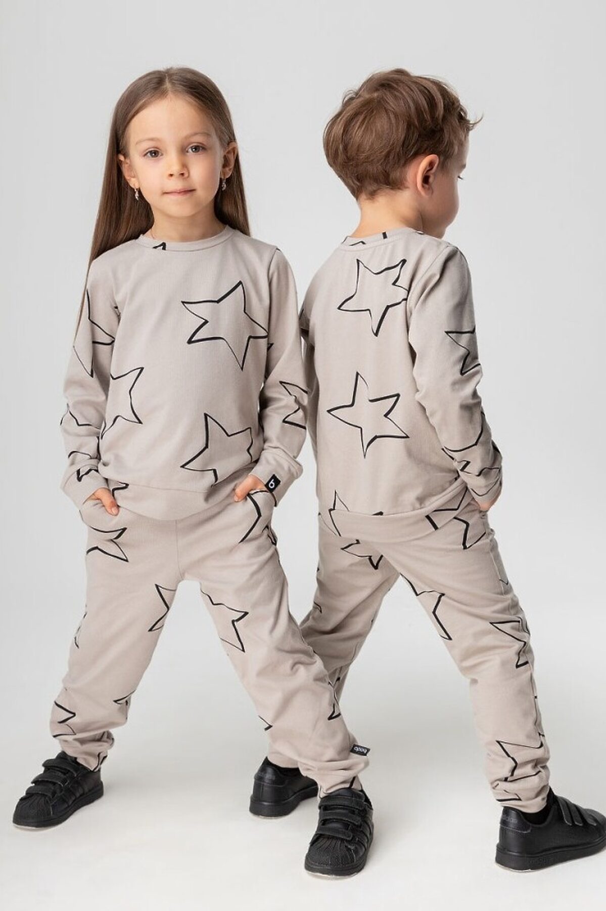 Костюм детский. Свитшот без застежек, округлый вырез горловины, полуприлегающий покрой, брюки-джоггеры, низ на манжетах.
