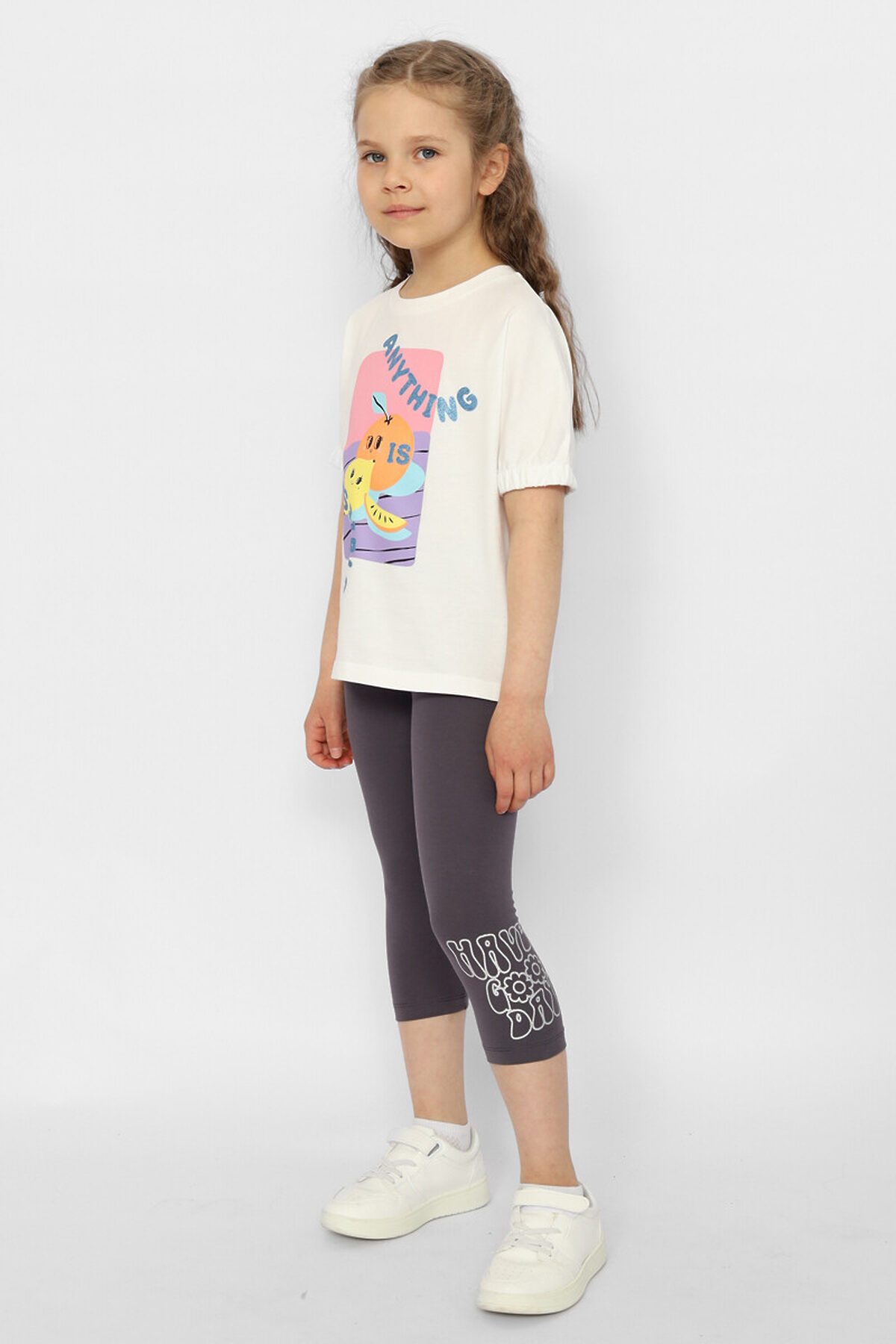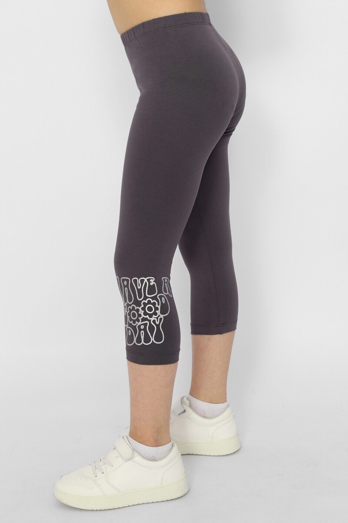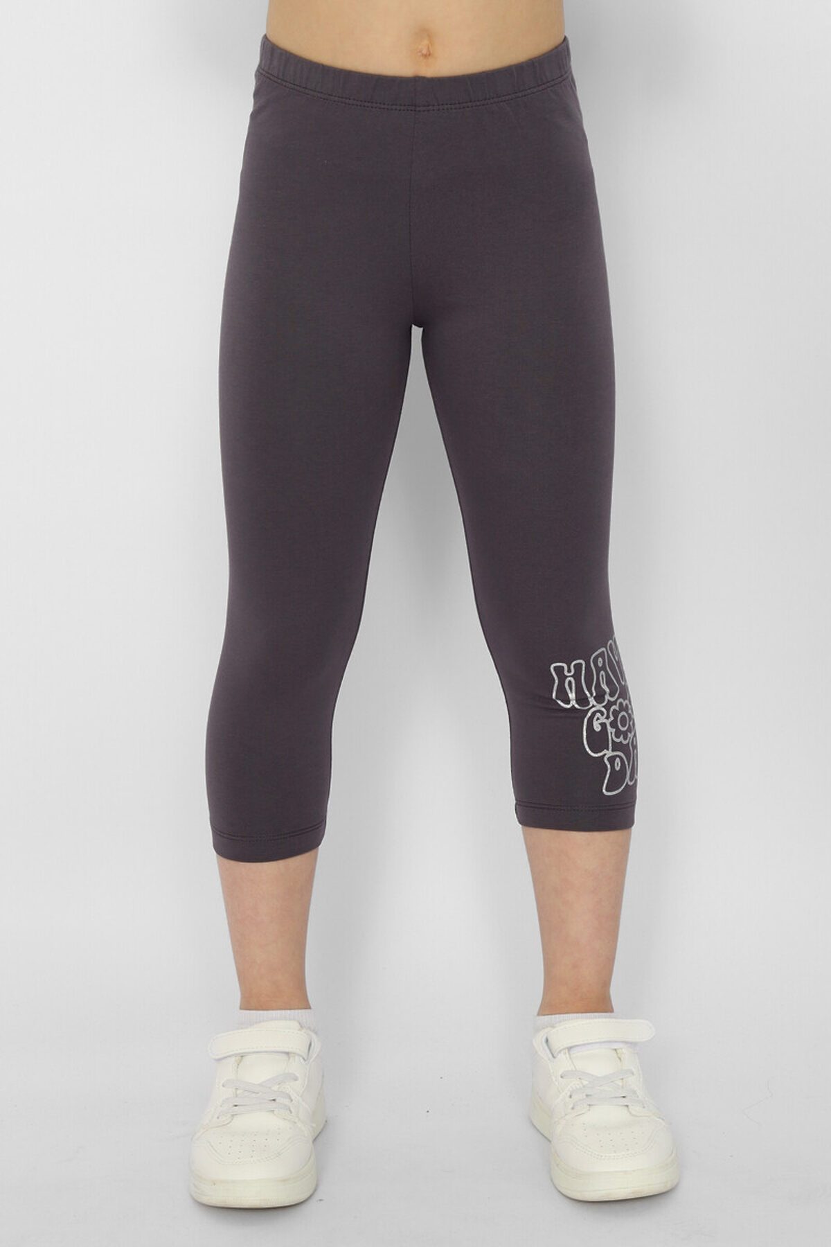 Бриджи для девочки без боковых швов, с резинкой по талии. Декорированы принтом с блестящим эффектом (надпись: Хорошего дня).