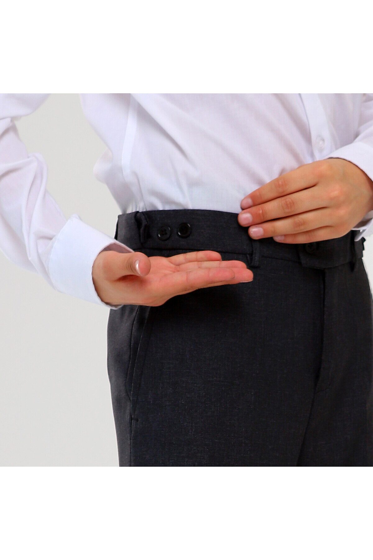 Модель выполнена из костюмной ткани. Детали: - застежка на молнию и пуговицу; - на талии хлястики для регулировки объема талии; - два кармана с отрезным бочком; - необработанные края брюк (возможно подшить на любую подходящую длину).