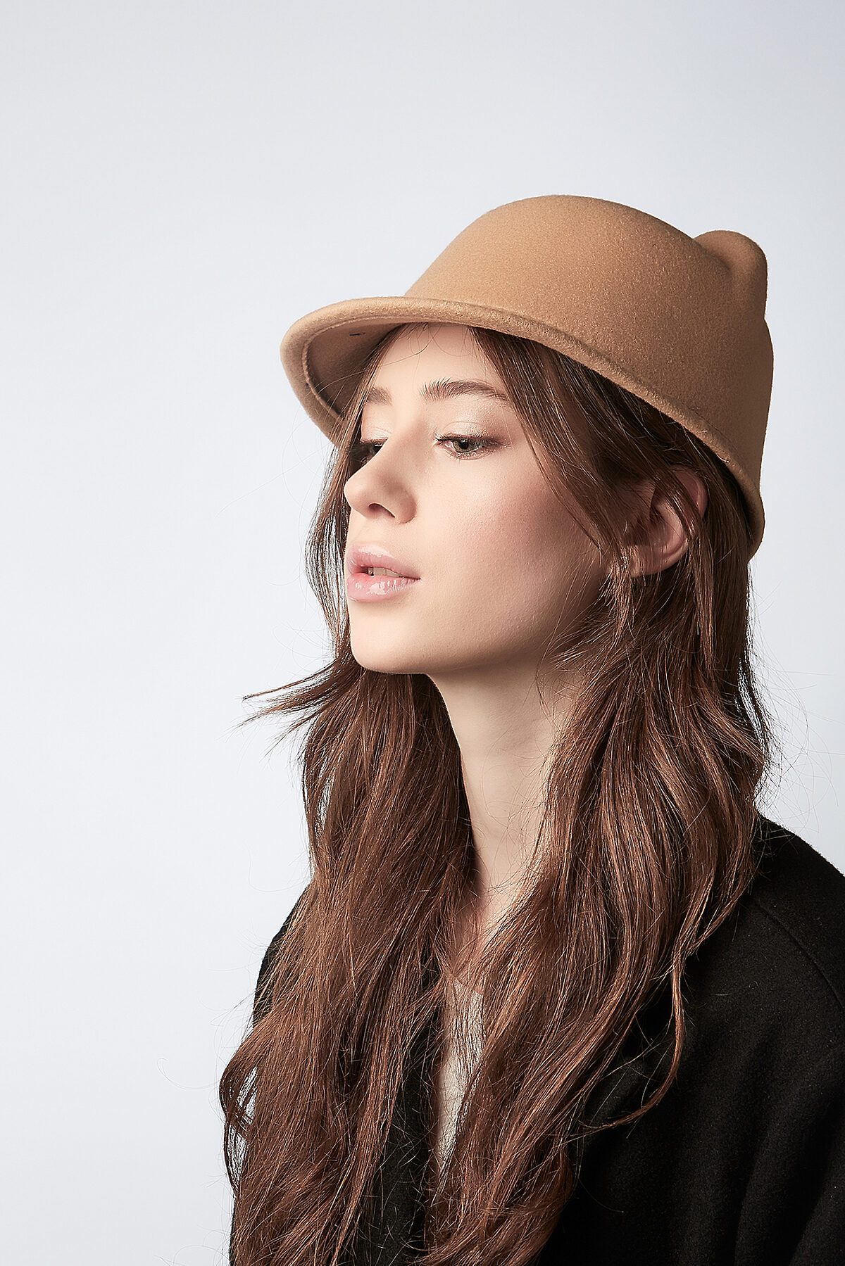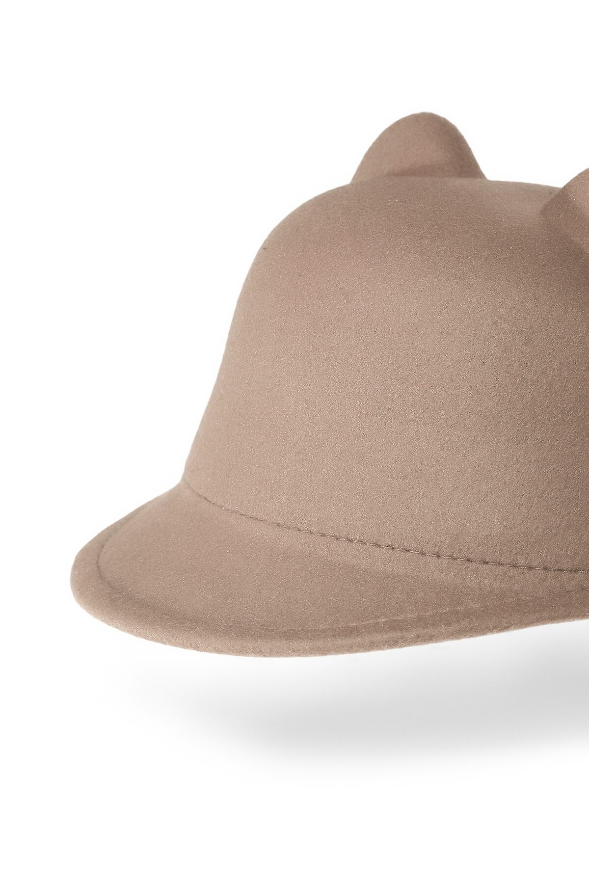 Шляпа-жокейка с ушками выполнена из плотного фетра и хорошо держит форму. Края шляпы и козырек не мнутся благодаря вшитой в край головного убора упругой основе. Широкая лента с тесьмой на изнаночной стороне позволяет регулировать плотность посадки головного убора. Высота шляпы 13,5 см, ширина козырька 5 см.
