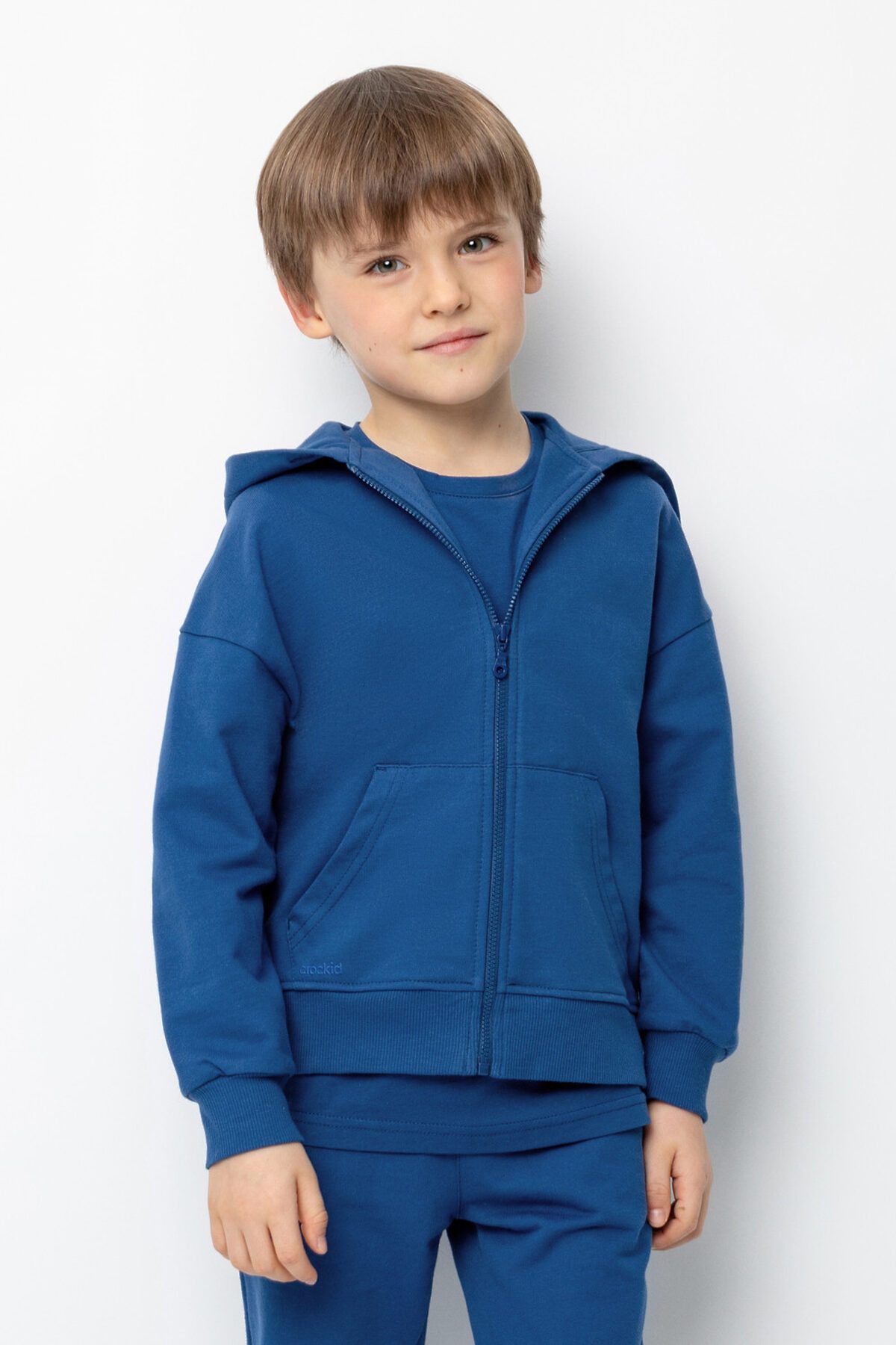 Трикотажная куртка на молнии из петельчатого футера. Спереди удобные накладные карманы. Манжеты и пояс из эластичного трикотажа в рубчик.