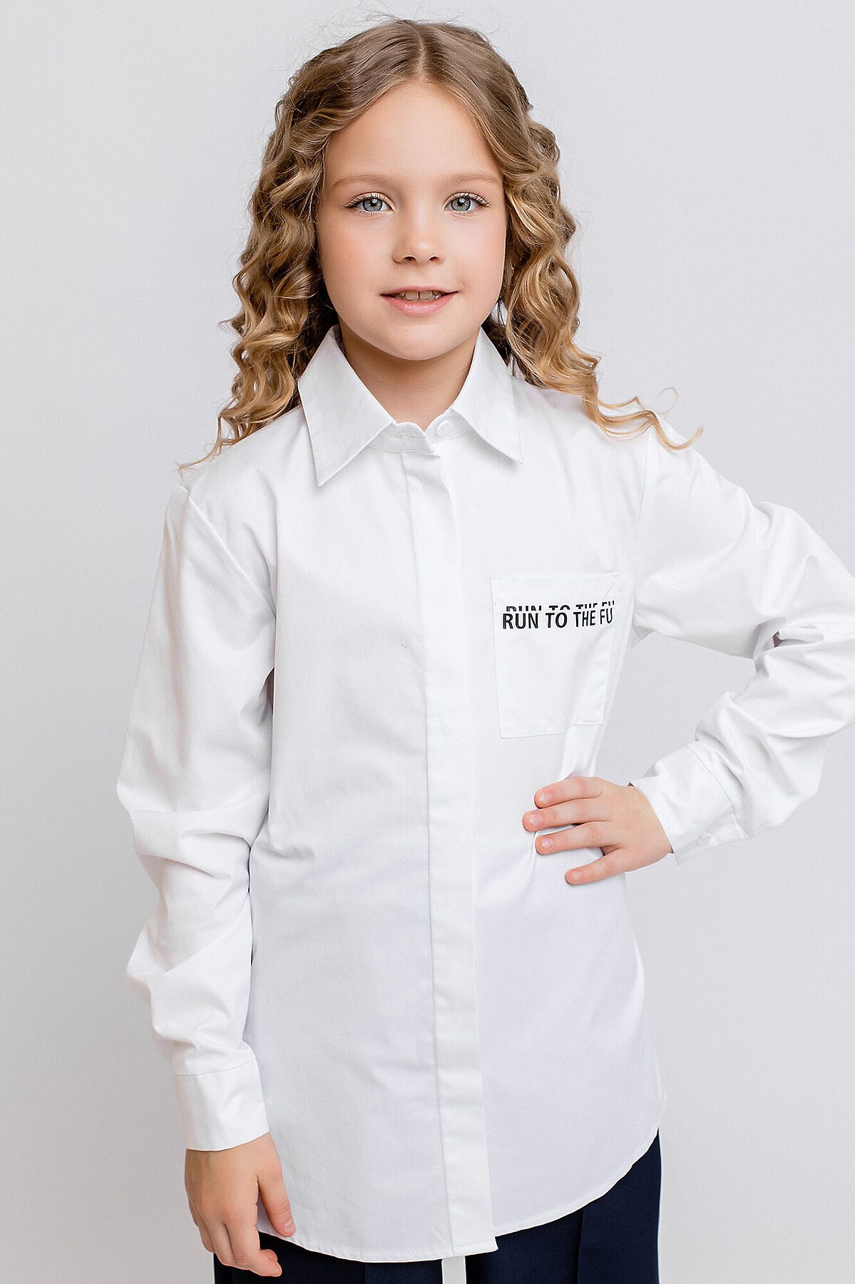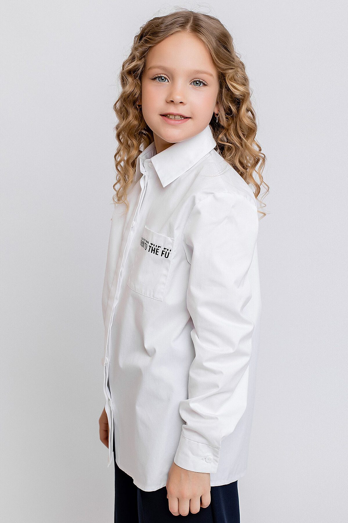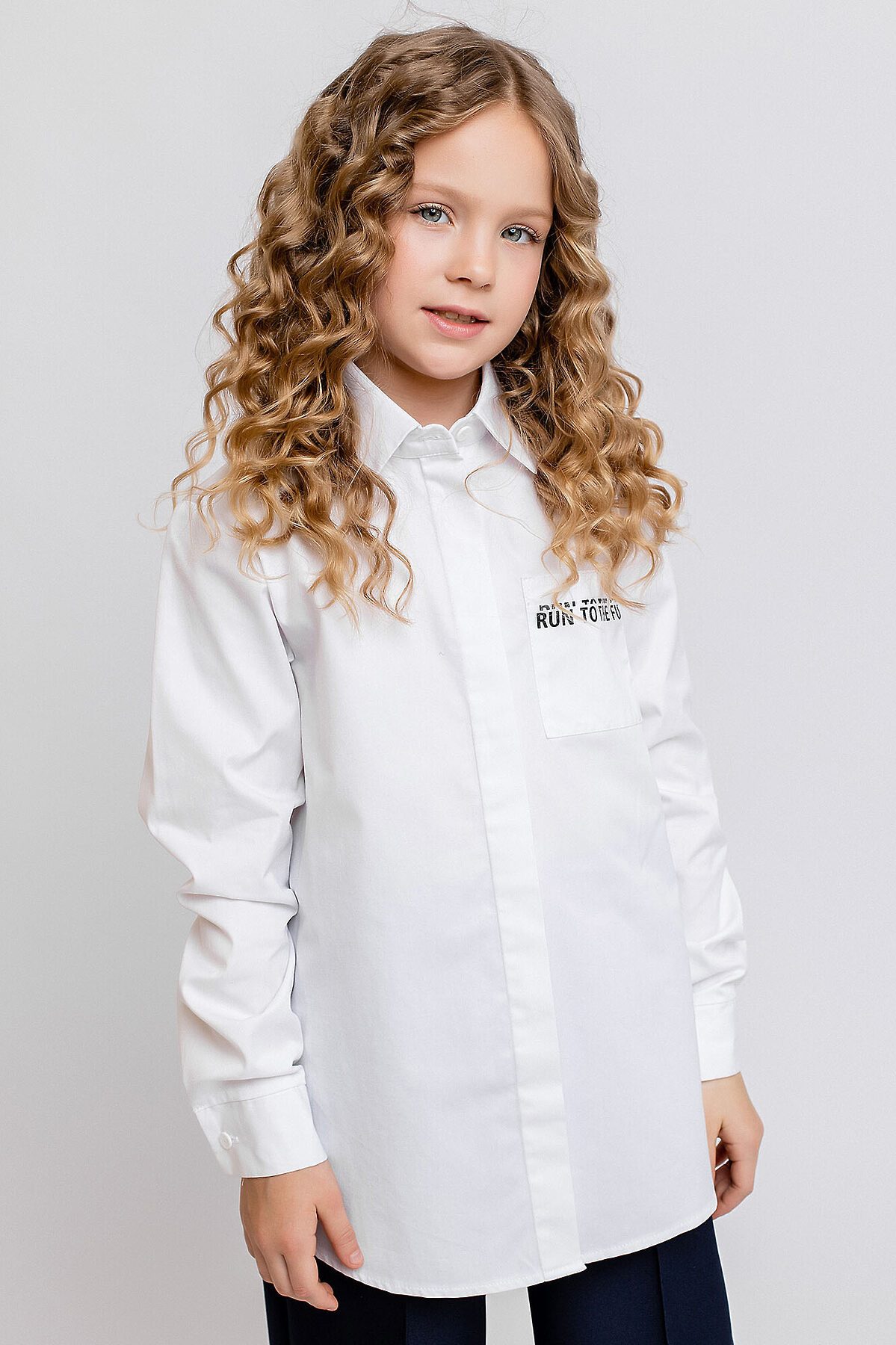 Блузка с длинным рукавом для девочки. С карманом на груди. Застежка на петли пуговицы, отложной воротник. Белая блузка на каждый день для школы и праздников выполнена из сорочечной ткани.