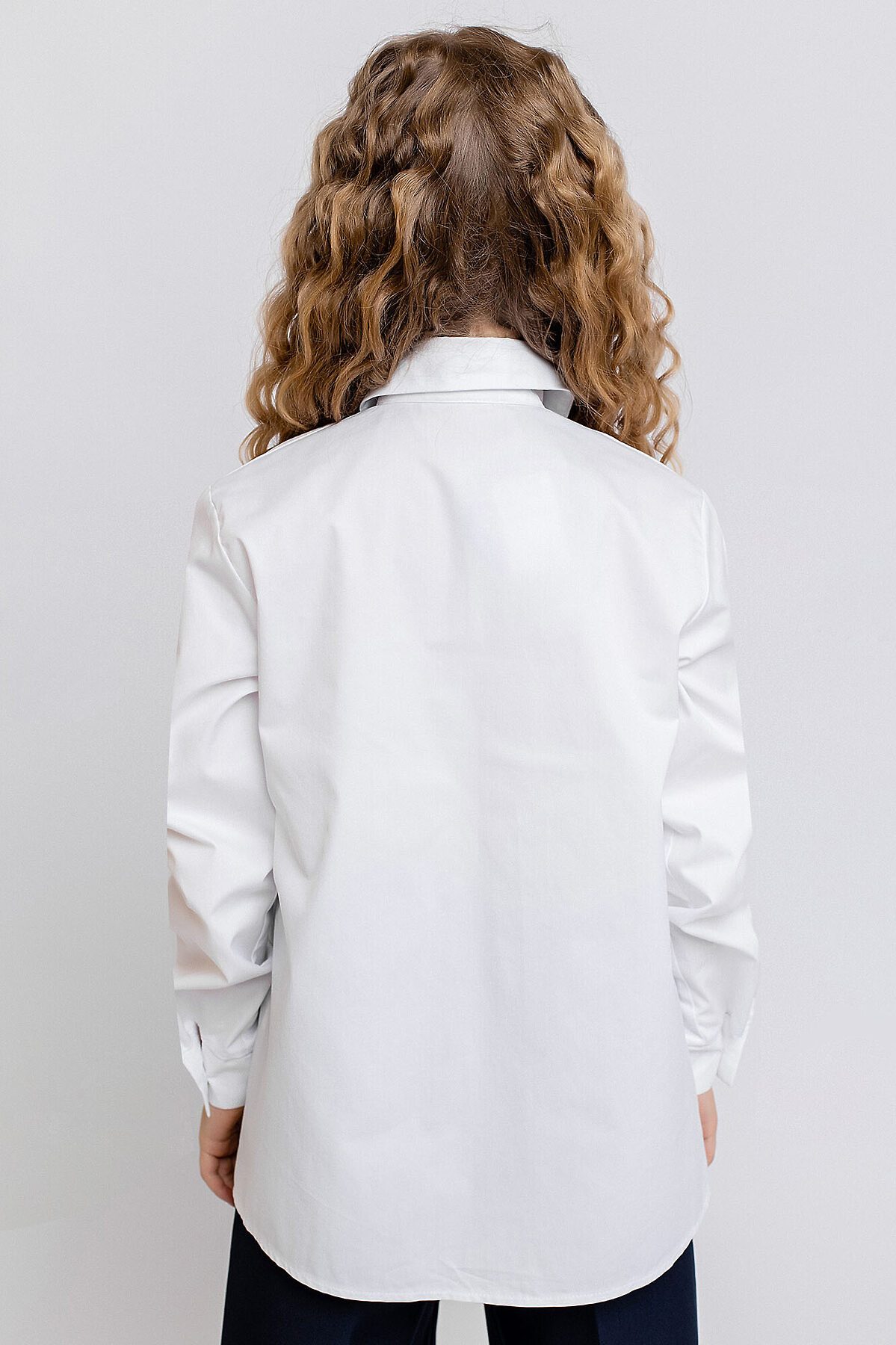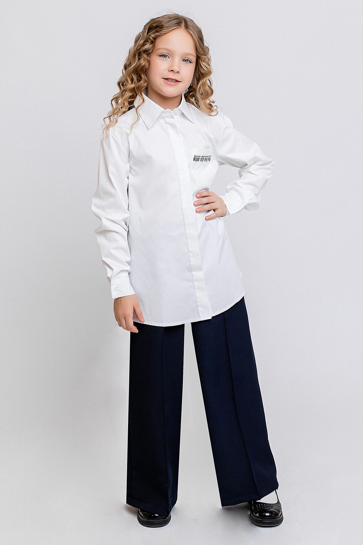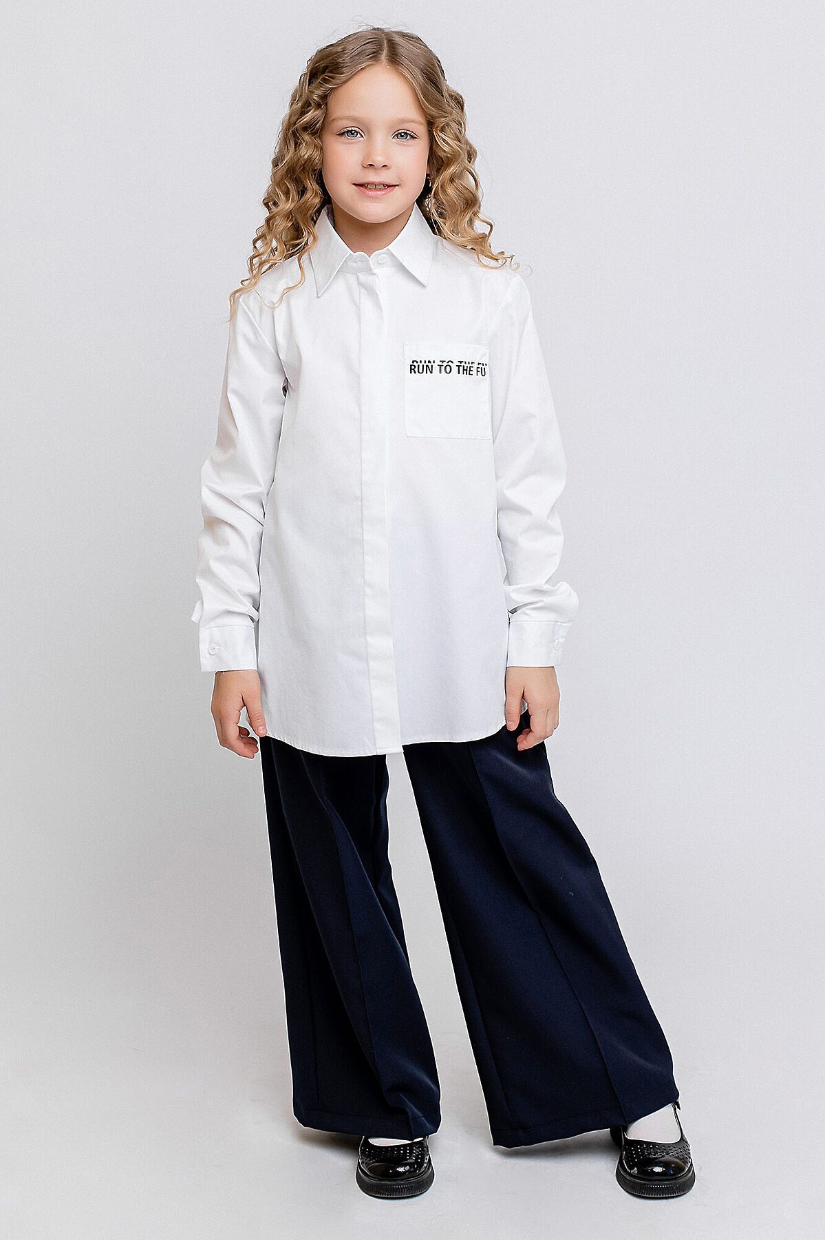 Блузка с длинным рукавом для девочки. С карманом на груди. Застежка на петли пуговицы, отложной воротник. Белая блузка на каждый день для школы и праздников выполнена из сорочечной ткани.