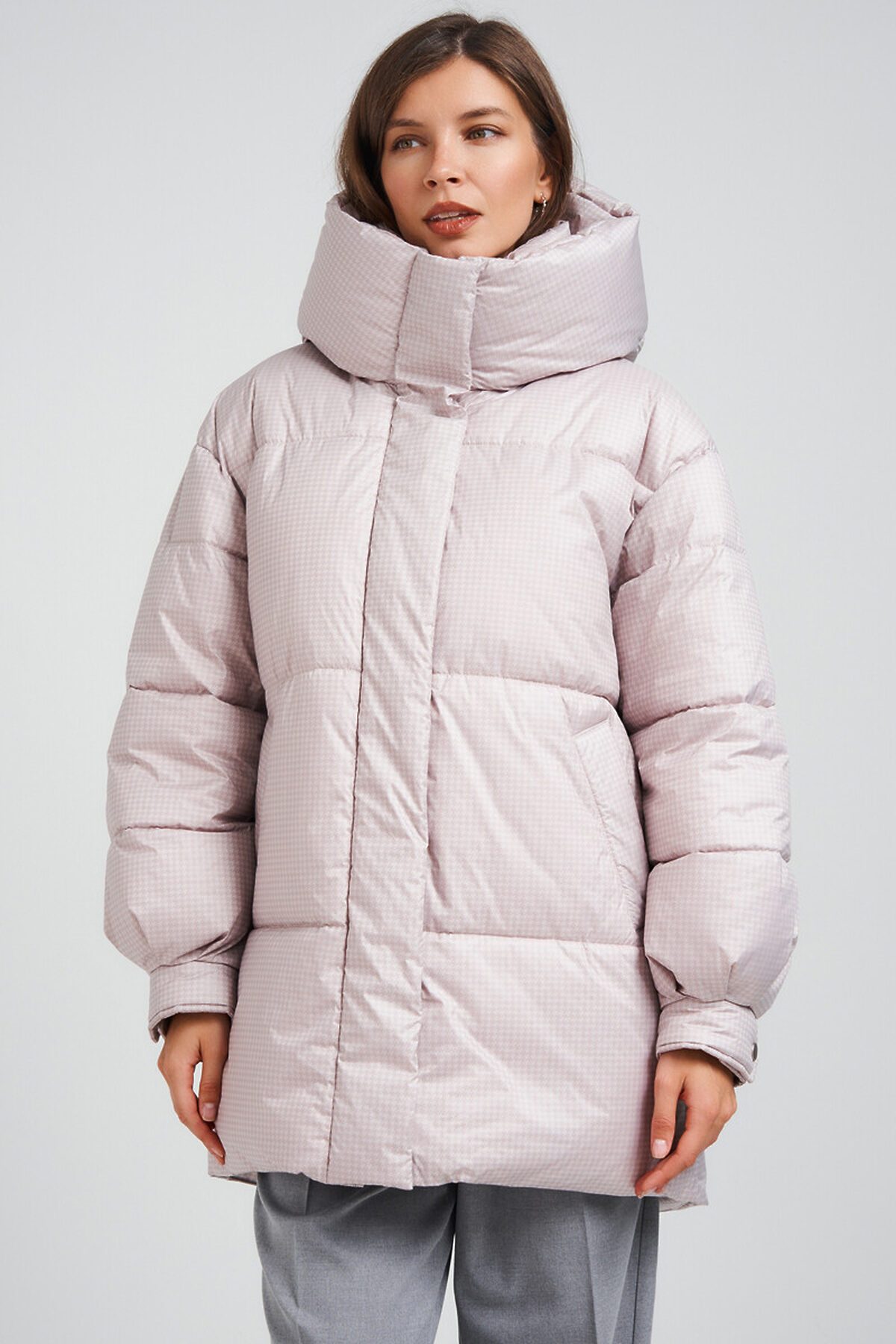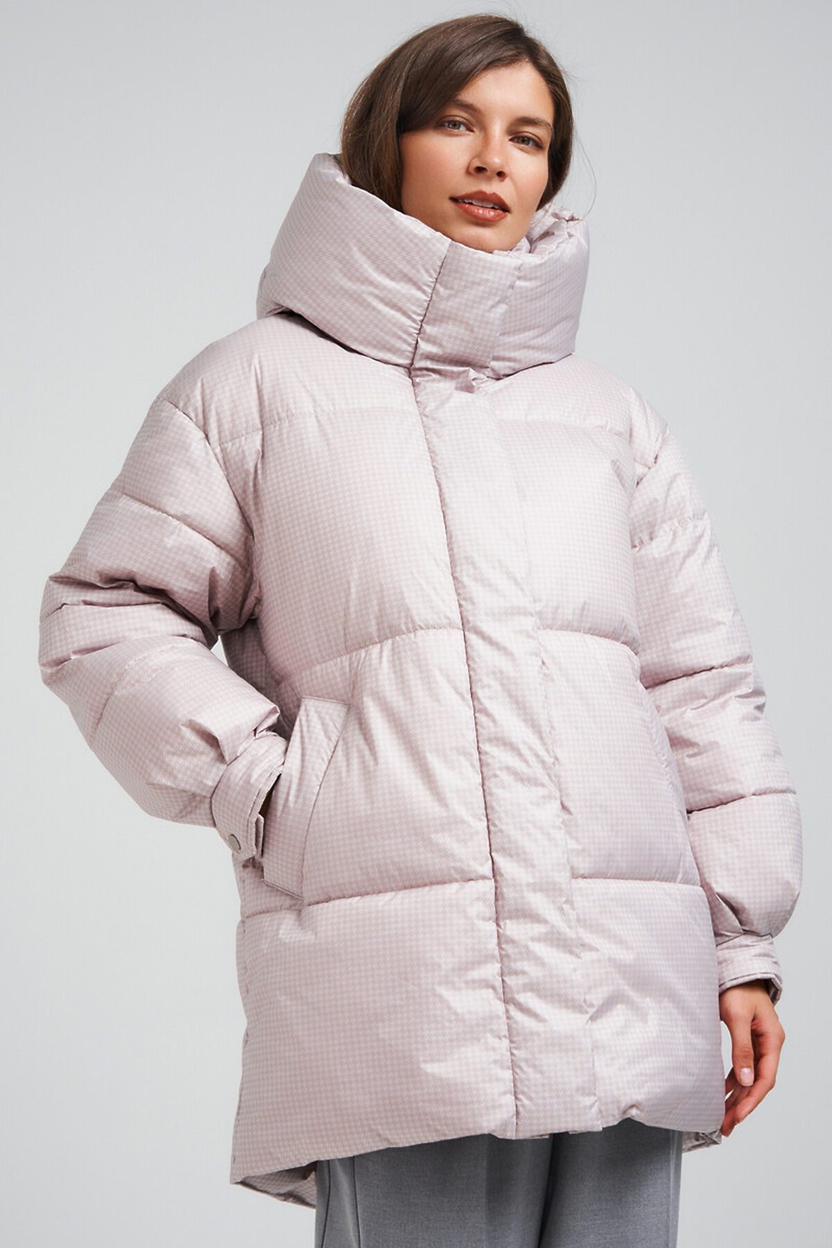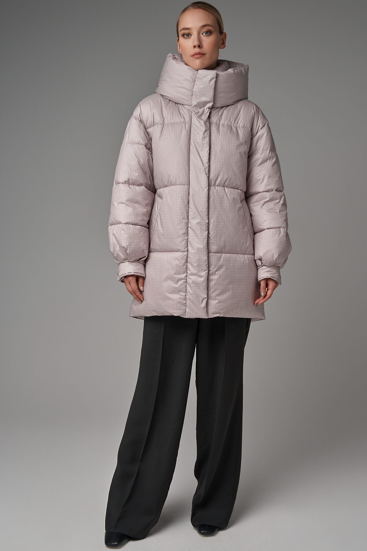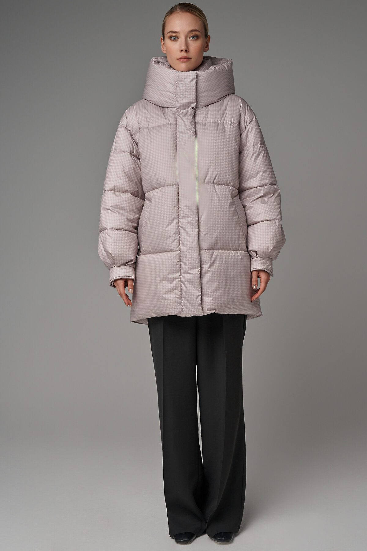 Пуховик oversize силуэта. В изделии есть внутренняя утяжка по низу. Рукав со спущенным плечом. По низу рукавов заложены складки и имеются манжеты с отделочными кнопками. Застежка на молнию, скрытую под планкой на потайных кнопках. В изделии имеются два функциональных кармана с листочками на магнитах и один внутренний карман. Ткань - плащевая с водоотталкивающей пропиткой. Утепление - Био-пух, 200 гр. Рекомендуемый температурный режим (от 0°C до -15°C). Длина изделия - 85 см. Длина рукава - 64 см.