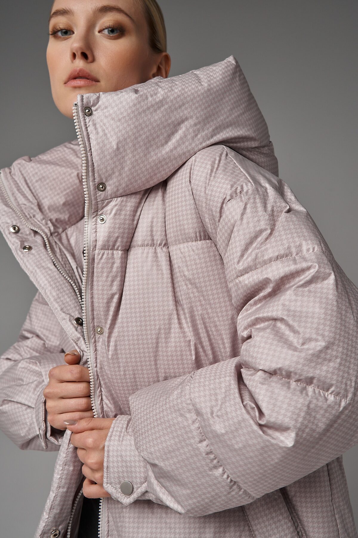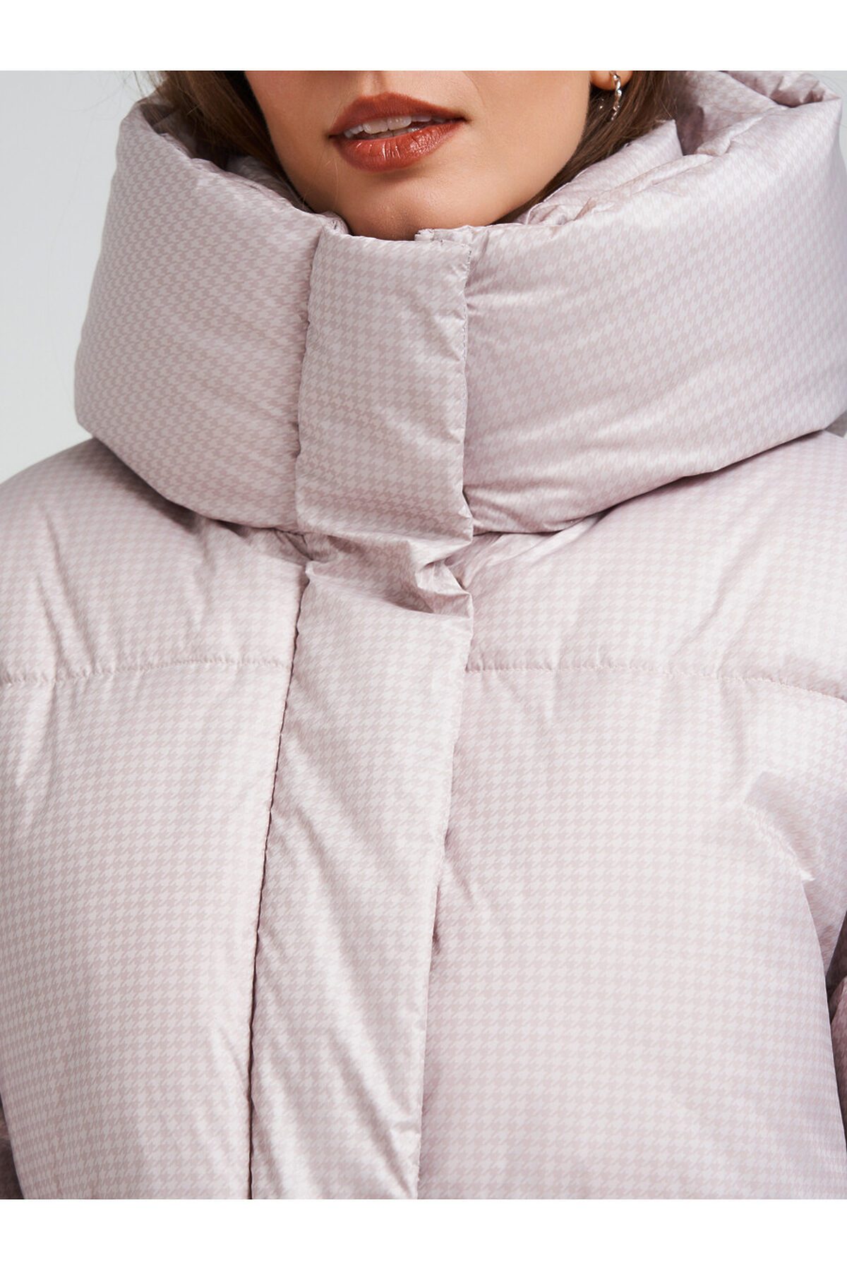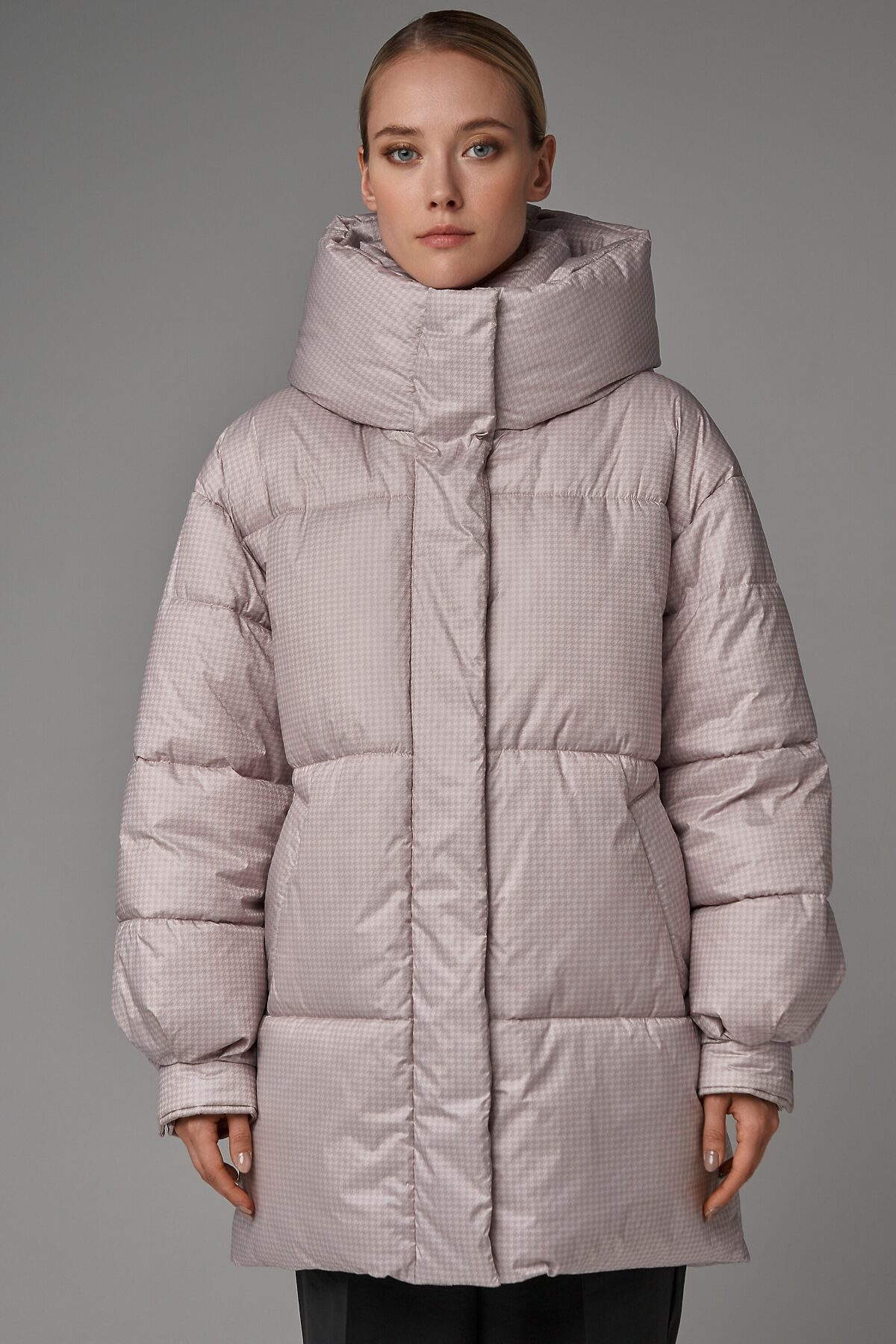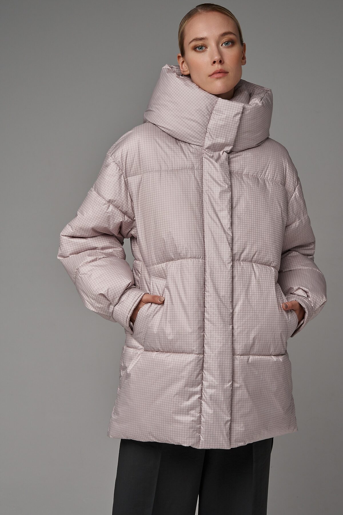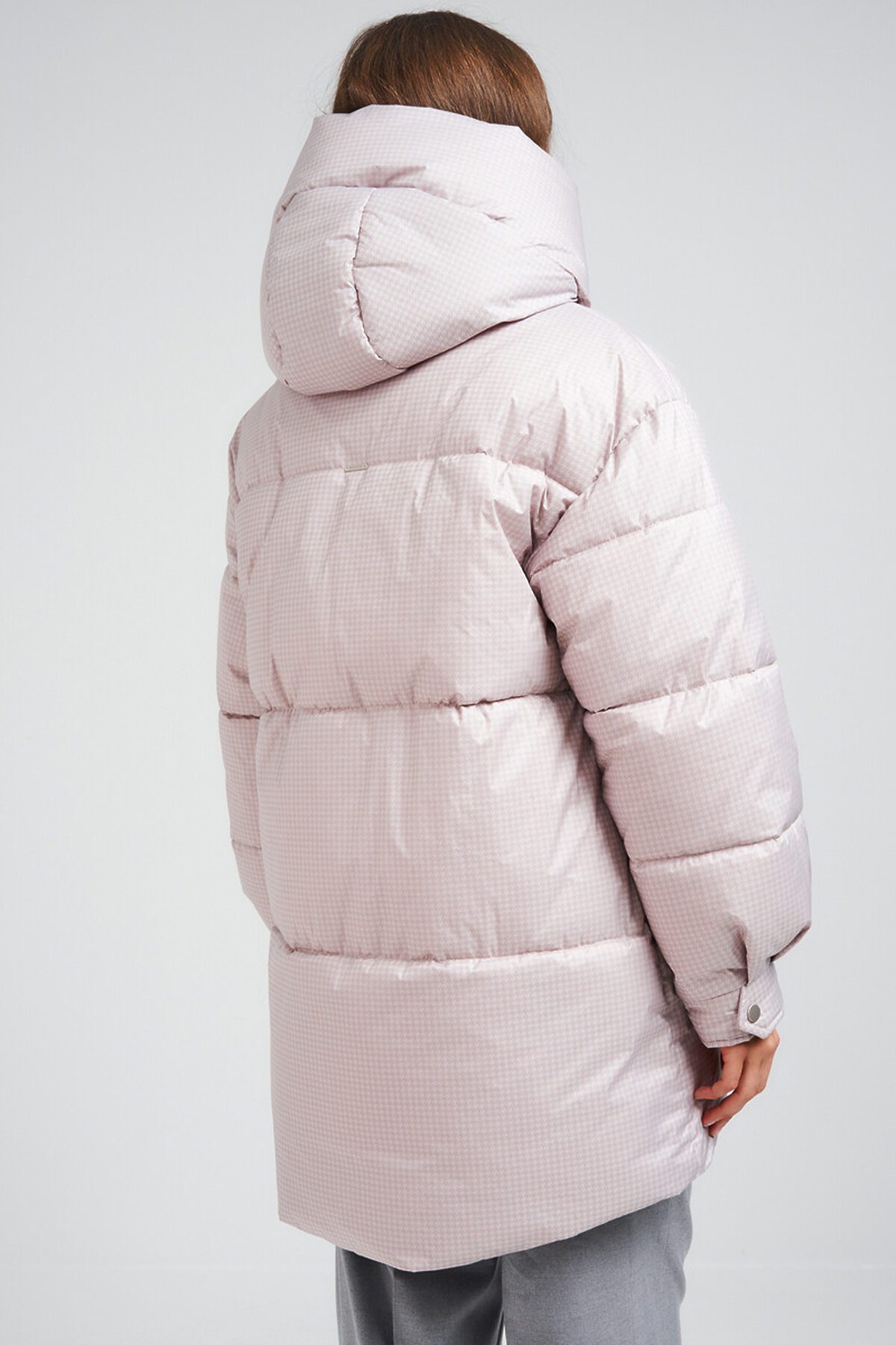 Пуховик oversize силуэта. В изделии есть внутренняя утяжка по низу. Рукав со спущенным плечом. По низу рукавов заложены складки и имеются манжеты с отделочными кнопками. Застежка на молнию, скрытую под планкой на потайных кнопках. В изделии имеются два функциональных кармана с листочками на магнитах и один внутренний карман. Ткань - плащевая с водоотталкивающей пропиткой. Утепление - Био-пух, 200 гр. Рекомендуемый температурный режим (от 0°C до -15°C). Длина изделия - 85 см. Длина рукава - 64 см.