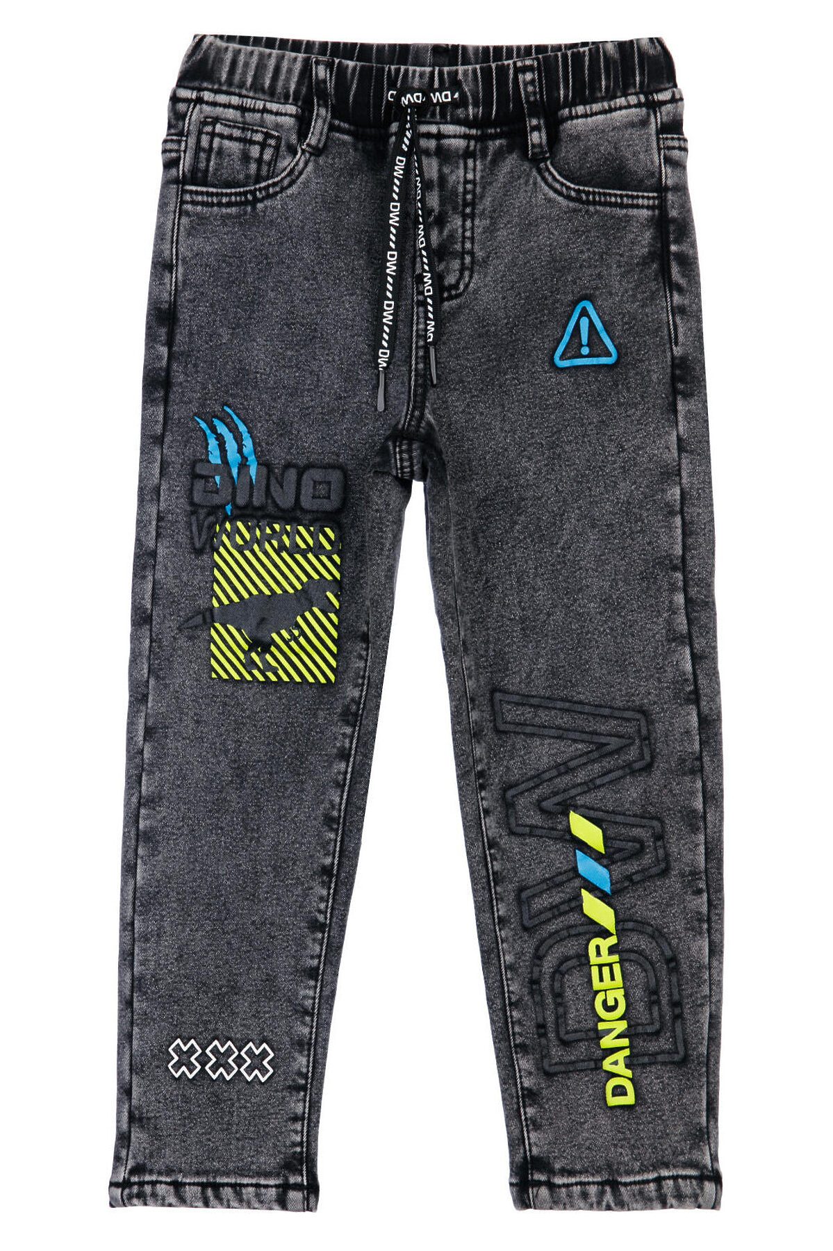 Джинсы, утепленные флисом. Посадка comfort fit – свободный крой брючин. Эластичный пояс со шнурком.