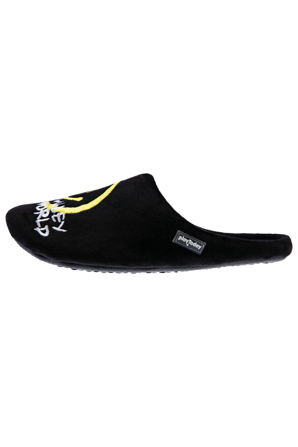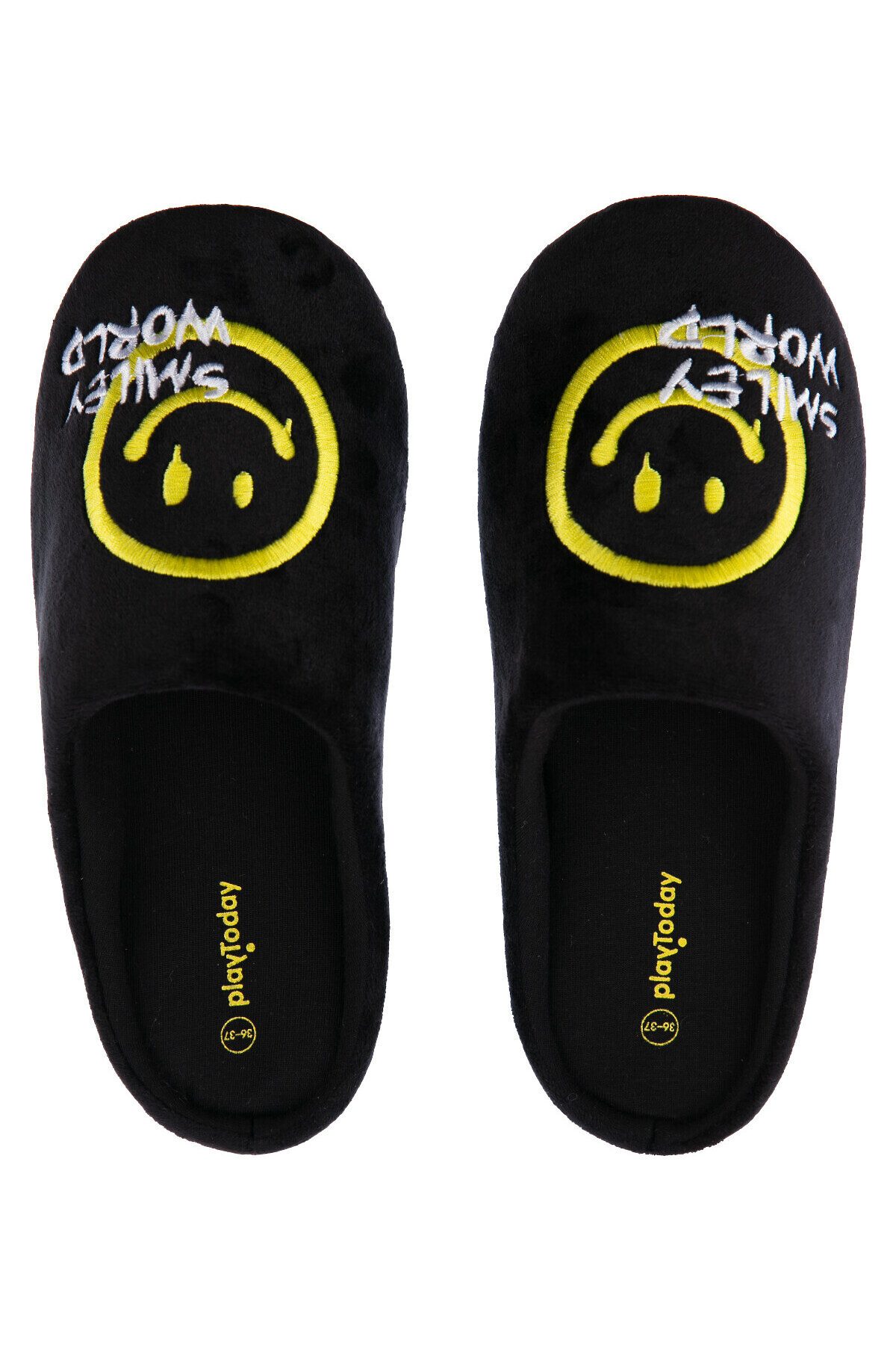 Верх тапочек выполнен из износотойкого текстиля с мягкой, приятной на ощупь поверхностью. Подкладка и стелька из трикотажа с высоким содержанием хлопка 95%.Противоскользящая подошва. Конструкция с открытой пяткой легкая и гибкая.