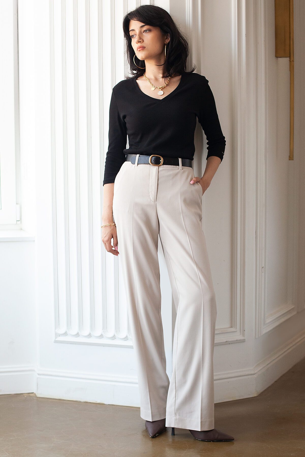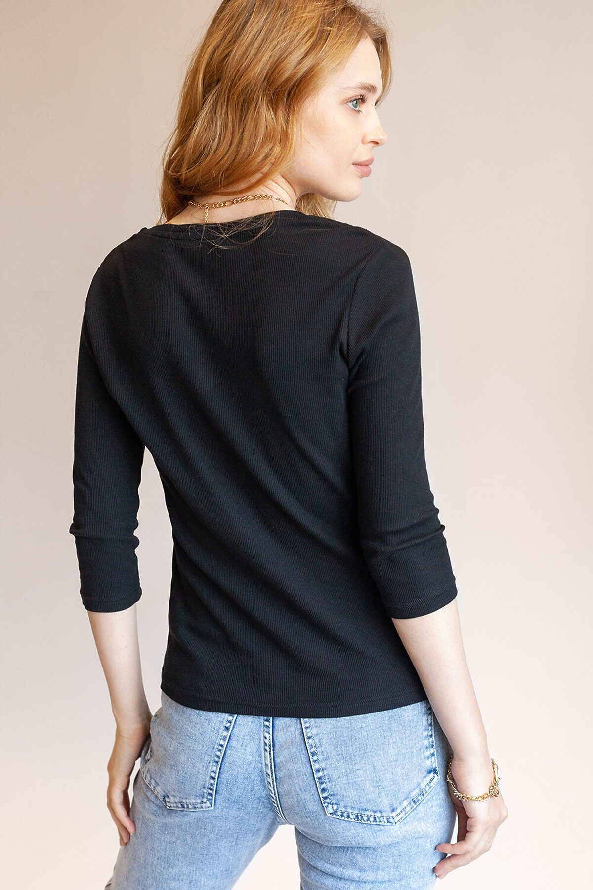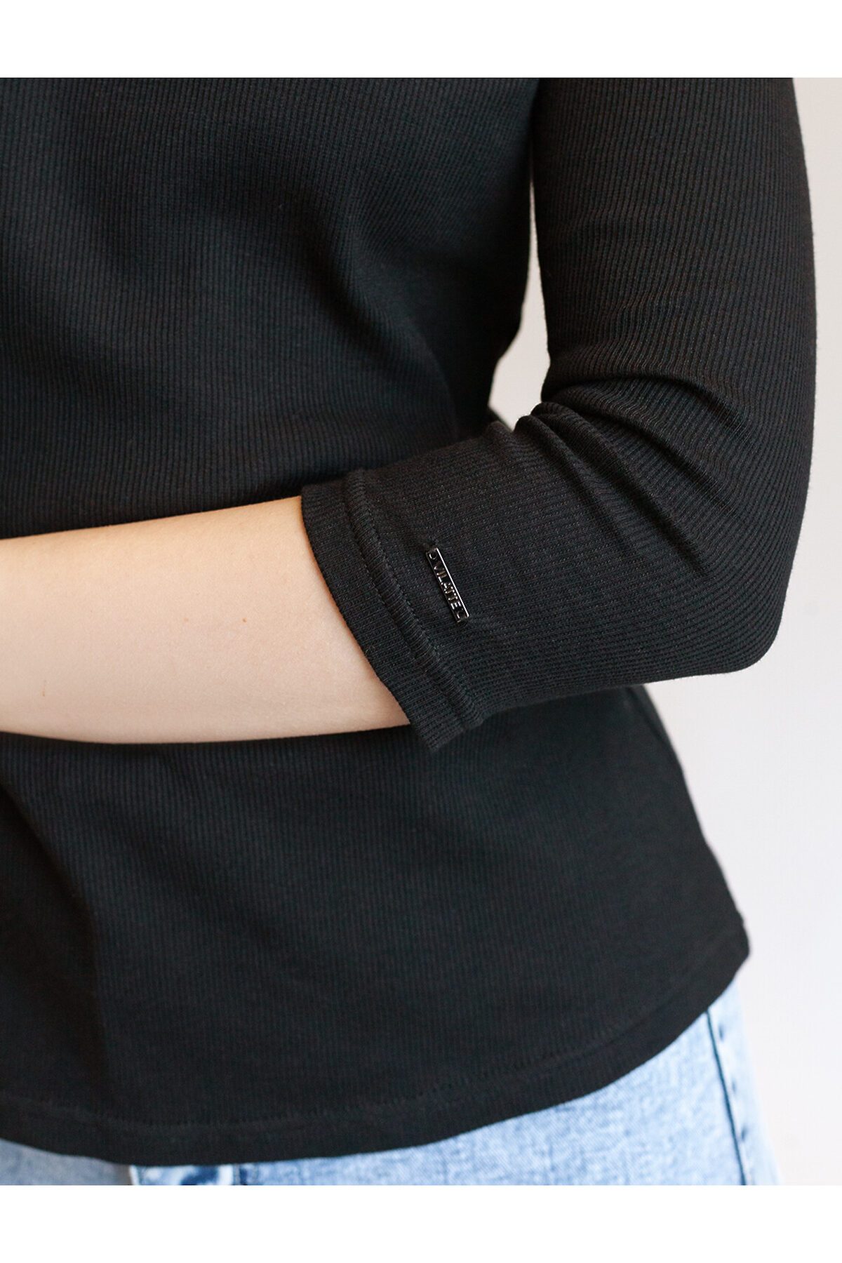 Джемпер с V-вырезом выполнен из тонкого премиального трикотажа в рубчик. Наличие эластана в составе изделия, позволяет надолго сохранить первоначальный вид. Лаконичный джемпер — идеально дополнит базовый гардероб и хорошо впишется в нестрогий офисный стиль. Изделие украшено металлическим логотипом бренда.