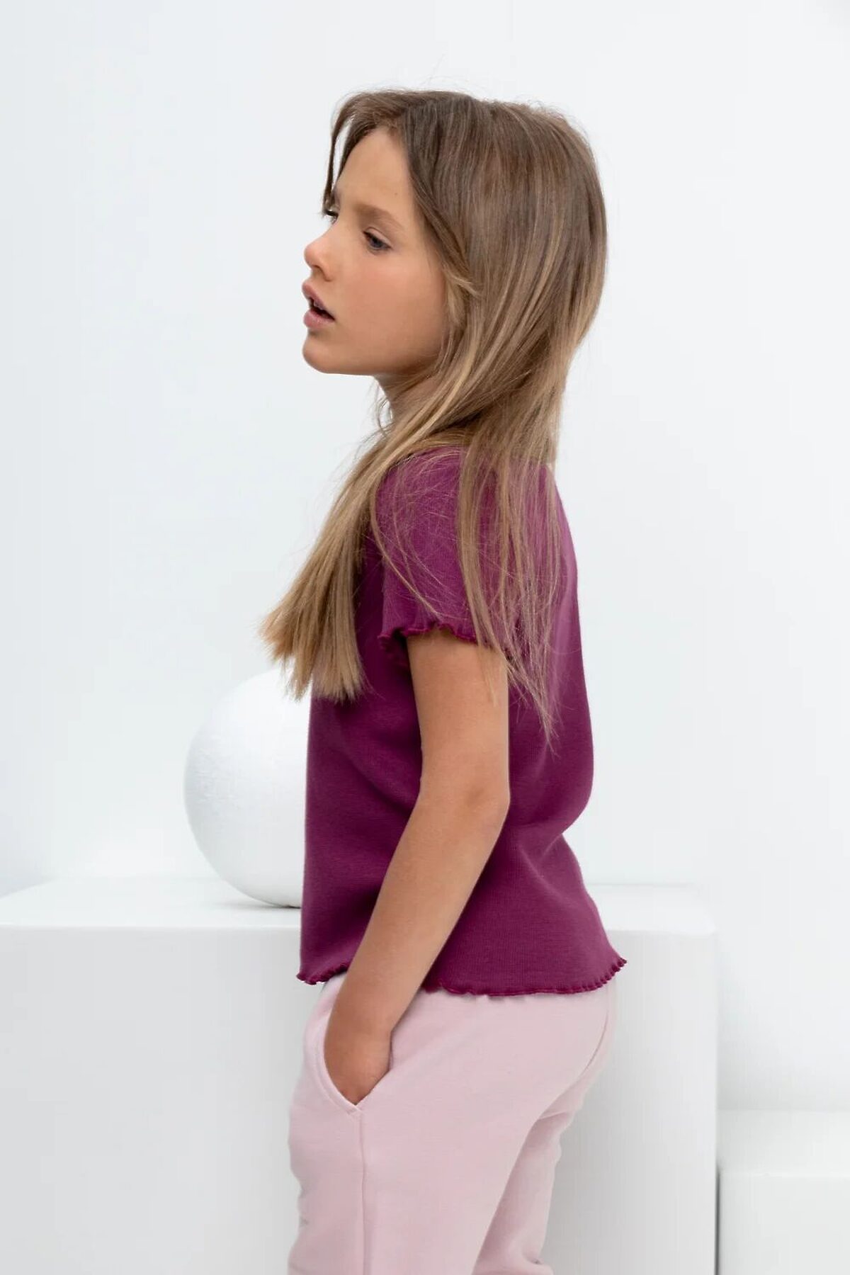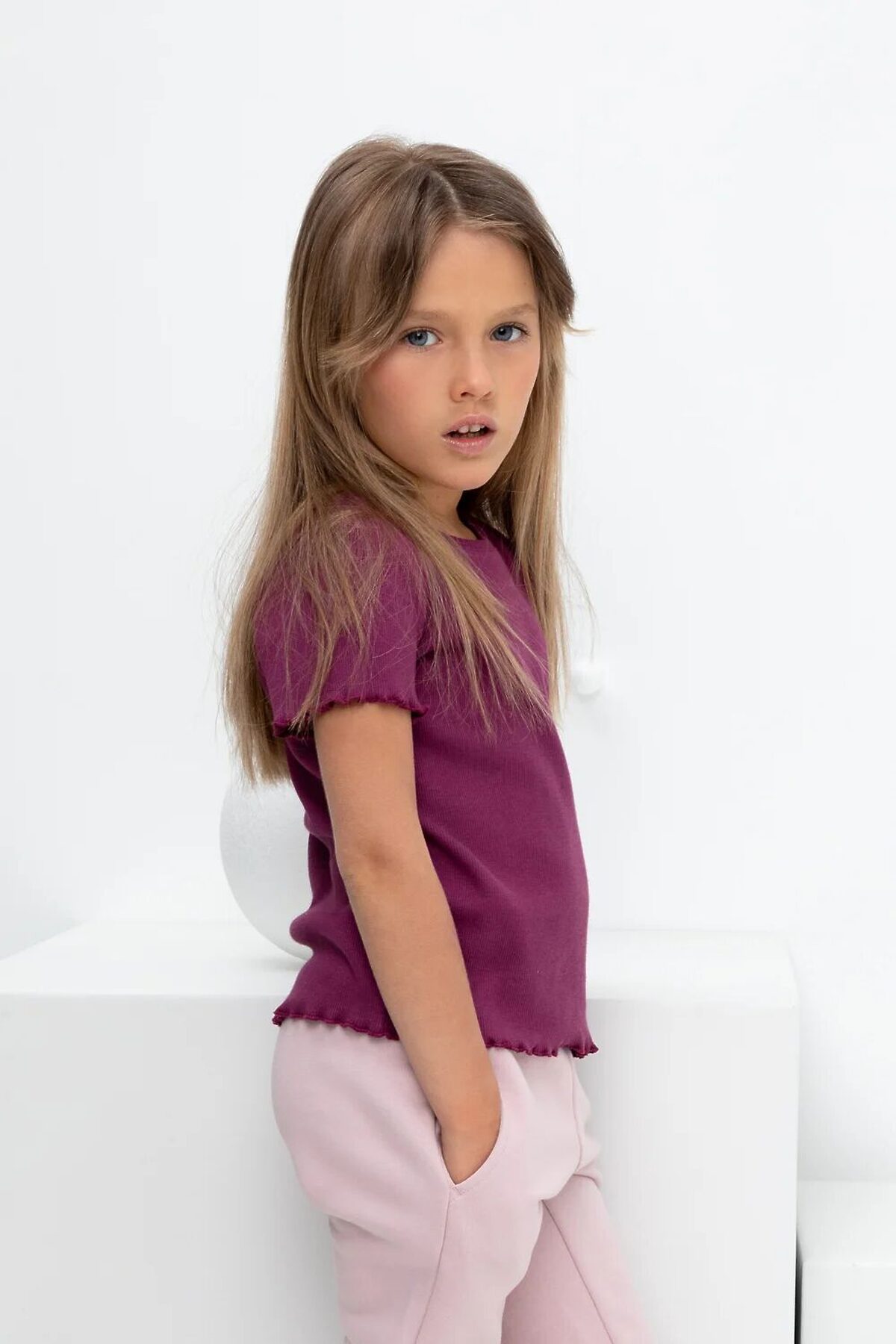 Футболка для девочки из эластичного трикотажа в рубчик.