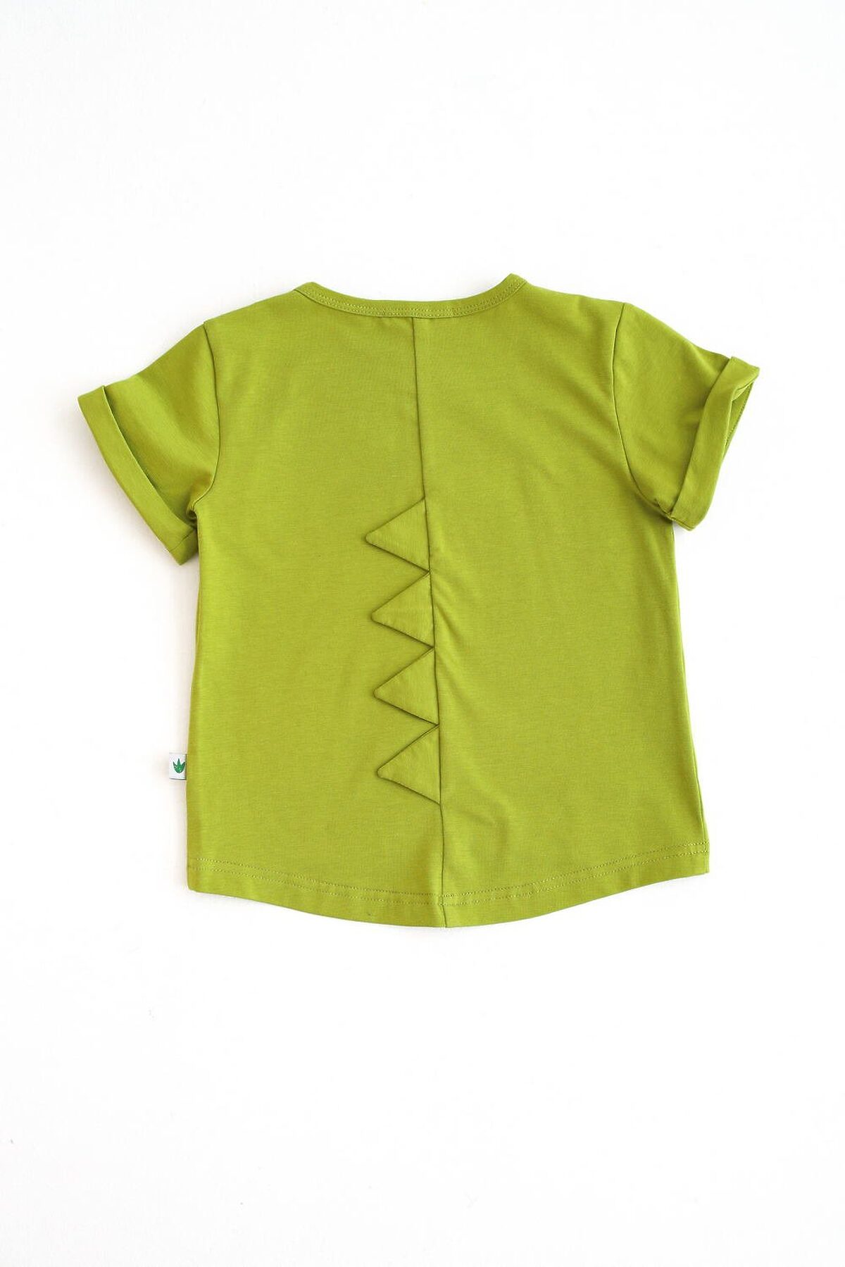 Однотонная футболка Дино с декоративными элементами на спинке. Гребни мягкие, подвижные, легко сминаются и не мешают в повседневной жизни.