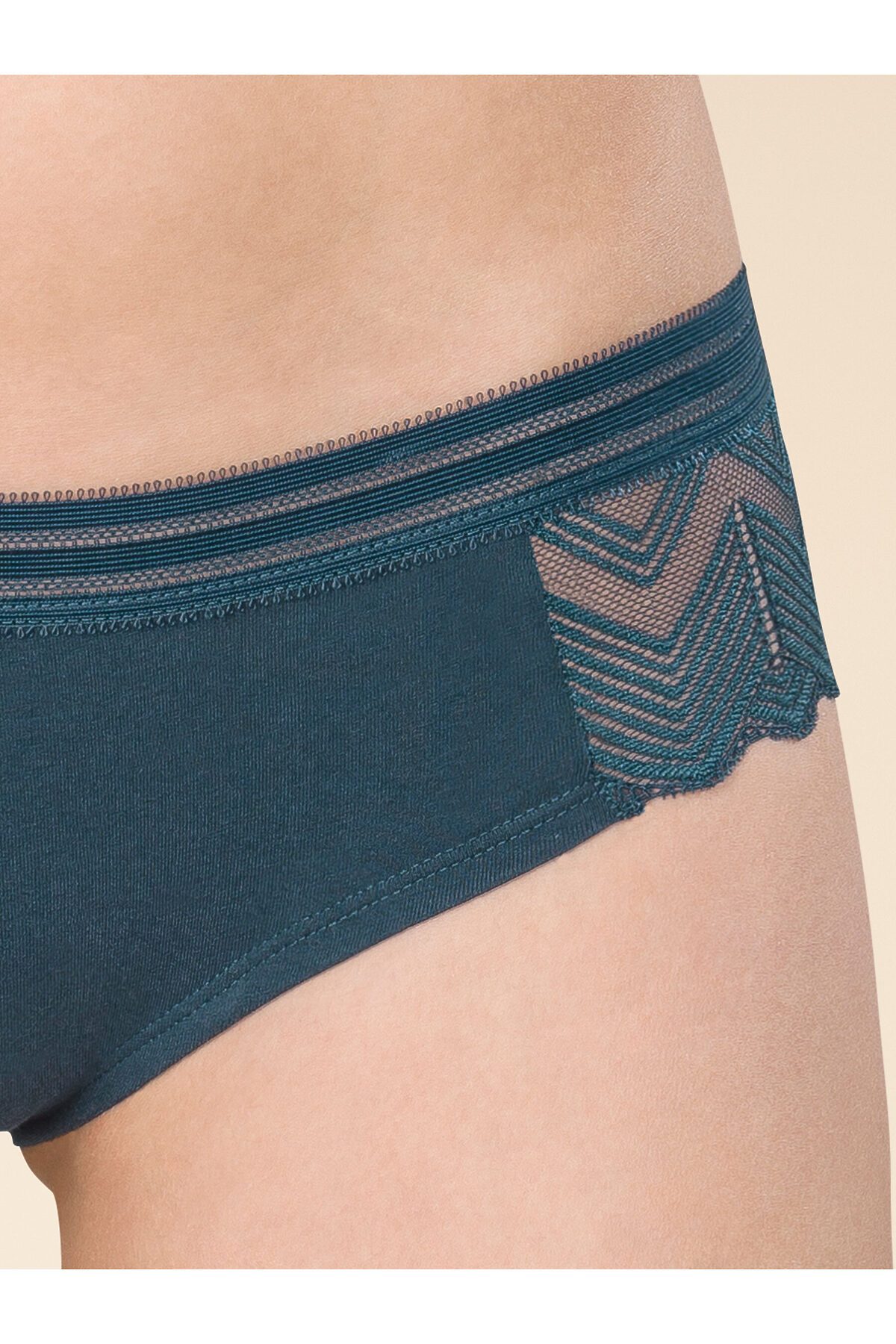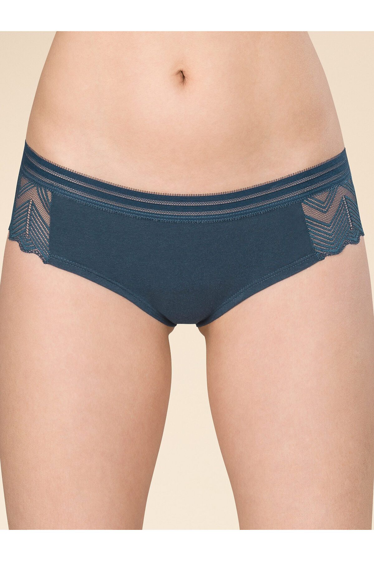 Женские трусы-шорты с низкой посадкой для влюбленных в красивый и активный образ жизни. Ткань с высоким содержанием хлопка и небольшим содержанием эластана. По линии талии мягкий принтованный эластик - не передавливает тело, не натирает кожу. Обработка по ноге двухниткой – шов не деформируется. Нежное геометричное кружево отражает тренд на умный дизайн.
