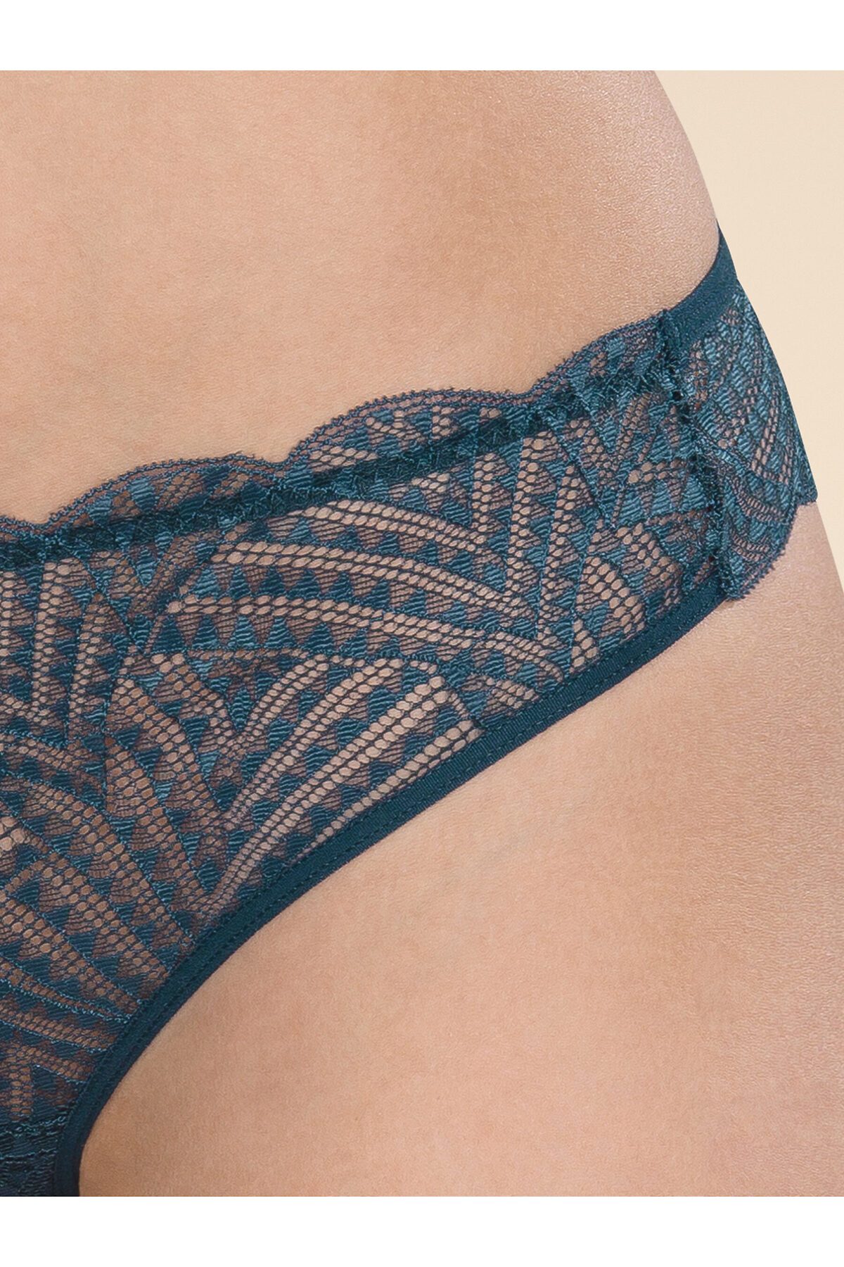 Женские кружевные трусы-стринги с низкой посадкой для влюбленных в красивый образ жизни. Эластичная и мягкая ткань позволяет избежать натираний и неудобств, кожа дышит. Кружево с фестонным краем подчеркивает изящные линии тела и придает модели романтичные нотки. Нежный кружевной узор придает женственности и изысканности. Вы можете создавать разные образы по настроению - от повседневных и классических, до соблазнительных.