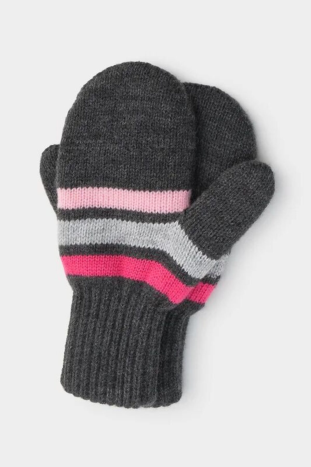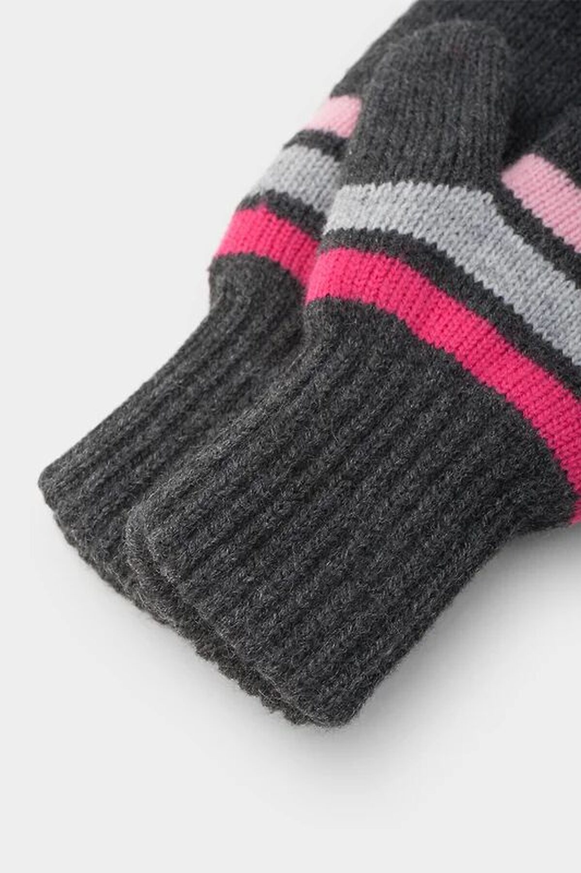 Полосатые варежки из полушерстяной пряжи. Эластичные манжеты фиксируют рукавицу на запястье.