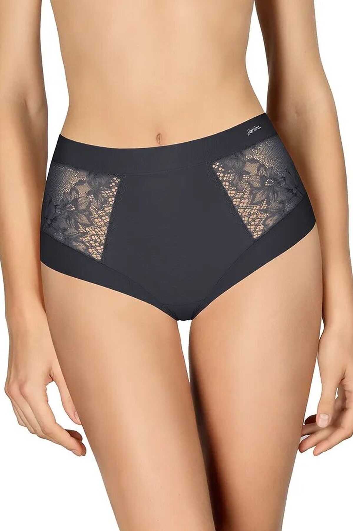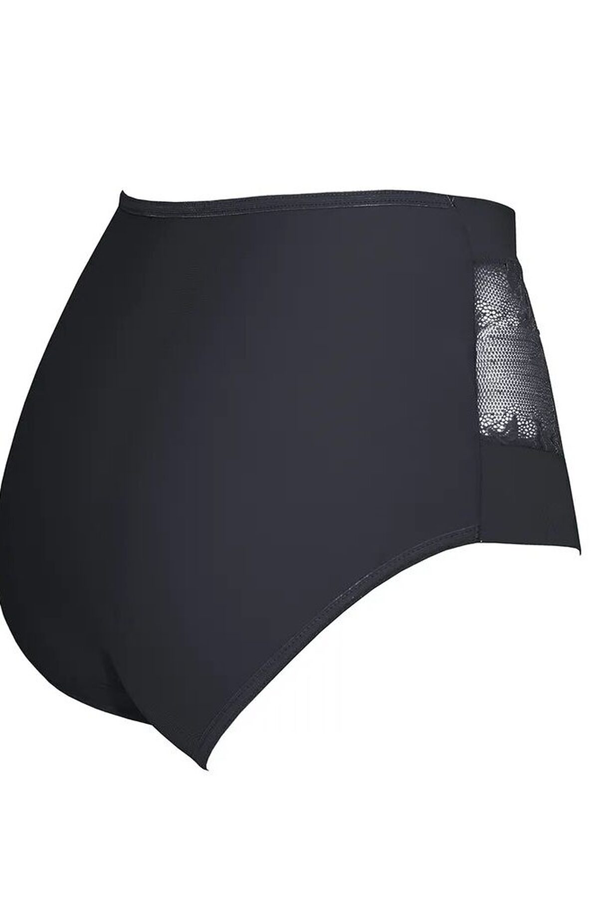 Трусики-слип с высокой линией талии из эластичной и тонкой микрофибры в сочетании с элегантным цветочным кружевом. Высота бочка 15 см. Пояс и линия открытия ноги спереди обратованы мягкой окантовкой. Ластовица выполнена из уникального хлопкового материала.