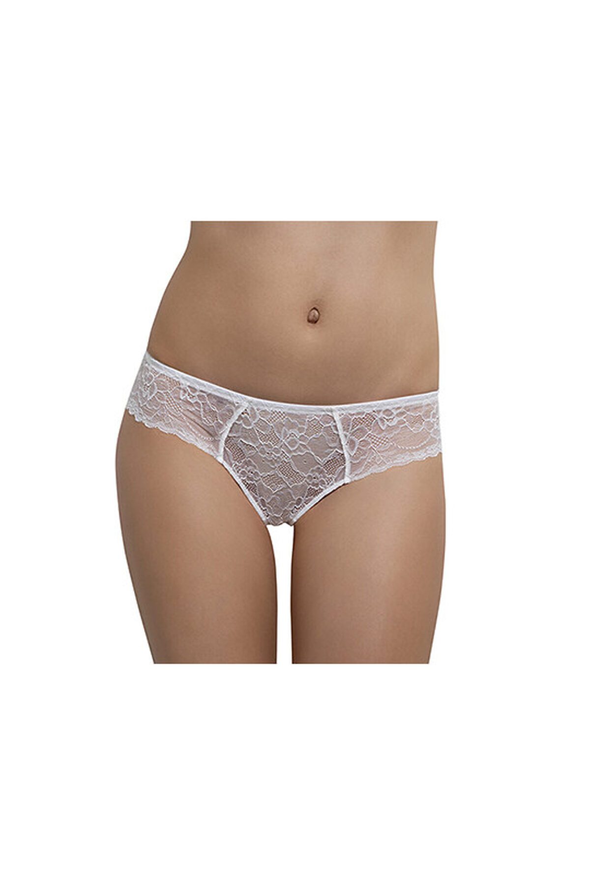 Изящные трусики-слип Melany из эластичного кружева. Форму трусикам придают полоски из узкой тесьмы на передней детали.