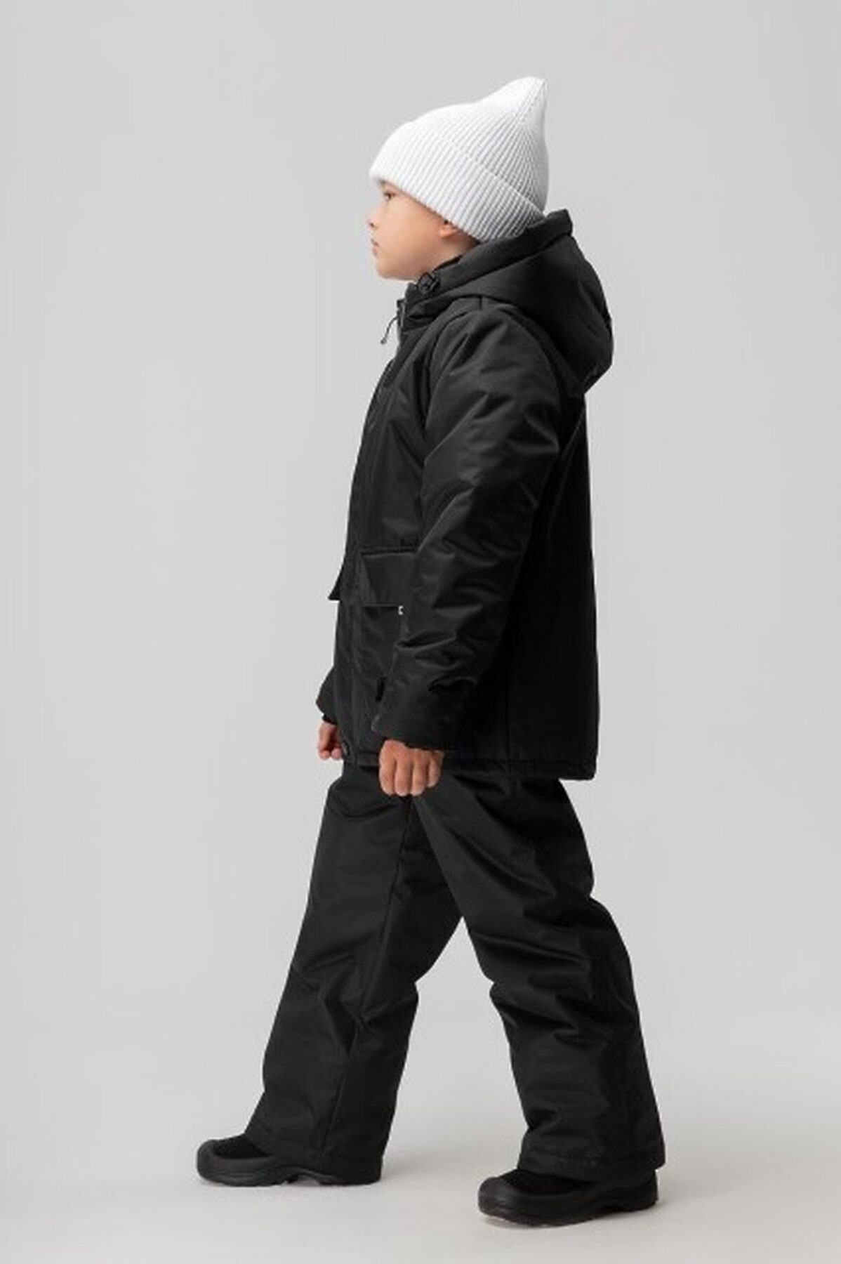 Костюм зимний для детей дошкольного возраста. Куртка с подкладкой, прямого силуэта, с втачными рукавами. Подкладка: флис. Внутри куртки имеется эластичная лямка. Куртка с центральной застёжкой на тесьму - «молния» закрытая ветрозащитной планкой. Куртка с капюшоном, с регулировкой по диаметру капюшона. На полочке располагаются два кармана закрытые клапаном. Брюки утеплённые для детей дошкольного возраста. Брюки прямые, свободные, на молнии. Брюки на регулируемых подтяжках. Низ брюк прямой. По низу брюки снабжены защитой от снега. Состав: мембранная ткань 100% полиэстер, утеплитель куртка Hetta micro 300 г/кв.м, брюки Hetta micro 150 г/кв.м, подкладочный материал куртка флис 100% полиэстер, брюки кулирная гладь 100% хлопок.