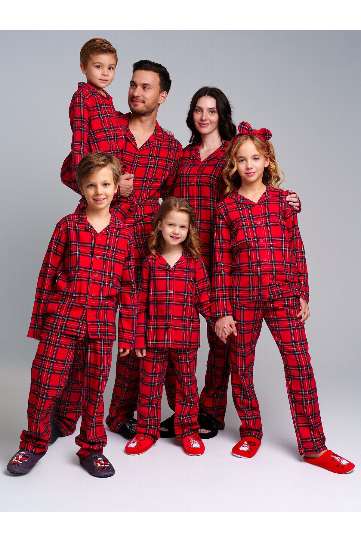 Пижама текстильная. 100% хлопок. Фланель - мягкая, приятная к телу ткань с небольшим начесом. Застежка на пуговицы. Карманы в брюках. Эластичный пояс с тесьмой позволяет легко надевать брюки и утягивать до комфортной посадки.