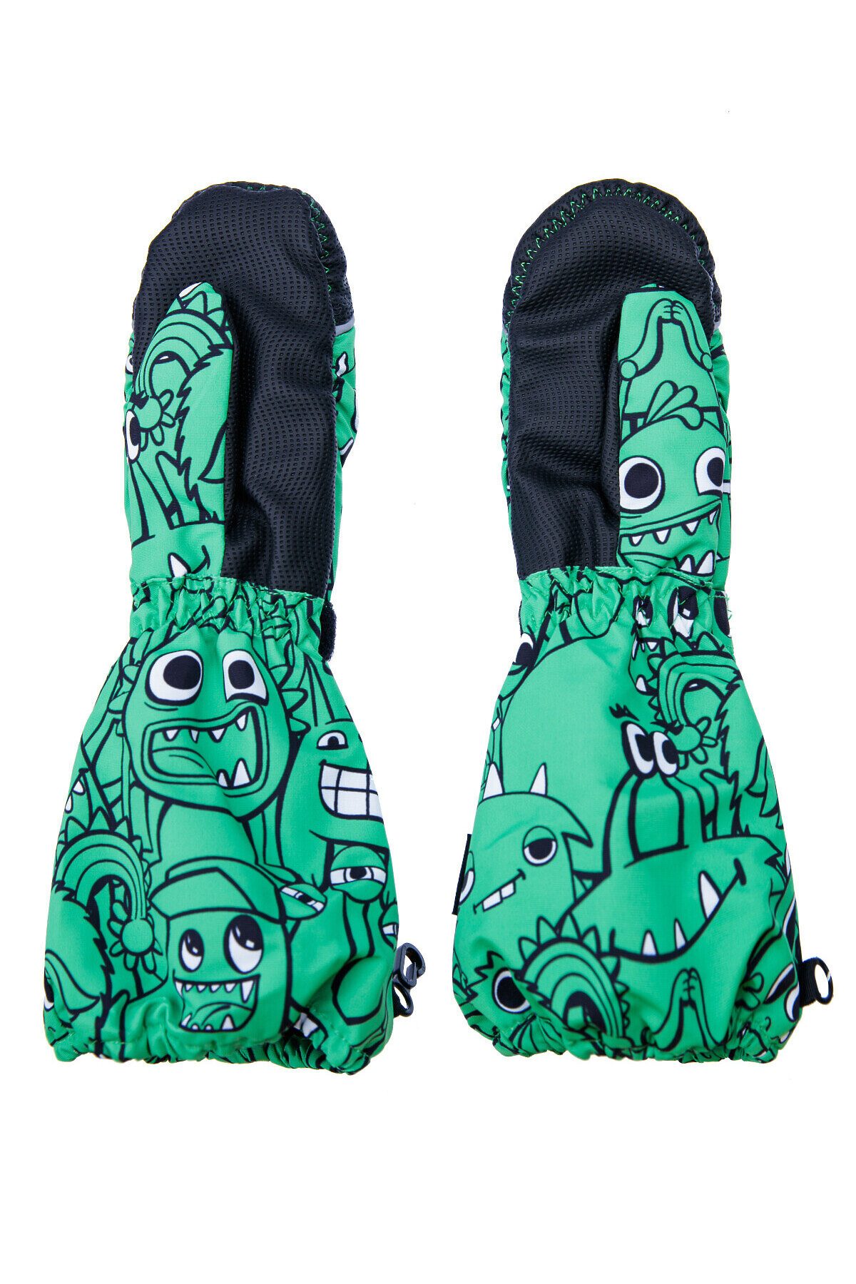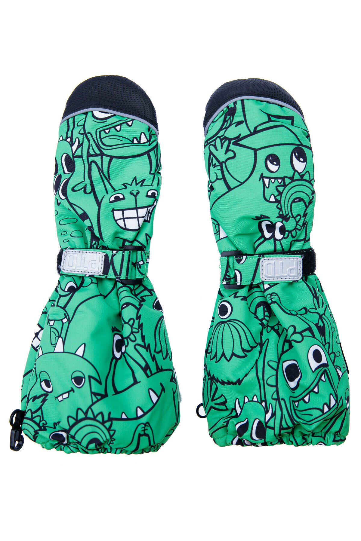 Зимние варежки-краги с мембраной. Утеплитель – синтепон. Мягкая ладошка из влагостойкого полиуретана. Регулируемая застёжка с липучкой по запястью. Застежка для скрепления пары между собой. Светоотражающие элементы.