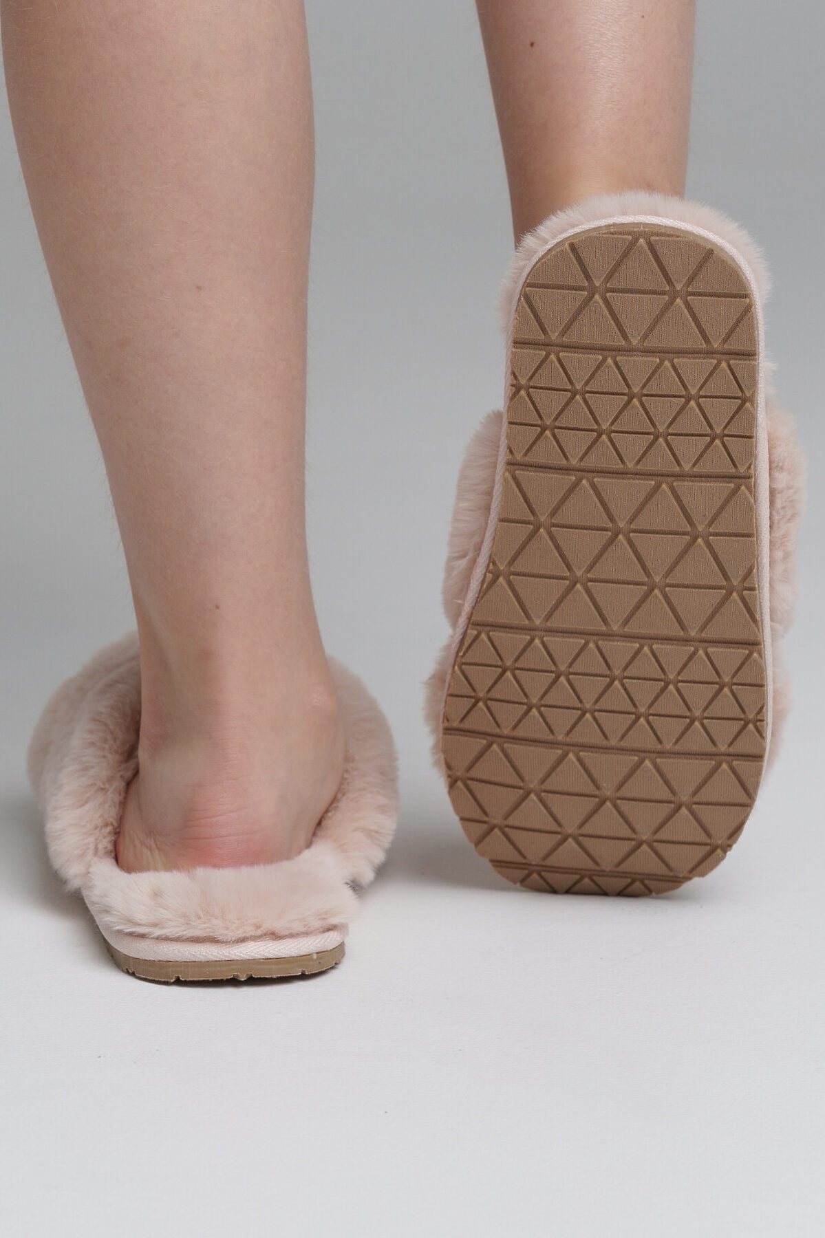 Верх тапочек выполнен из мягкого искусственного меха. Противоскользящая подошва. Легкая конструкция.