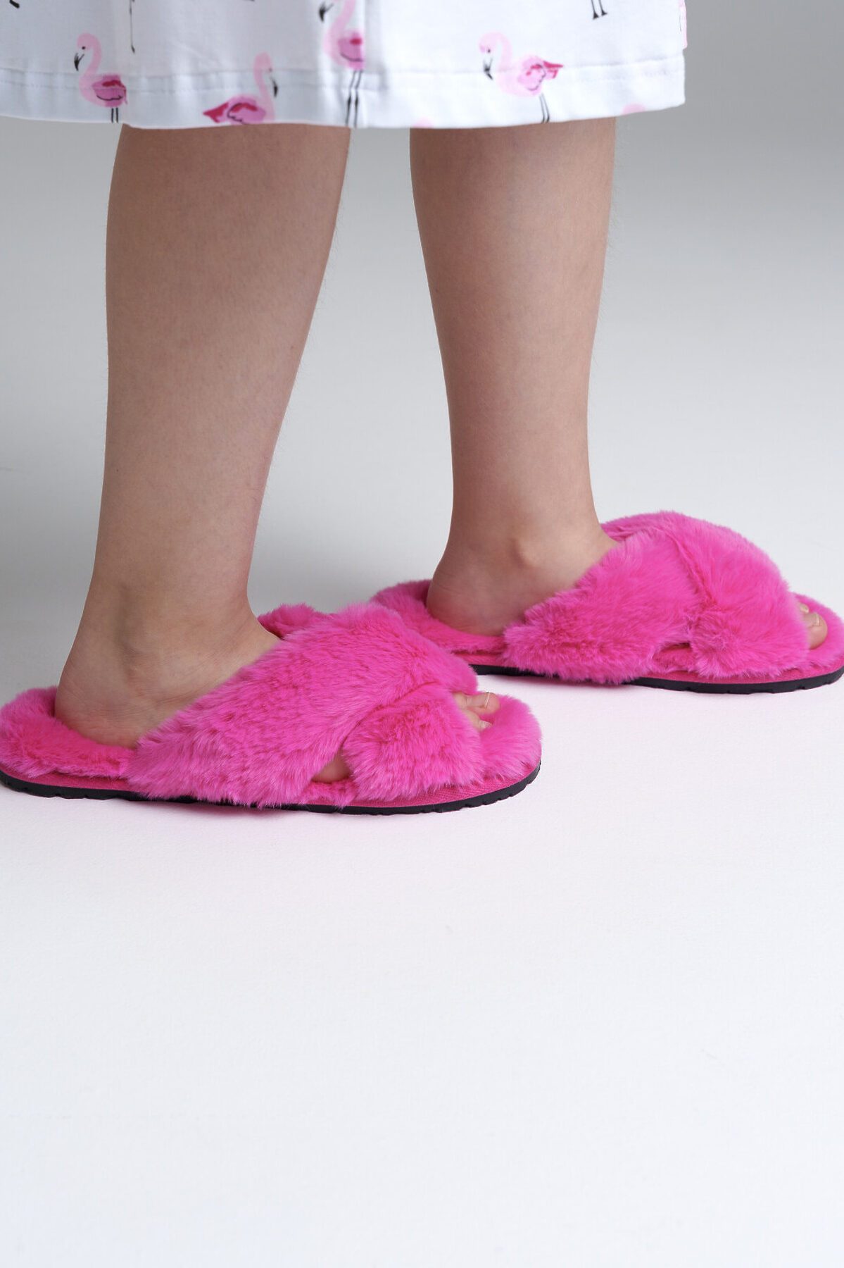 Верх тапочек выполнен из мягкого искусственного меха. Противоскользящая подошва. Легкая конструкция.