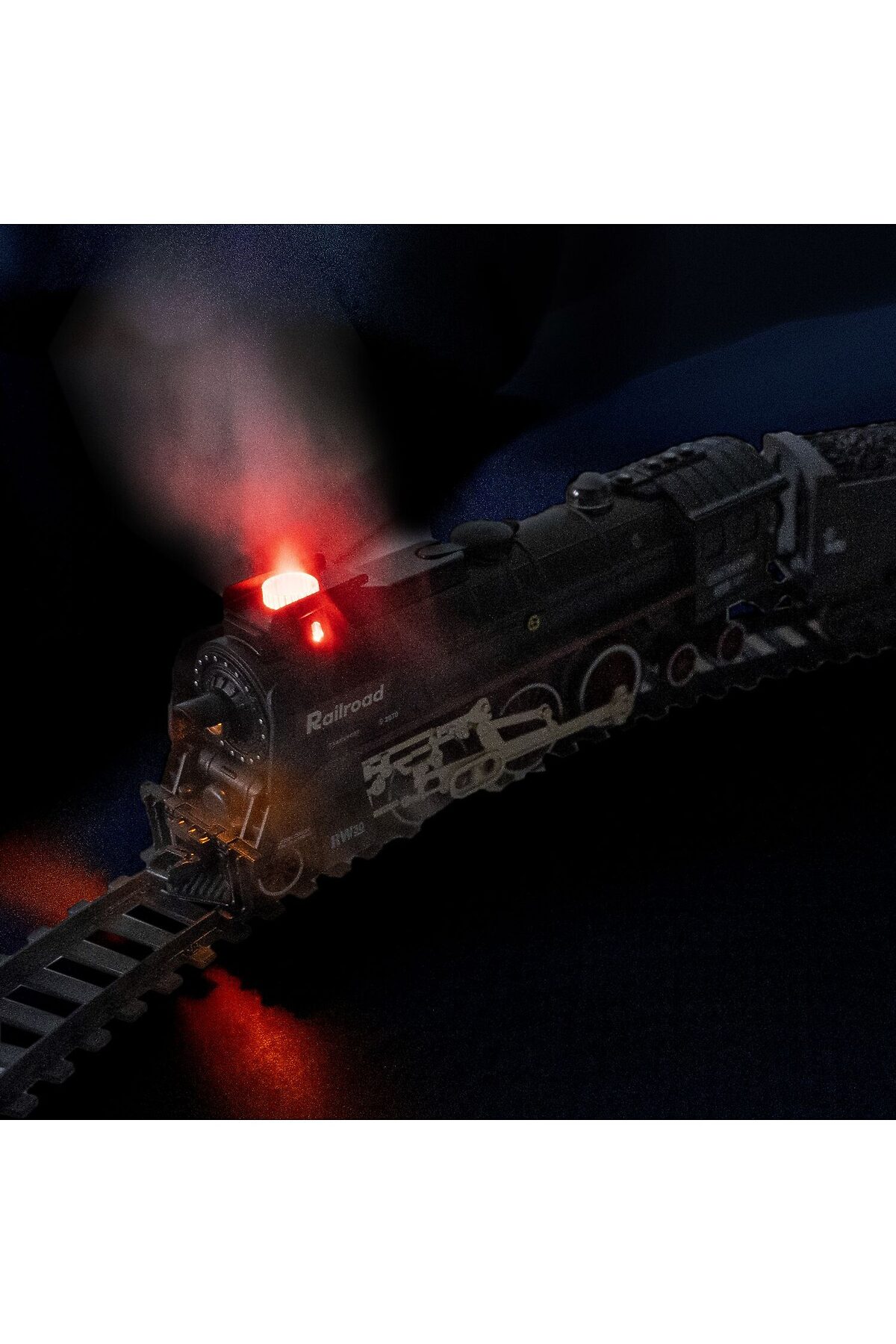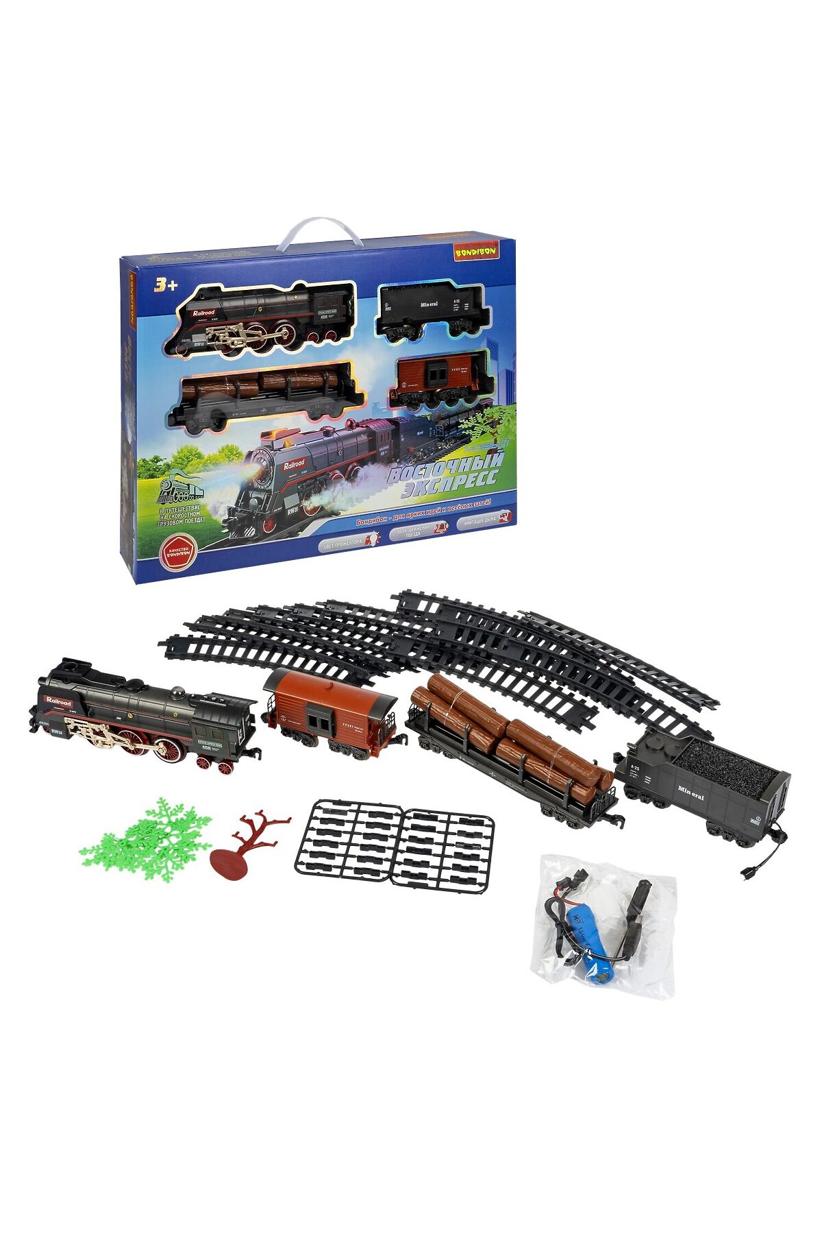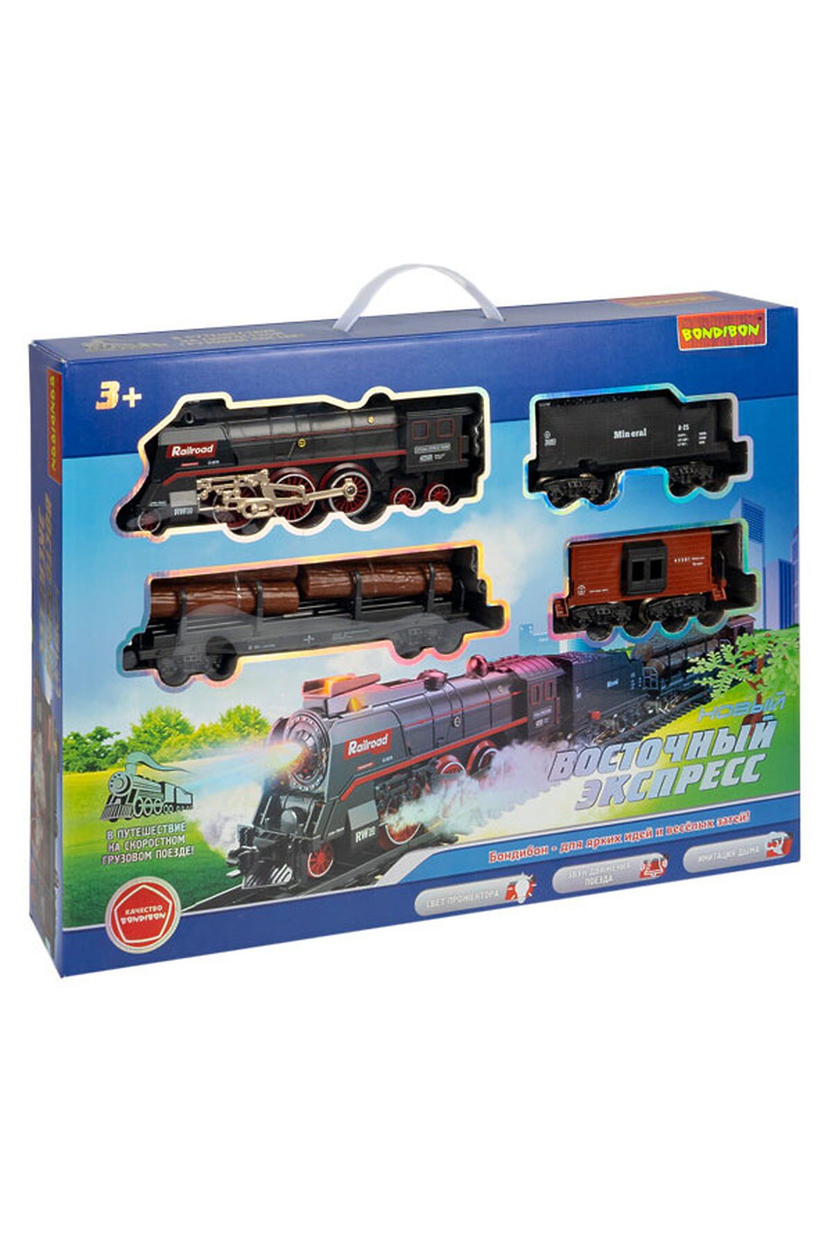 ВОСТОЧНЫЙ ЭКСПРЕСС от Bondibon – это железная дорога по которой курсирует большой реалистичный поезд со светом, звуком и имитацией дыма. Паровоз с тремя грузовыми вагонами заряжается от USB провода. Соберите путь и подвижной состав. Откройте клапан на крыше локомотива и налейте немного воды. Передвиньте красный рычаг на вагоне. Нажимайте на одну из трех кнопок на крыше паровоза для движения вперед, назад или остановки. Состав свистит, когда трогается и имитирует звук движения поезда, когда едет. У него горят фары, а из трубы и по бокам валит дым! С помощью кнопки на крыше локомотива выберите распыление дыма со звуком, без звука, или отключите данную функцию. Подарочный набор ВОСТОЧНЫЙ ЭКСПРЕСС от Бондибон поможет развить координацию, внимание, фантазию и эмоциональный интеллект. Возраст 3+ В набор входят: 12 участков дороги, локомотив, 3 товарных вагона, дерево, USB провод. Аккумуляторная батарея 3,7V 800 mAh (входит в набор) Длина пути железной дороги 290см