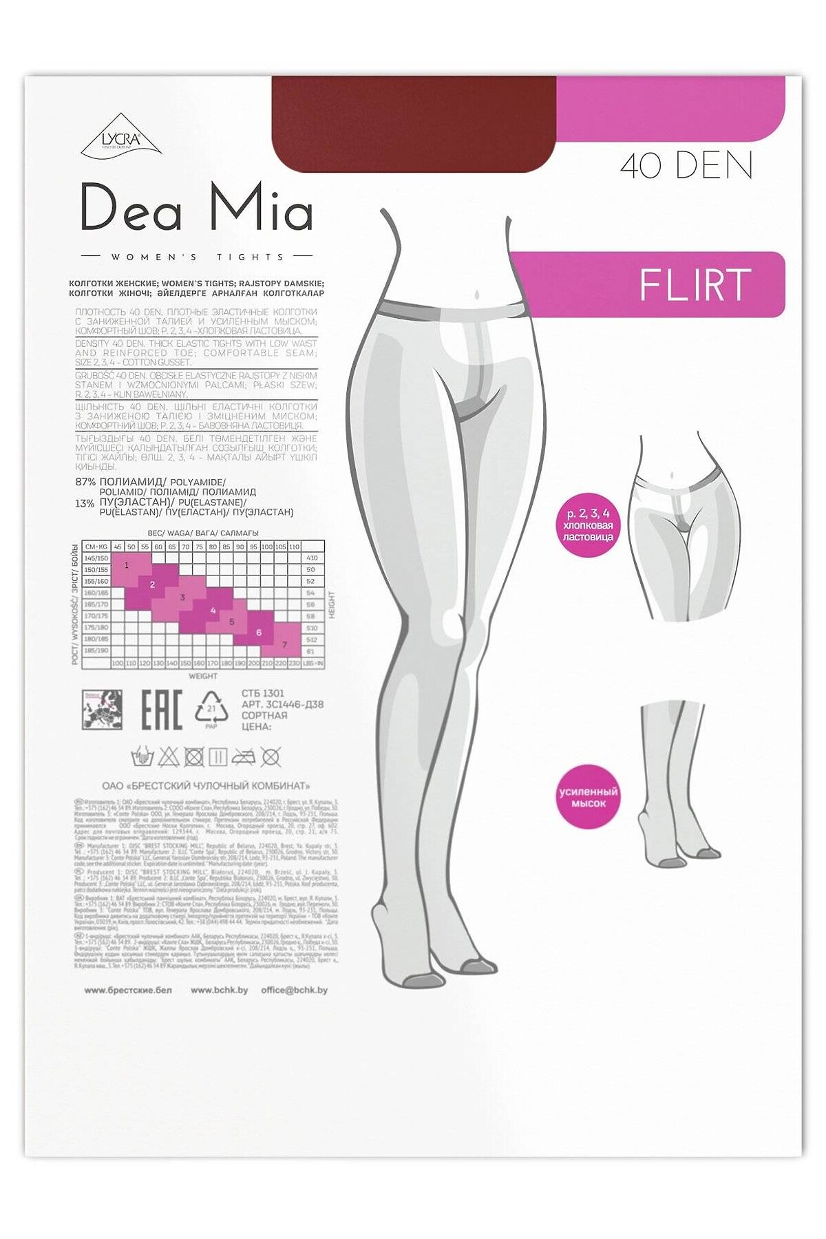 Колготки женские 1446 dea mia flirt 40 (полиамидные, плотные, заниж.талия)