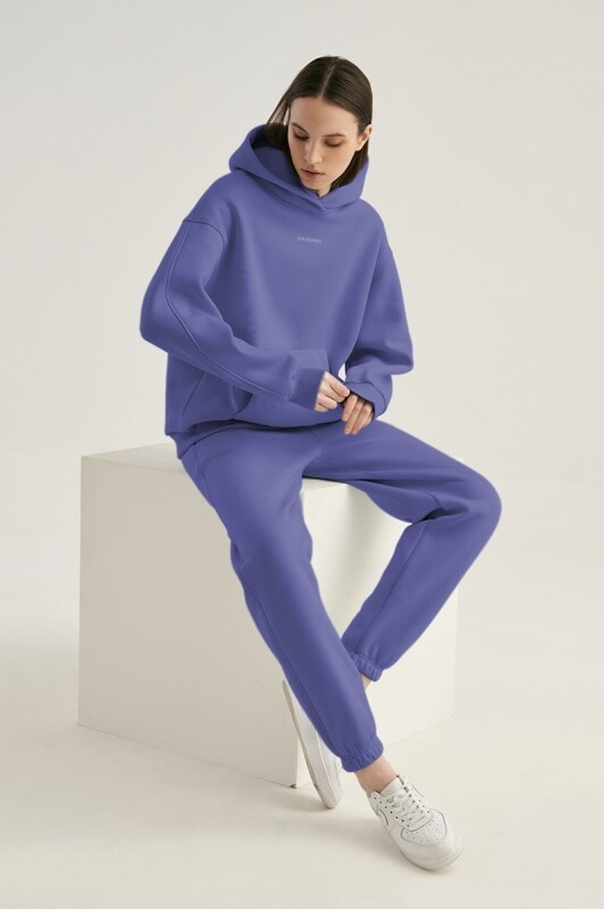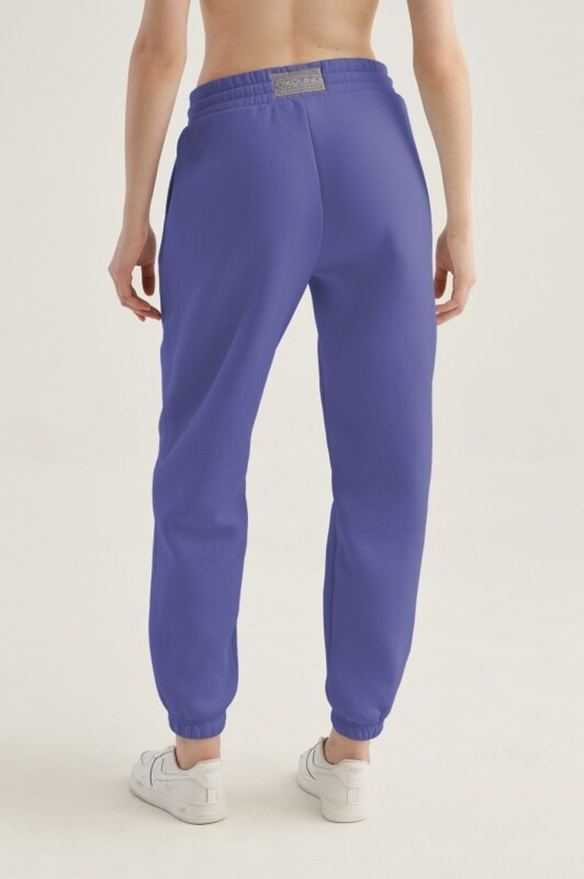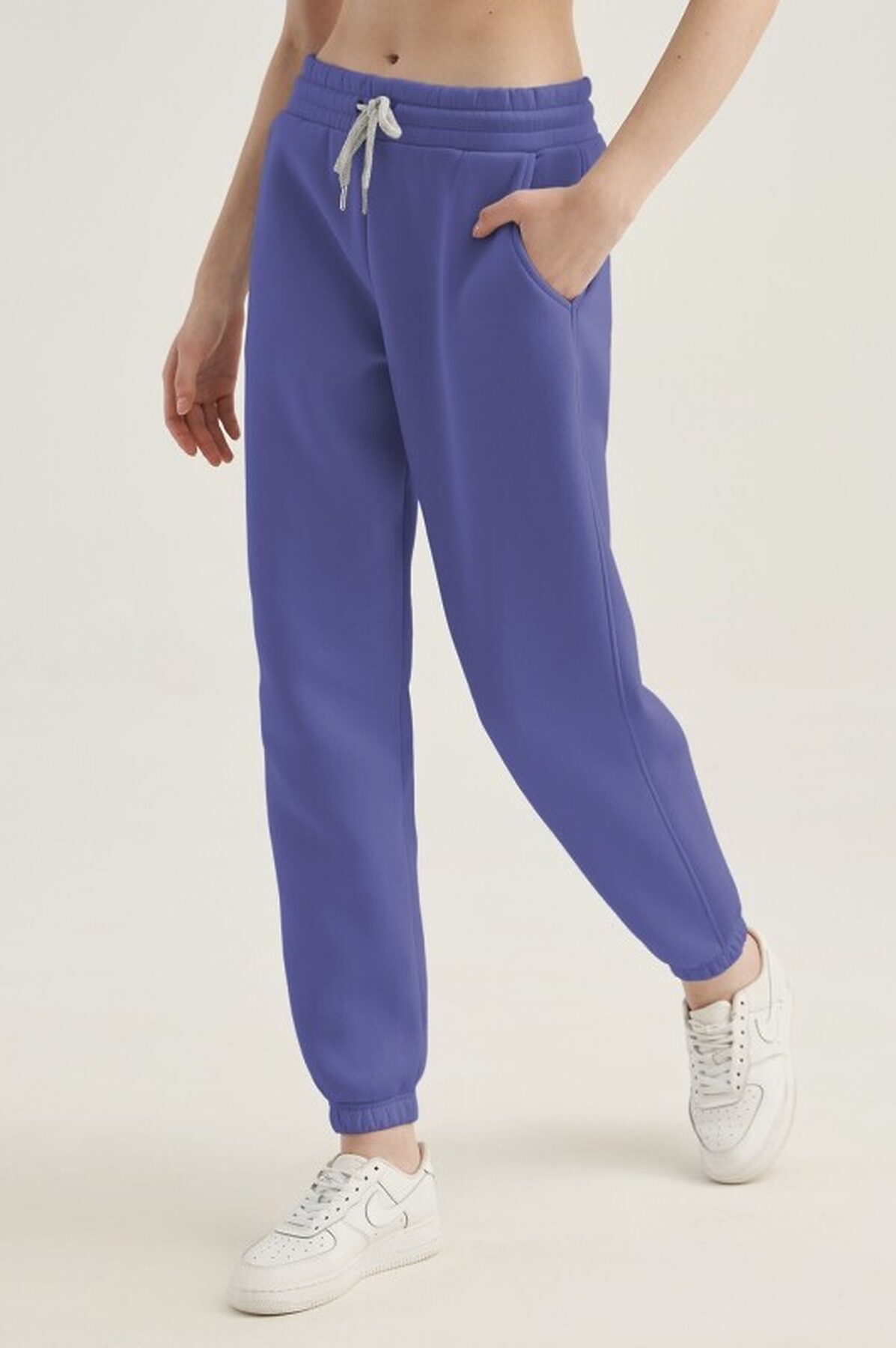 Джоггеры, зауженные брюки с отстроченной резинкой по низу, боковые карманы. Отстроченный пояс из основной ткани с петлями и шнурком.