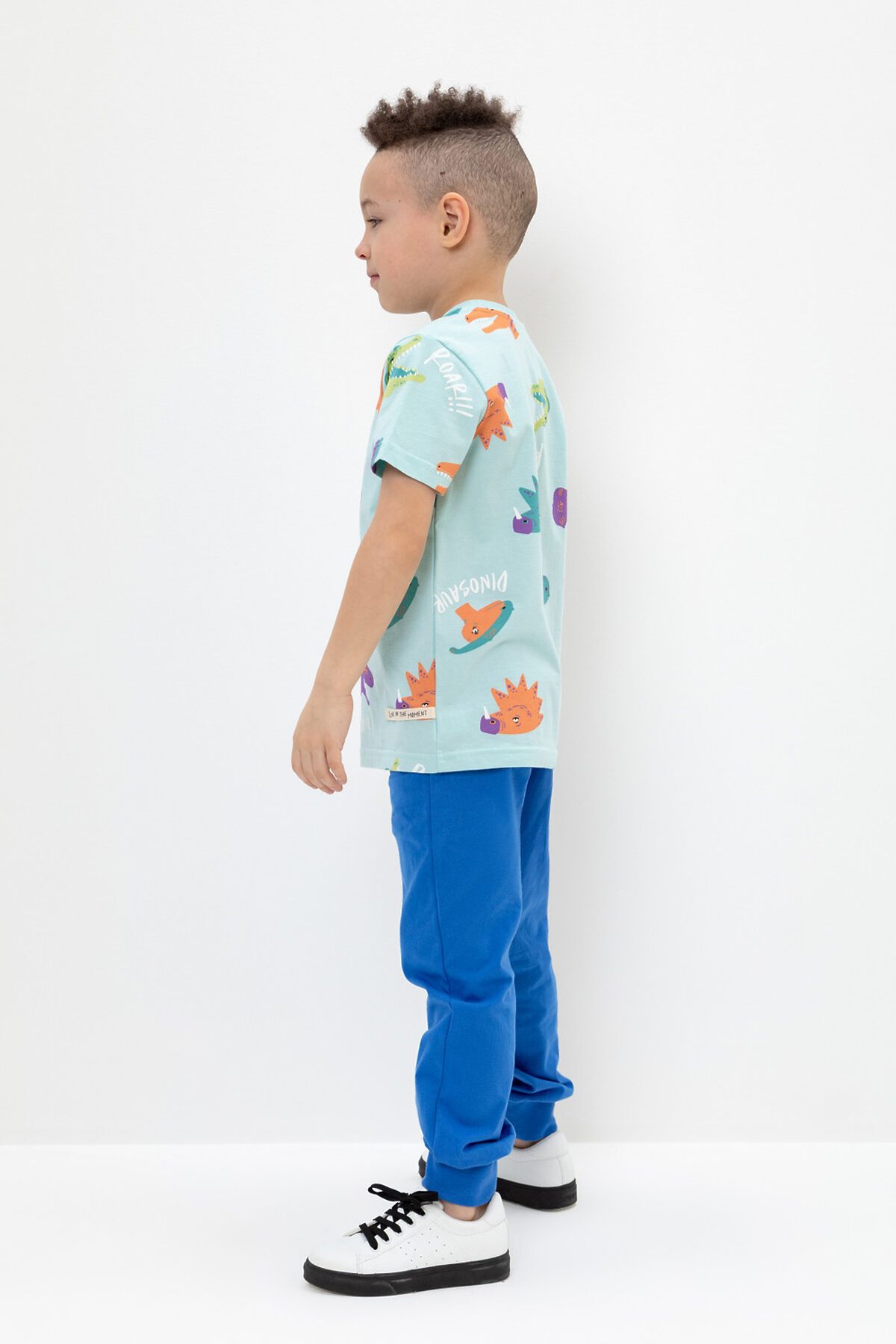 Трикотажные брюки для мальчика из высококачественного трикотажного полотна супрем. Эластичный пояс на резинке регулируется по ширине с помощью шнурка, по бокам два удобных кармана, внизу эластичные манжеты.