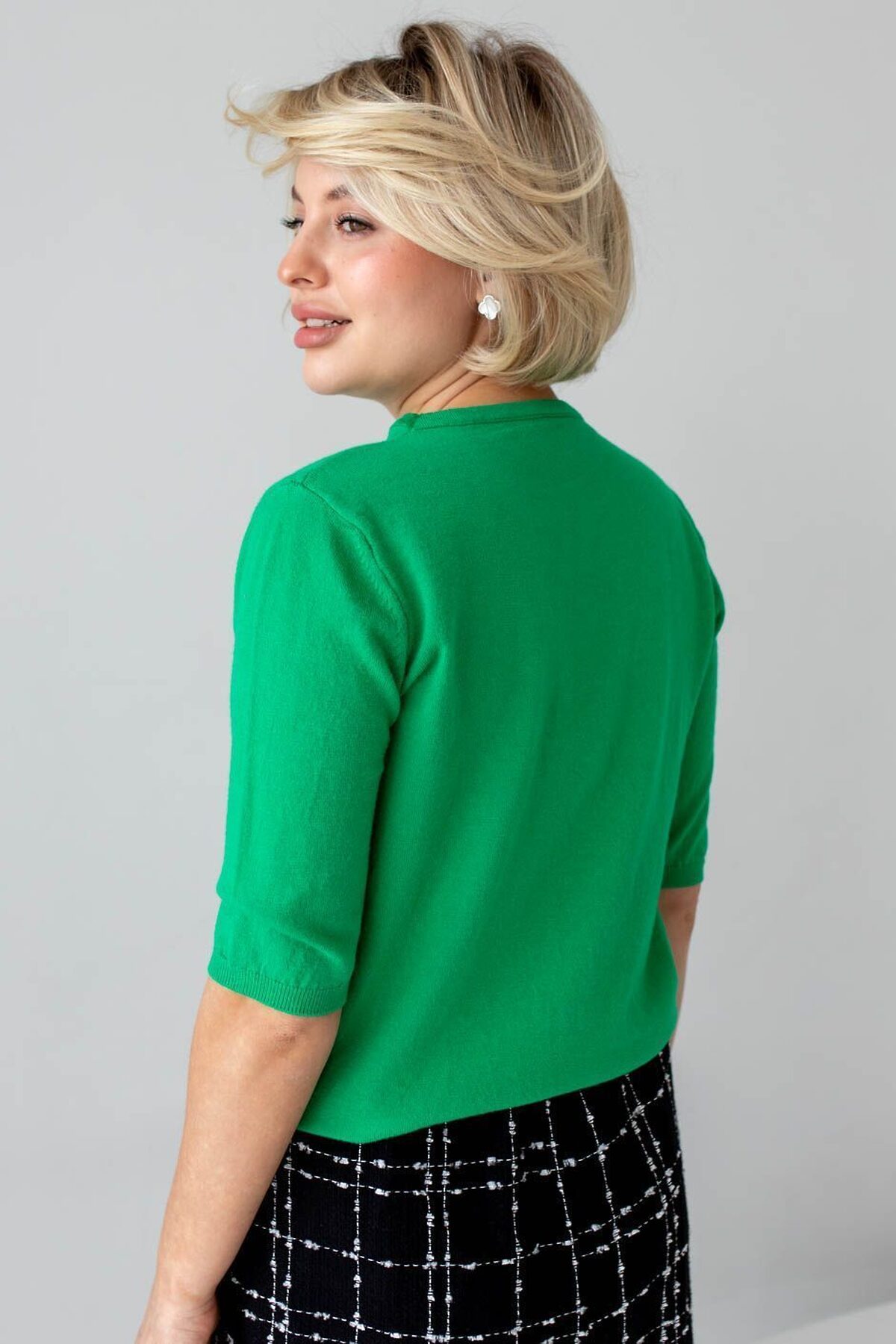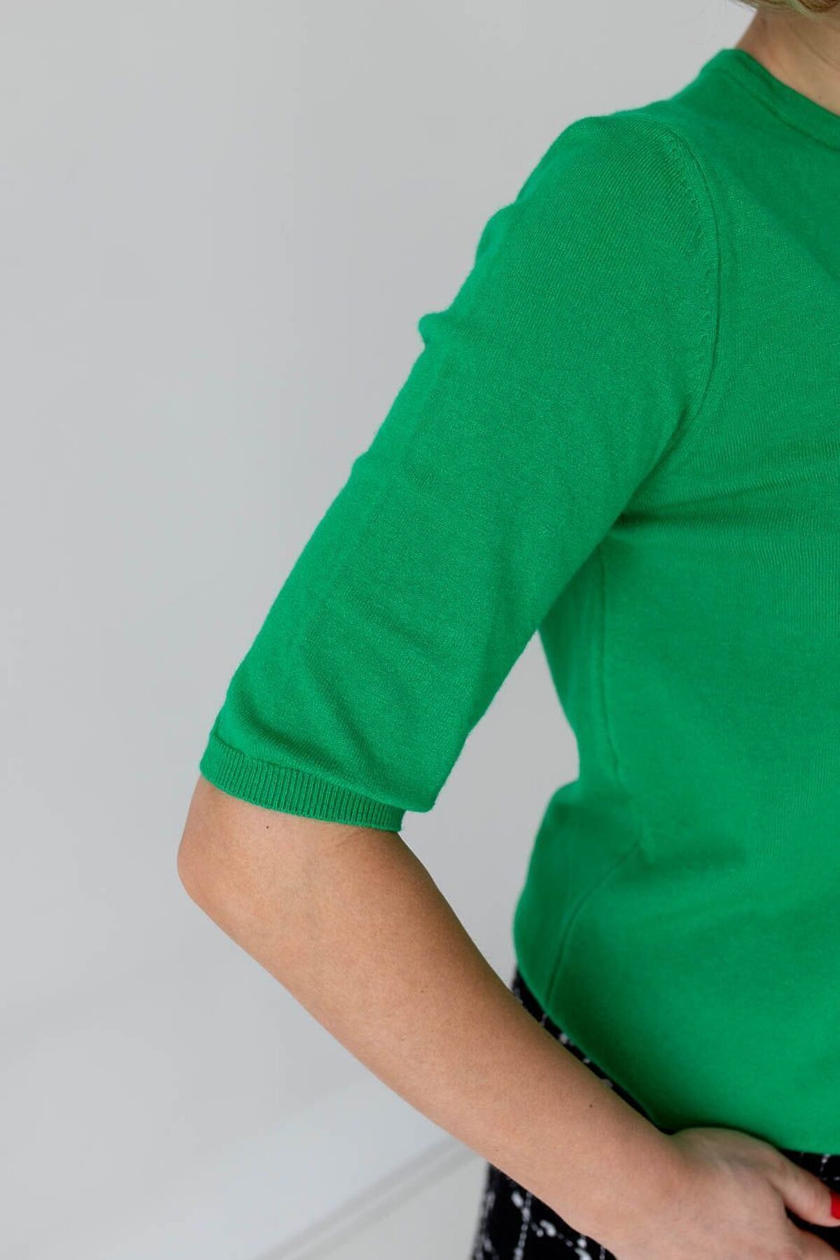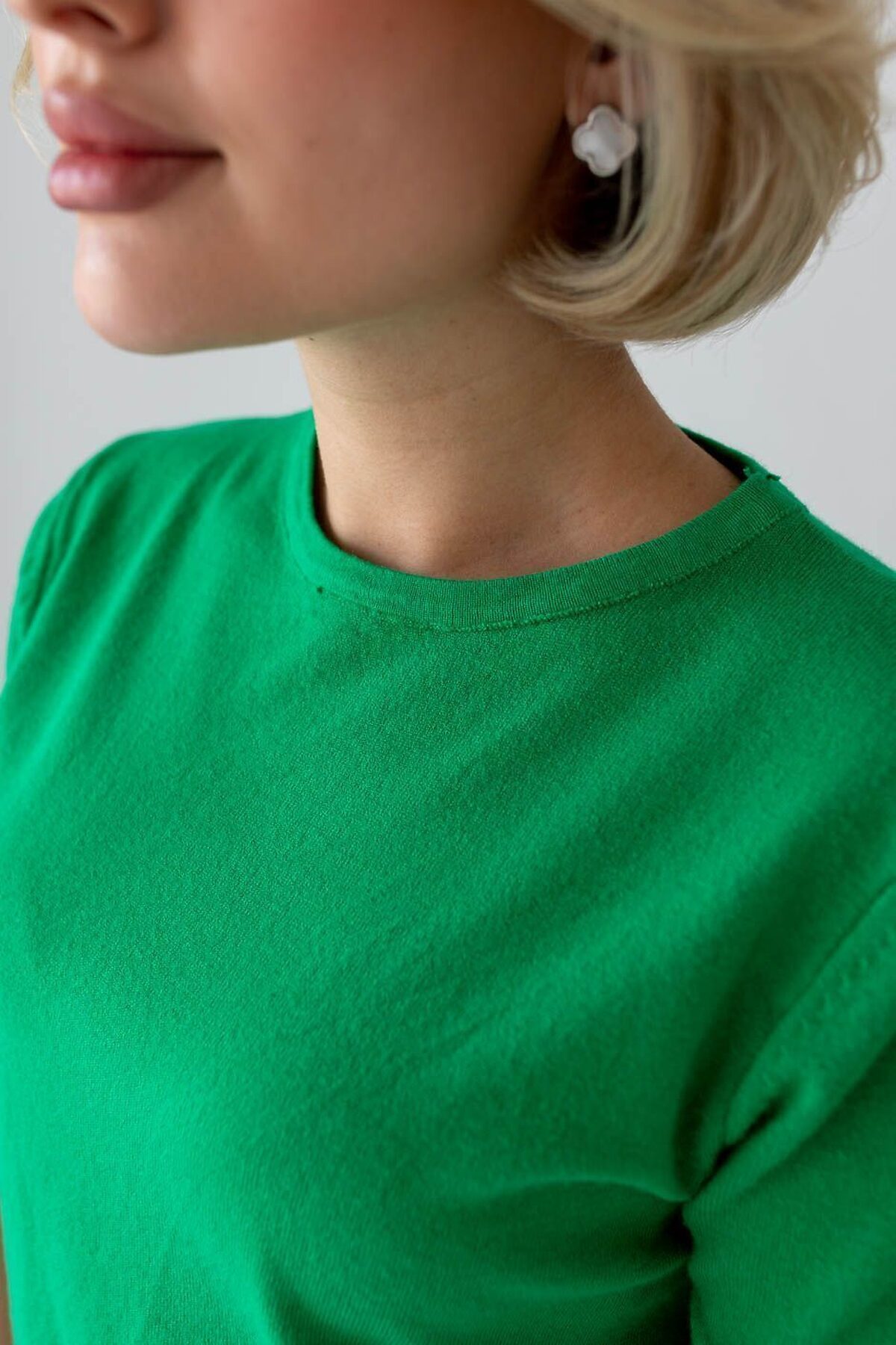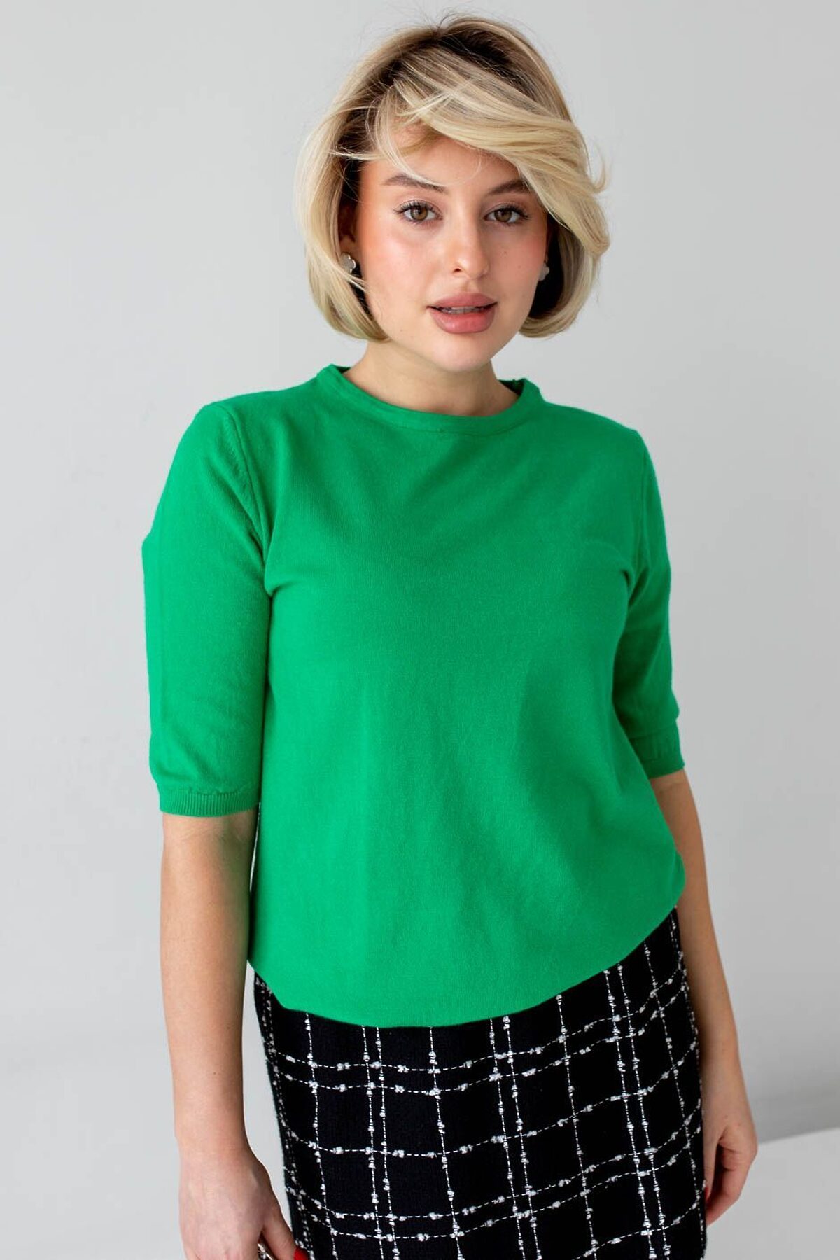 Ткань: трикотажное полотно однотонное. Джемпер свободного покроя, рукав до локтя. Длина ок 60 см. Единый размер до 48.