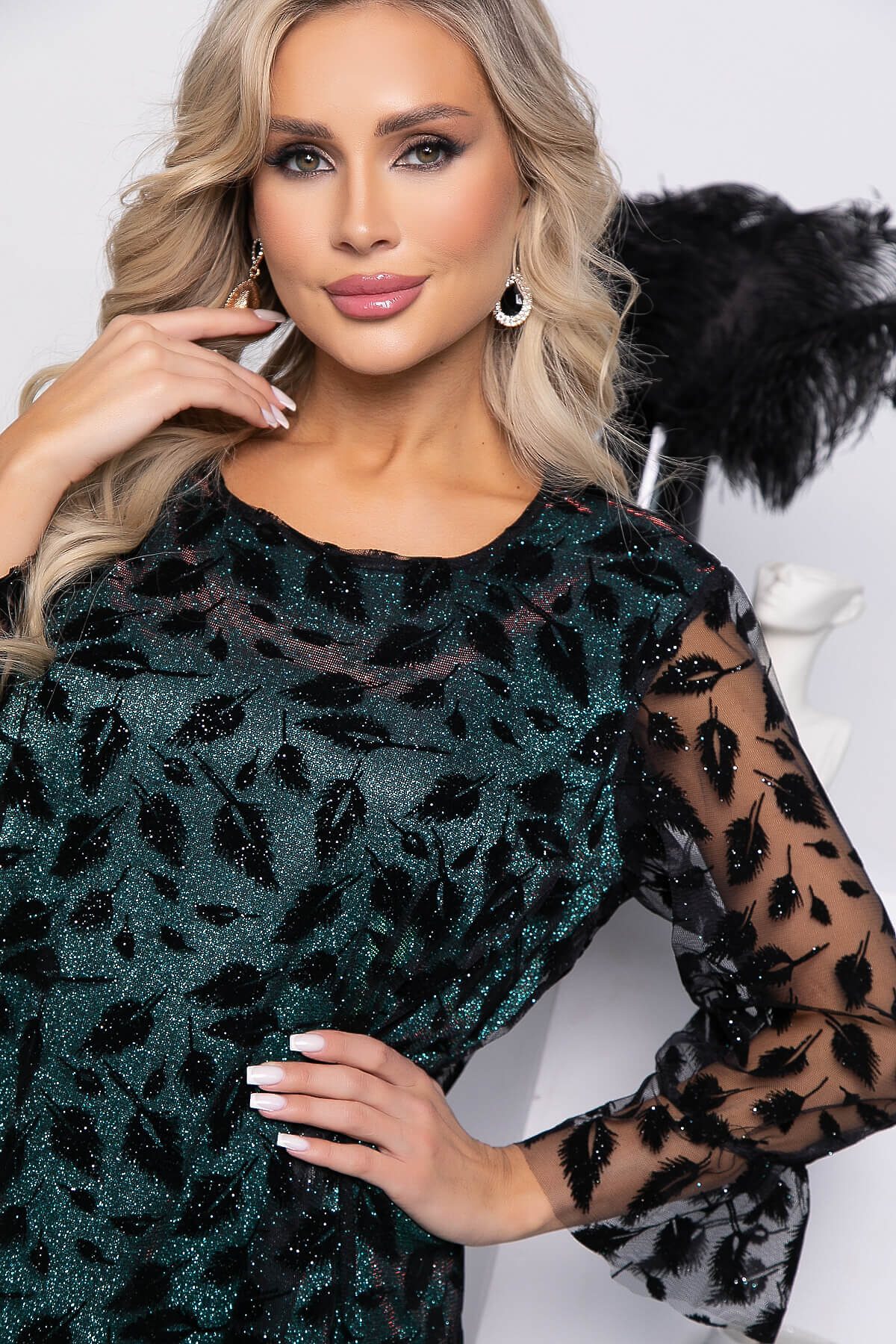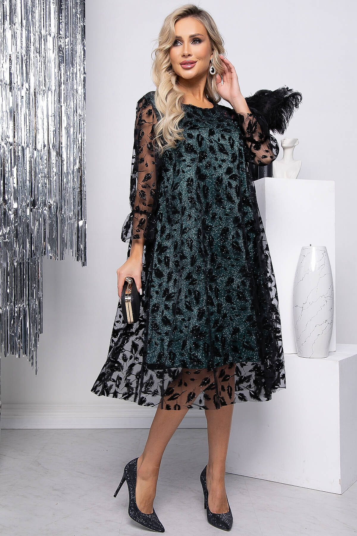 Легкое и воздушное платье создано для того, чтобы покорять сердца. невероятно мерцающее платье выполнено из переливающиеся ткани двух цветов. Изделие на подкладе. Свободный крой скрывает недостатки фигуры. Рукав длинный, втачной, выполнен из сетки с принтом, по низу крашен воланом.