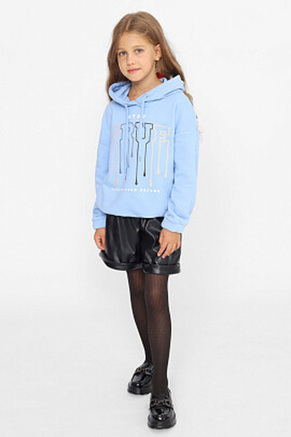 Шорты из эко-кожи на резинке с отворотами, свободного силуэта. Материал очень удобный в уходе, хорошо тянется. Данная модель шорт отлично подойдет для повседневной носки. Будьте уверенны, что в данных кожаных шортах ребенок будет в центре внимания.