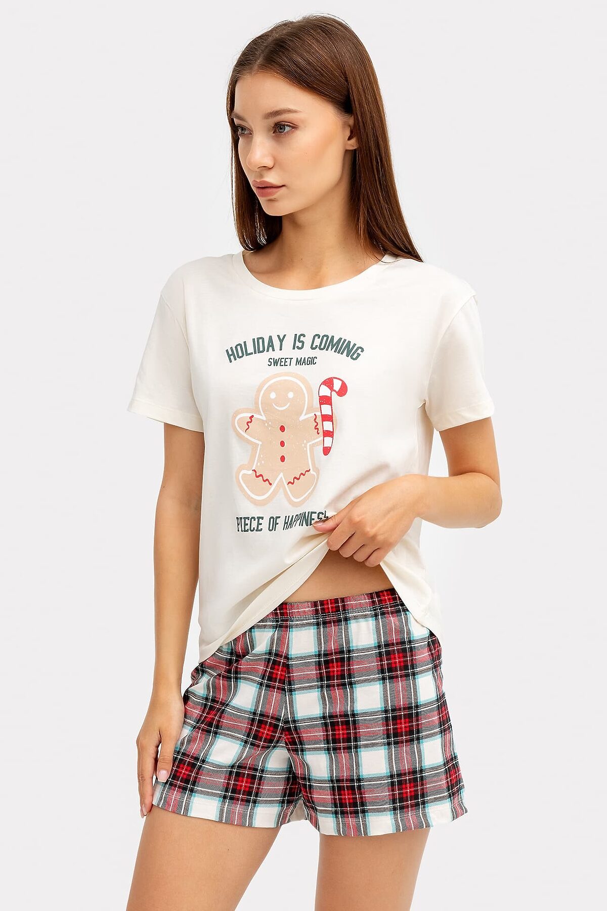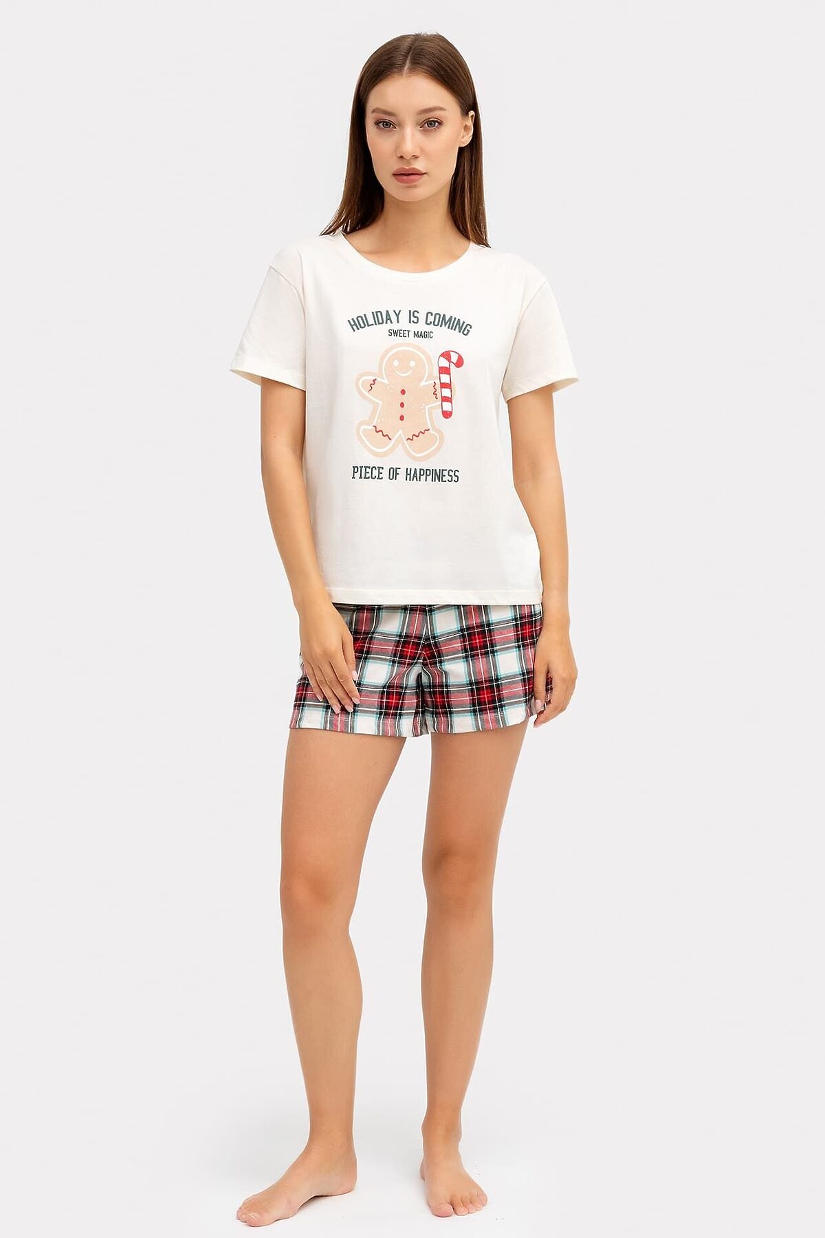 Пижама MARK FORMELLE, молочный +клетка на молочном