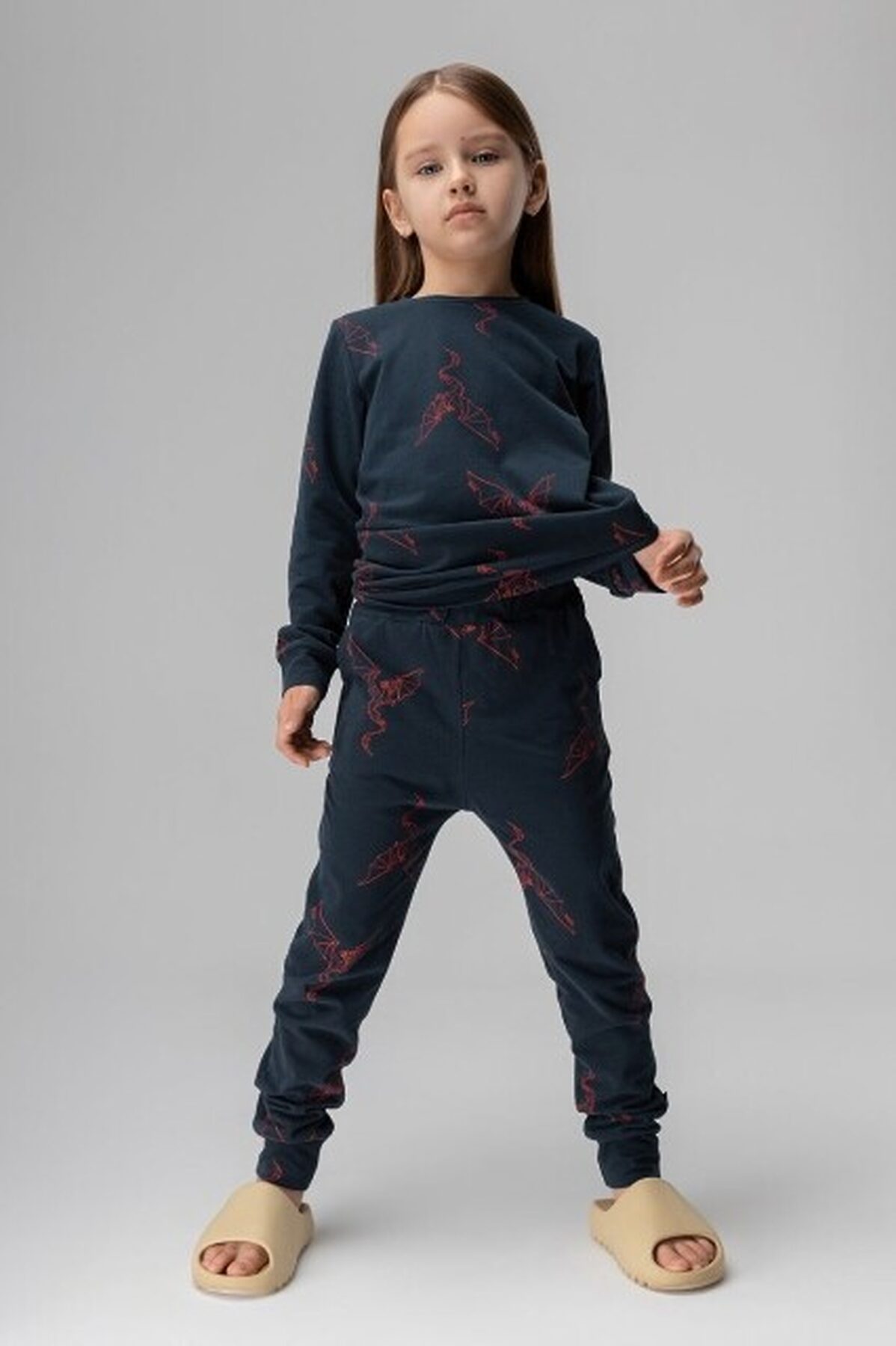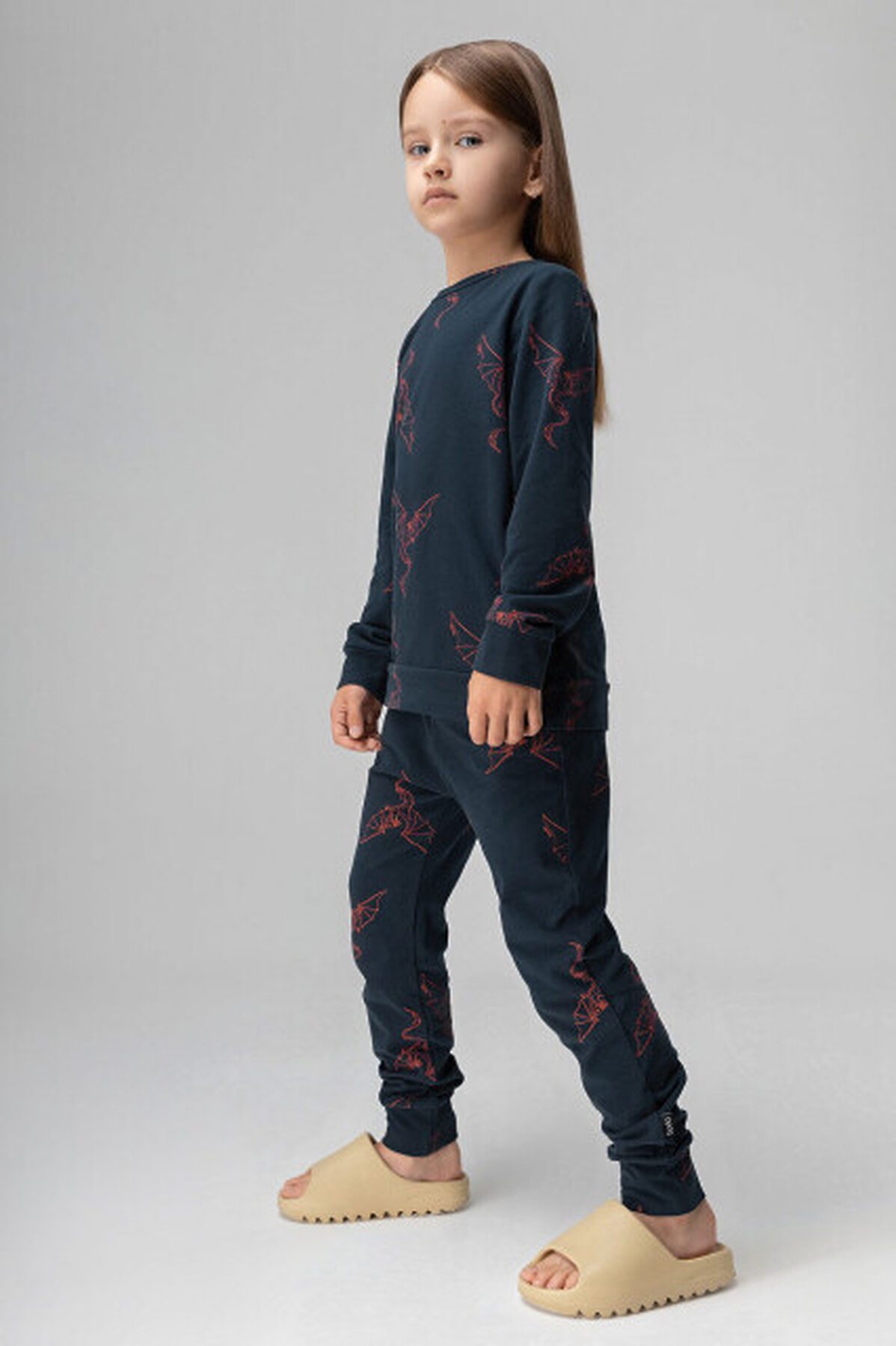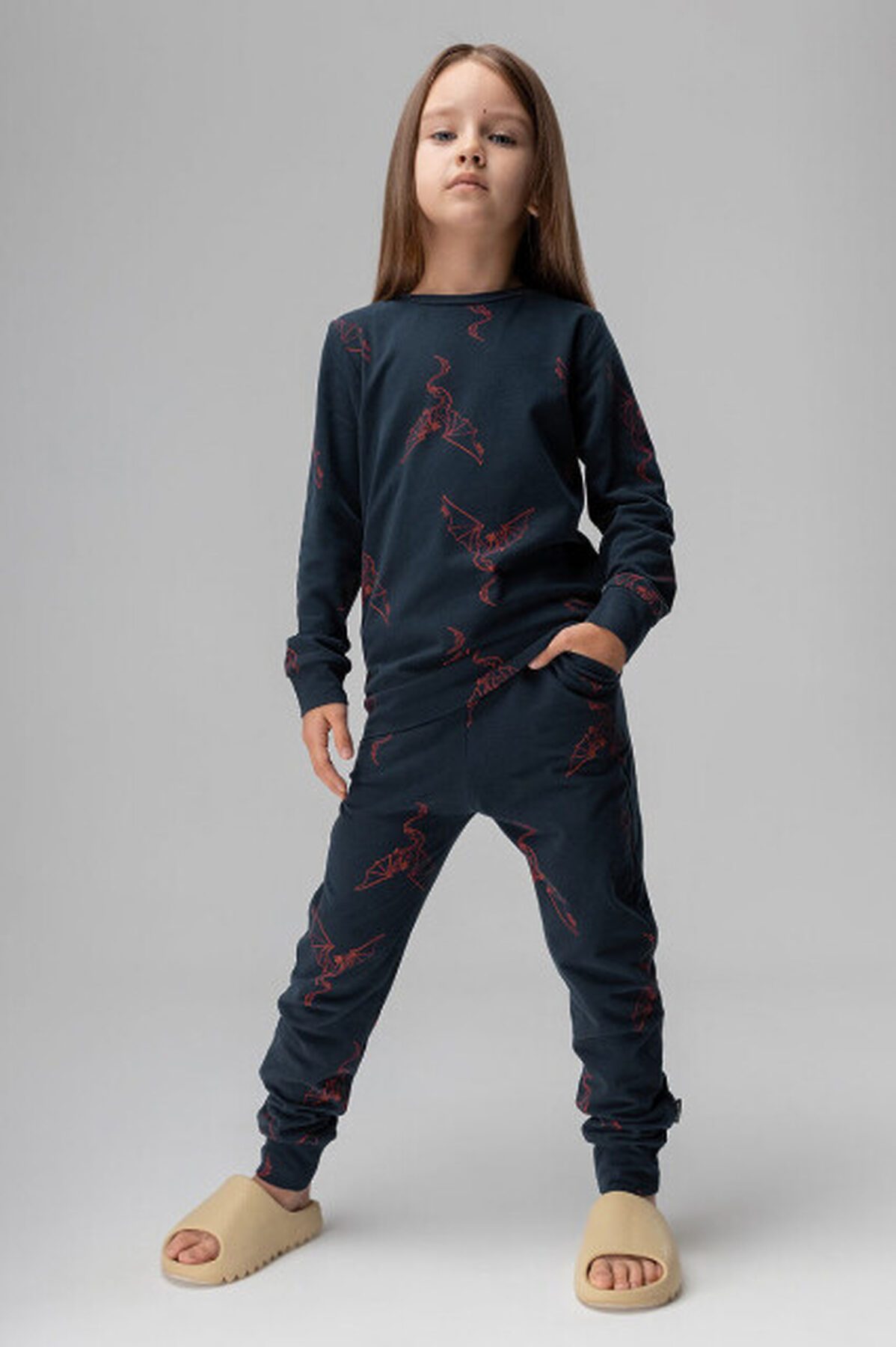 Костюм для детей дошкольного возраста. Свитшот без подкладки, прямого силуэта, на притачном поясе по низу изделия, с втачными рукавами с притачной манжетой, горловина округлой формы. Брюки прямые свободные на притачном поясе с внутренней резинкой, на притачной манжете по низу изделия. Брюки с боковыми карманами. Состав: кулирная гладь фрча 92% хлопок 8% лайкра