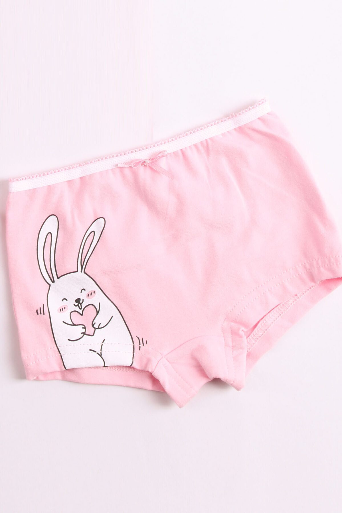 Трусы для девочки выполнены из качественного хлопка 92% + лайкра 8%. Красивые трусы-шорты розового цвета с принтом в виде зайчика. Для девочек 3-11 лет.