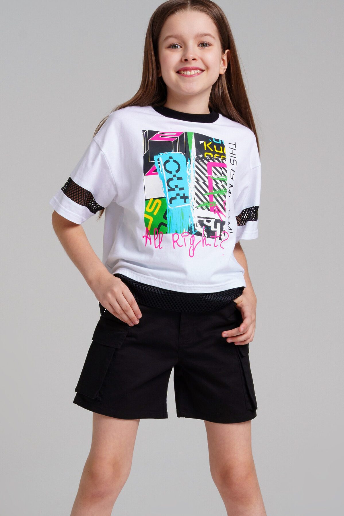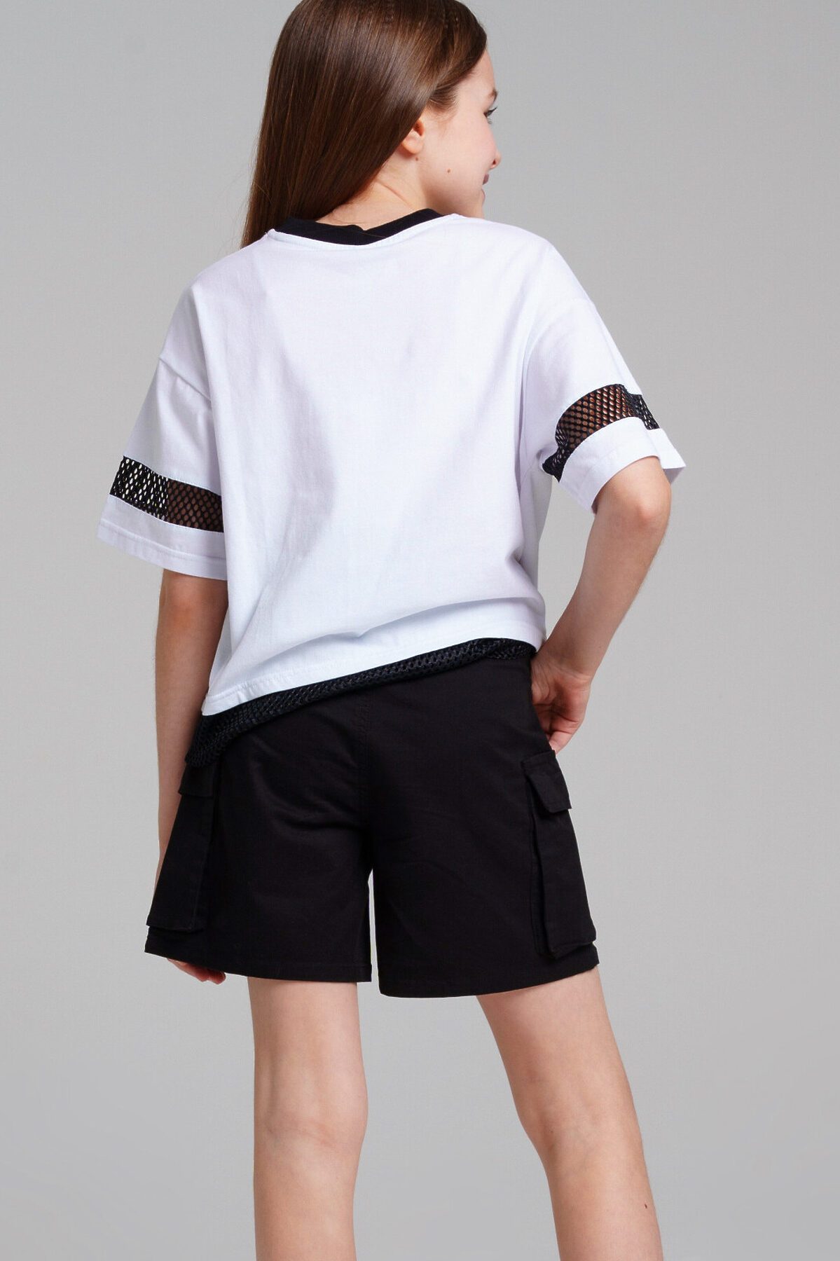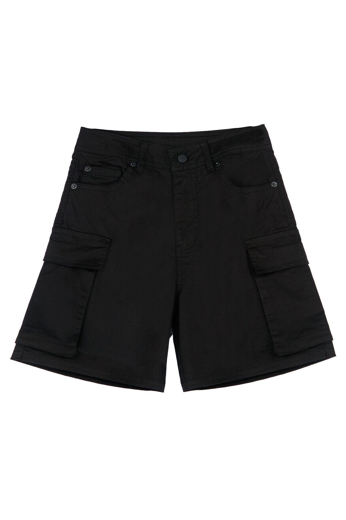 Шорты из твила для девочек. Застежка на пуговицу, пояс с внутренней утяжкой. Функциональные накладные карманы.
