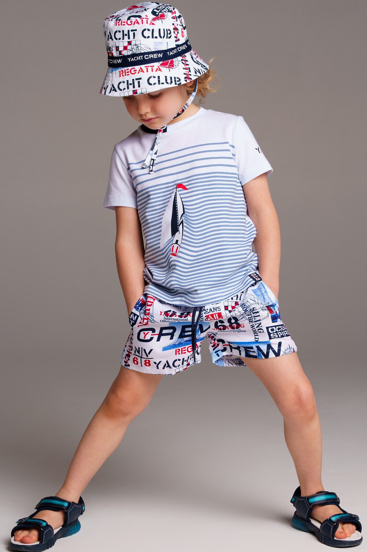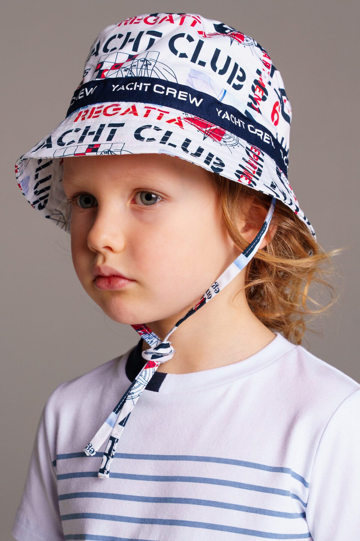 Панама из 100% хлопка. Классическая форма. Завязки комфортно фиксируют панаму на голове.