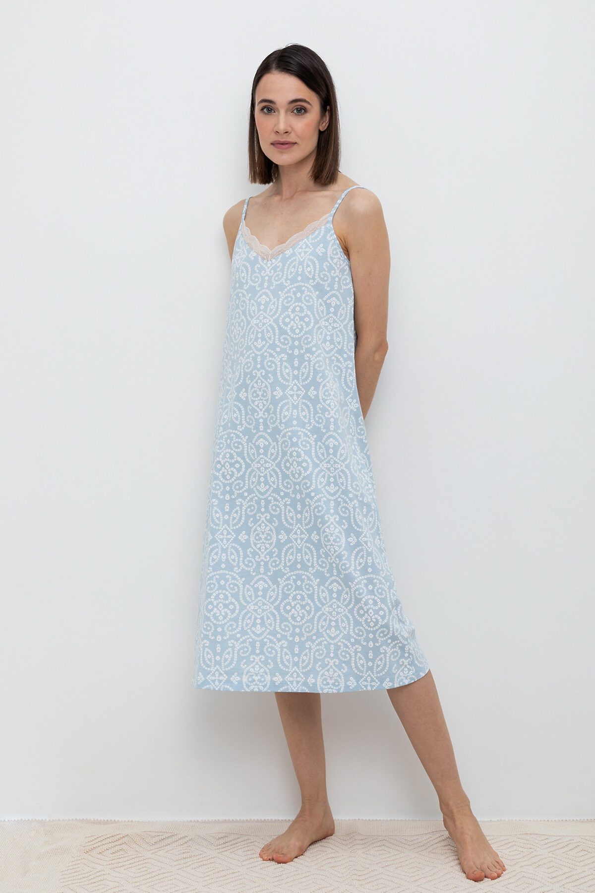 - АртикулЕ 10043/голубой,кружевной узор сорочка