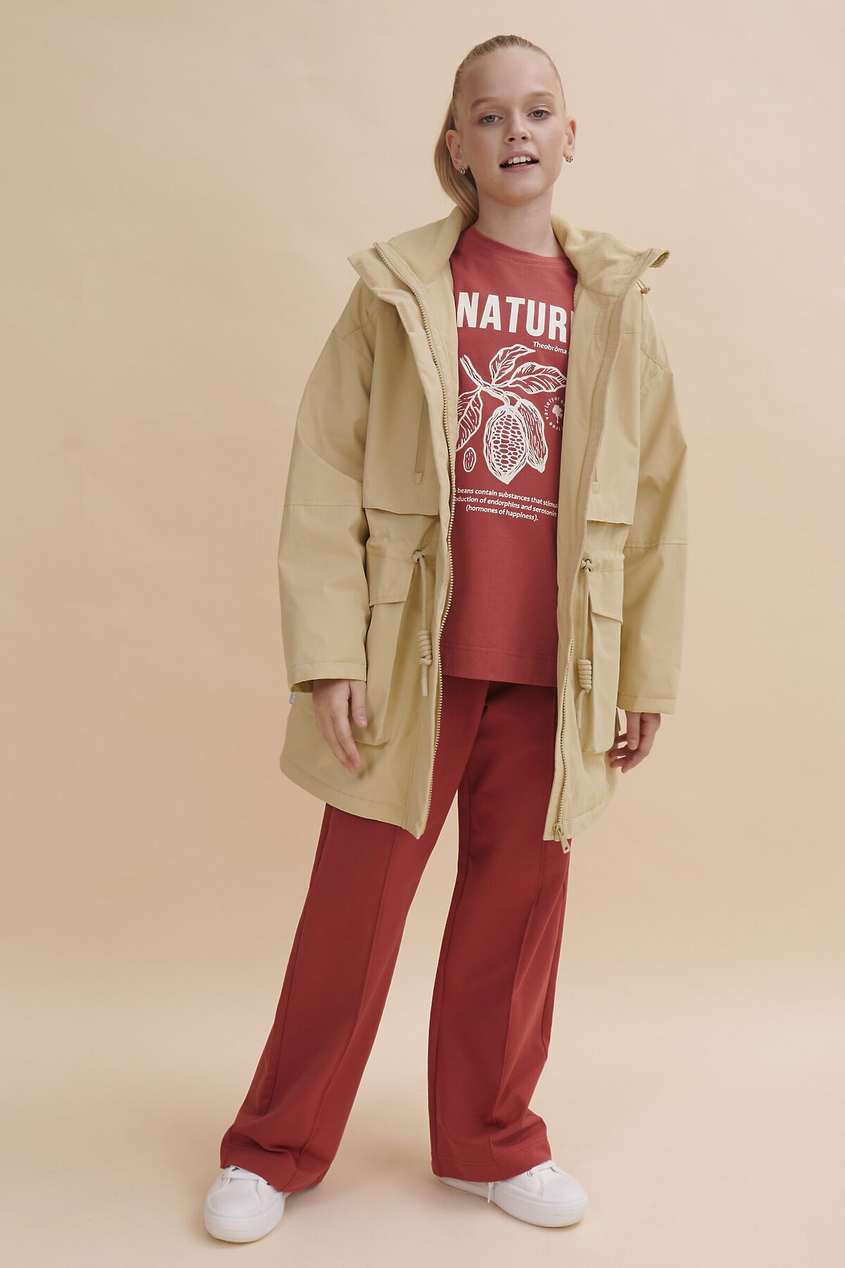 Парка для девочки с температурным режимом не ниже +5°С прямого свободного силуэта. Мягкий оверсайз. Ветровка на флисовом подкладе (верх переда и спинки, подклад капюшона из флиса, а нижняя часть переда и спинки и подкладка рукава из 100% POLY + синтепон 40г/м2 ). Мембранная ткань хорошо защищает нижние слои одежды от намокания. Структура мембранной ткани позволяет коже дышать - ребенок легко двигается и не переохлаждается. Изделие сохраняет первоначальный внешний вид даже при активной носке. Водоотталкивающая пропитка или DWR (Durable Water Repellent) – «устойчивое водоотталкивающее покрытие» - защищает от промокания под дождем: материал не утяжеляется под воздействием влаги, позволяя свободно пропускать воздух. Низ рукава прямой, внутри рукава расположена скрытая манжета из мягкой эластичной ткани. По центру переда застежка на молнию, молния закрыта планкой на застежке велькро (липы). По верху переда накладные карманы, имитирующие объемную кокетку переда. Карманы застегиваются на водонепроницаемые молнии со скрытыми звеньями. Содержимое карманов не пострадает от дождя. Накладные объемные карманы с декоративным фигурным клапаном, вход в карман с боковой стороны - удобно. Оригинальная форма капюшона с цельнокроеным козырьком и двумя видами утяжек: по ширине и высоте. Капюшон не отстегивается. Два вида утяжки: по талии утяжка на шнур со стопперами и по низу изделия на эластик со стопперами. Можно менять силуэт ветровки и сохранять тепло. На спинке и в боковых швах расположены светоотражающие элементы — безопасность в тёмное время суток. За изделием легко ухаживать. Изделие представлено в цвете на выбор: синий, желтый, розовый, бежевый, нежно зеленый и лайм. Единый дизайн name label’s - ребенок не потеряется и легко отыщет свою одежду. Размерная линейка: 3 (98): 4 (104): 5 (110): 6 (116): 7 (122): 8 (128): 9 (134): 10 (140): 11 (146). Предусмотрена стирка при температуре +30 градусов. Выбирайте нужный размер по таблице размеров на фото. Цвет товара на экране вашего устройства может отличаться от цвета изделия вживую.