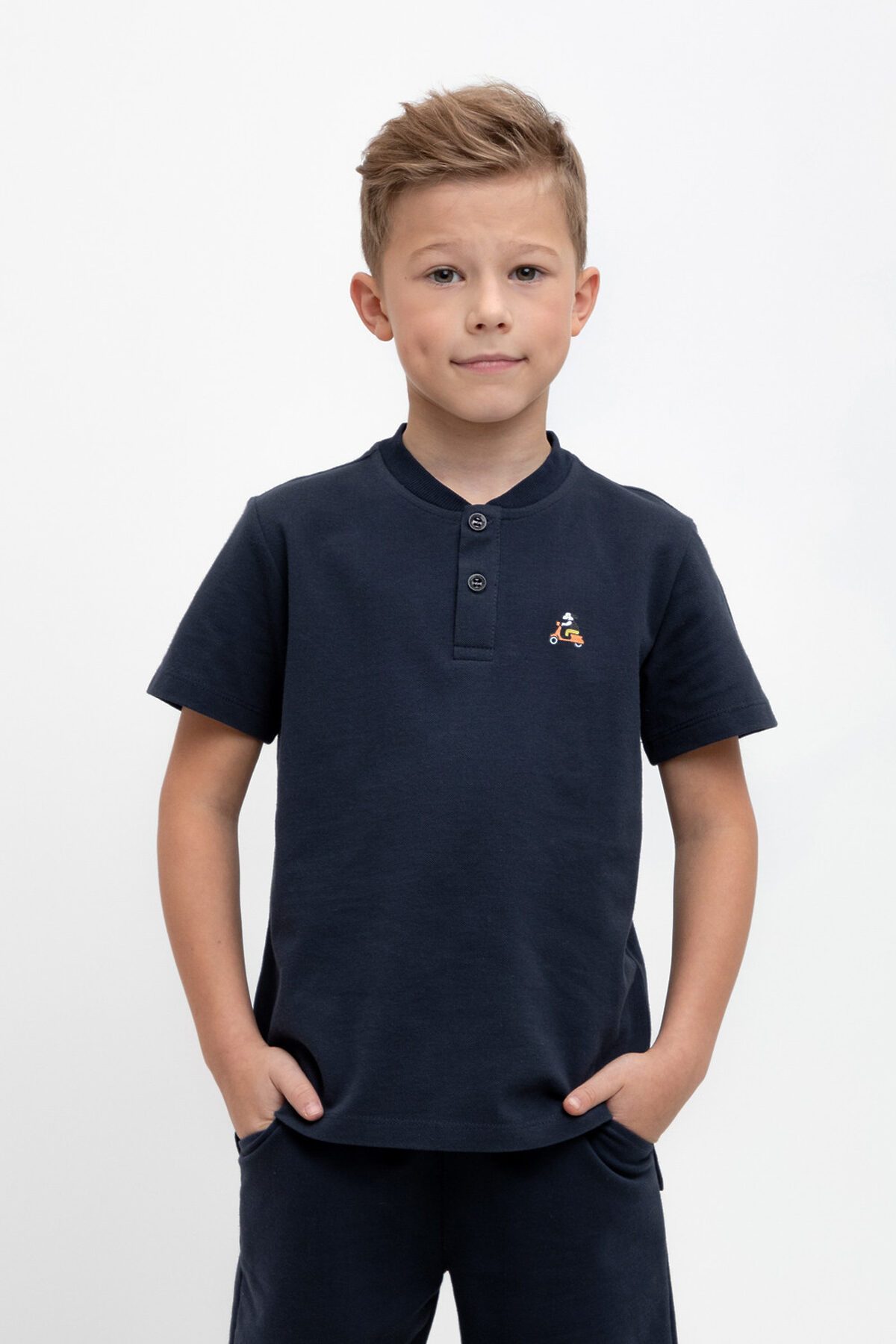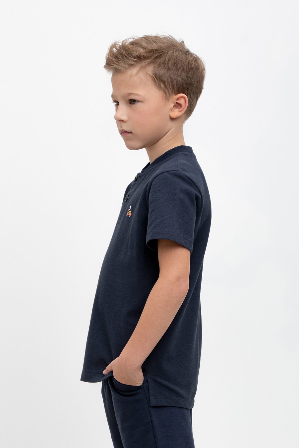 Джемпер поло с принтом для мальчика из высококачественного трикотажного полотна пике. По полочке планка с застежкой на пуговицы.