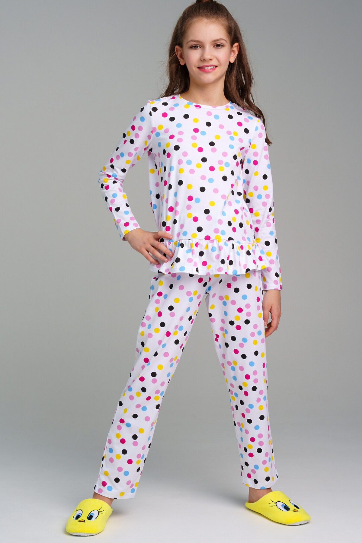 Пижама regular fit: лонгслив, брюки из качественного и приятного на ощупь трикотажа джерси. Высокое содержание хлопка 95%. Благодаря наличию эластана в составе ткани изделие проще в уходе и держит форму. Брюки с эластичным поясом со шнурком.