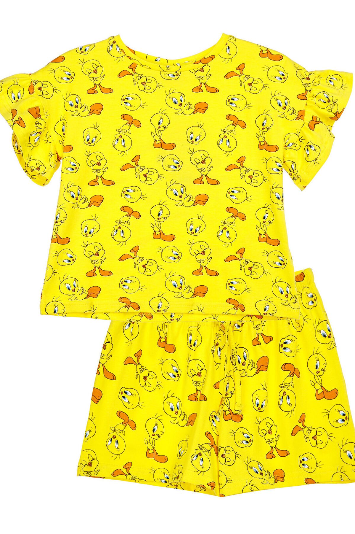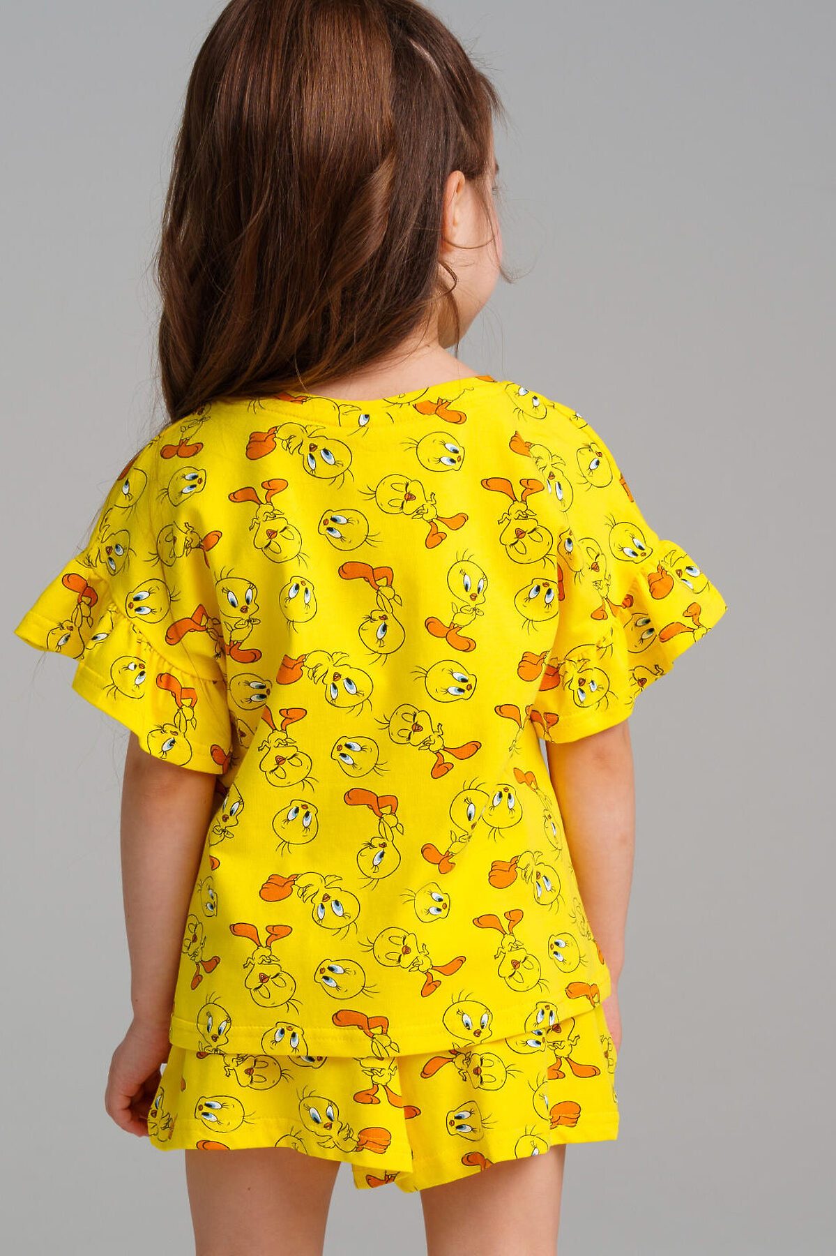 Пижама regular fit: футболка, шорты из качественного и приятного на ощупь трикотажа джерси. Высокое содержание хлопка 95%. Благодаря наличию эластана в составе ткани изделие проще в уходе и держит форму. Шорты с эластичным поясом со шнурком.