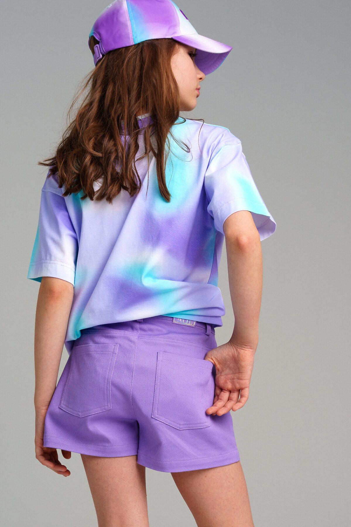 Шорты из твила для девочки. Застежка на джинсовую пуговицу, пояс с внутренней утяжкой. Функциональные карманы.