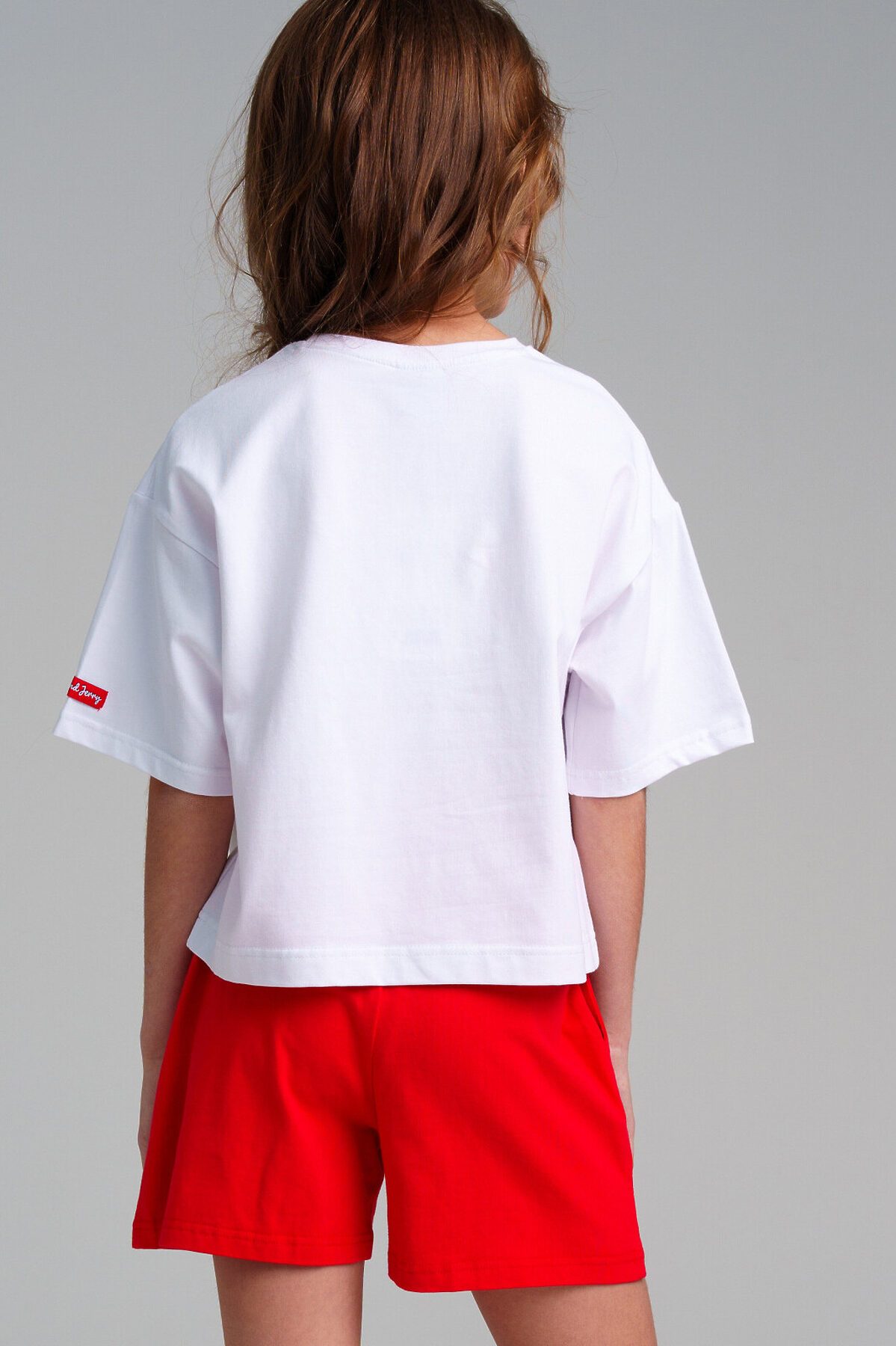 Укороченная футболка oversize из качественного и приятного на ощупь трикотажа джерси. Высокое содержание хлопка 95%. Благодаря наличию эластана в составе ткани изделие проще в уходе и держит форму.