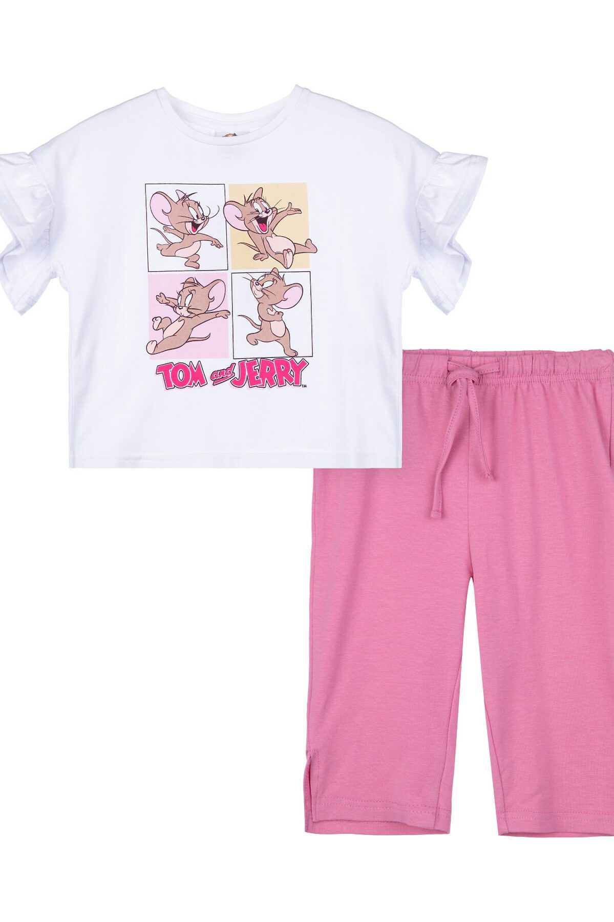 Пижама: футболка, брюки. Эластичный пояс с тесьмой позволяет легко надевать брюки и утягивать до комфортной посадки. Высокое содержание хлопка 93%. Благодаря наличию эластана в составе ткани, изделие проще в уходе и держит форму.